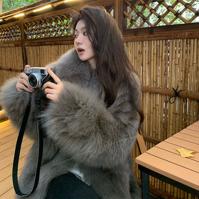 "神明少女"【年度神款】仿狐狸毛皮草外套女秋冬新款托卡毛毛外套