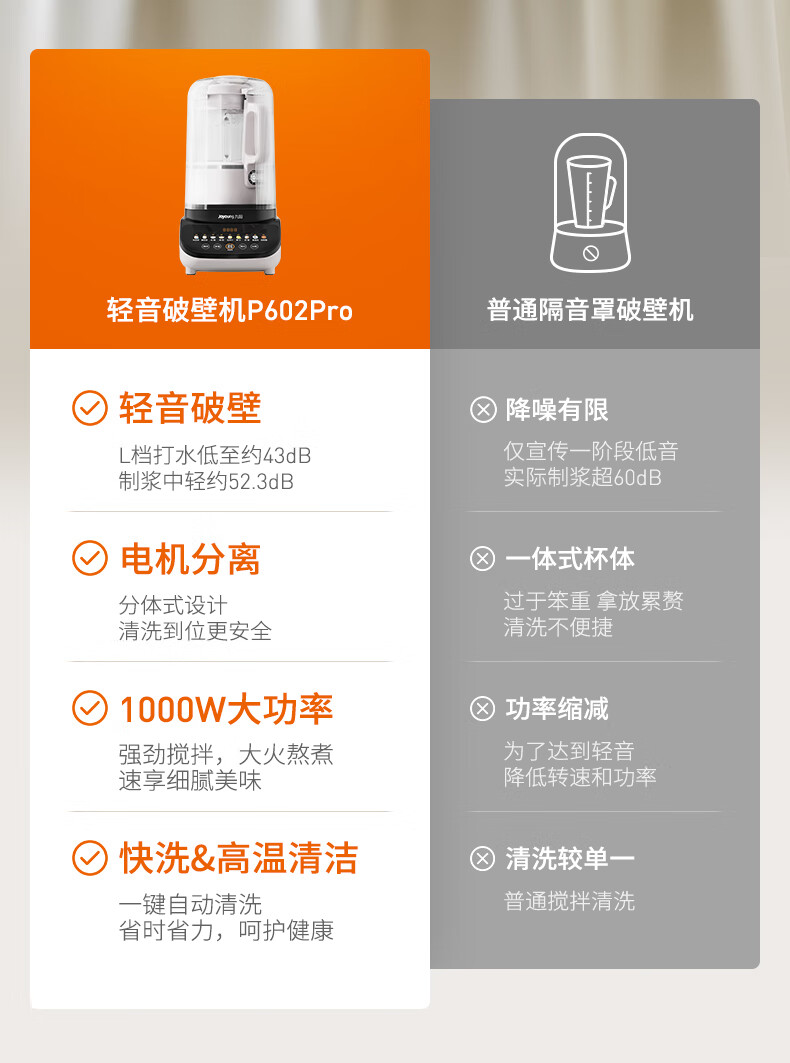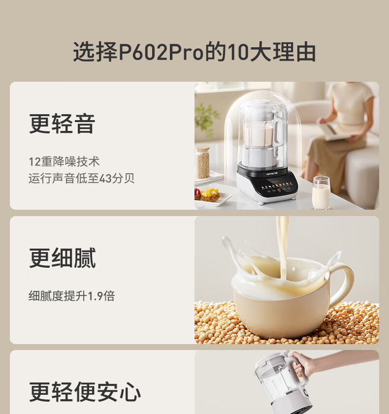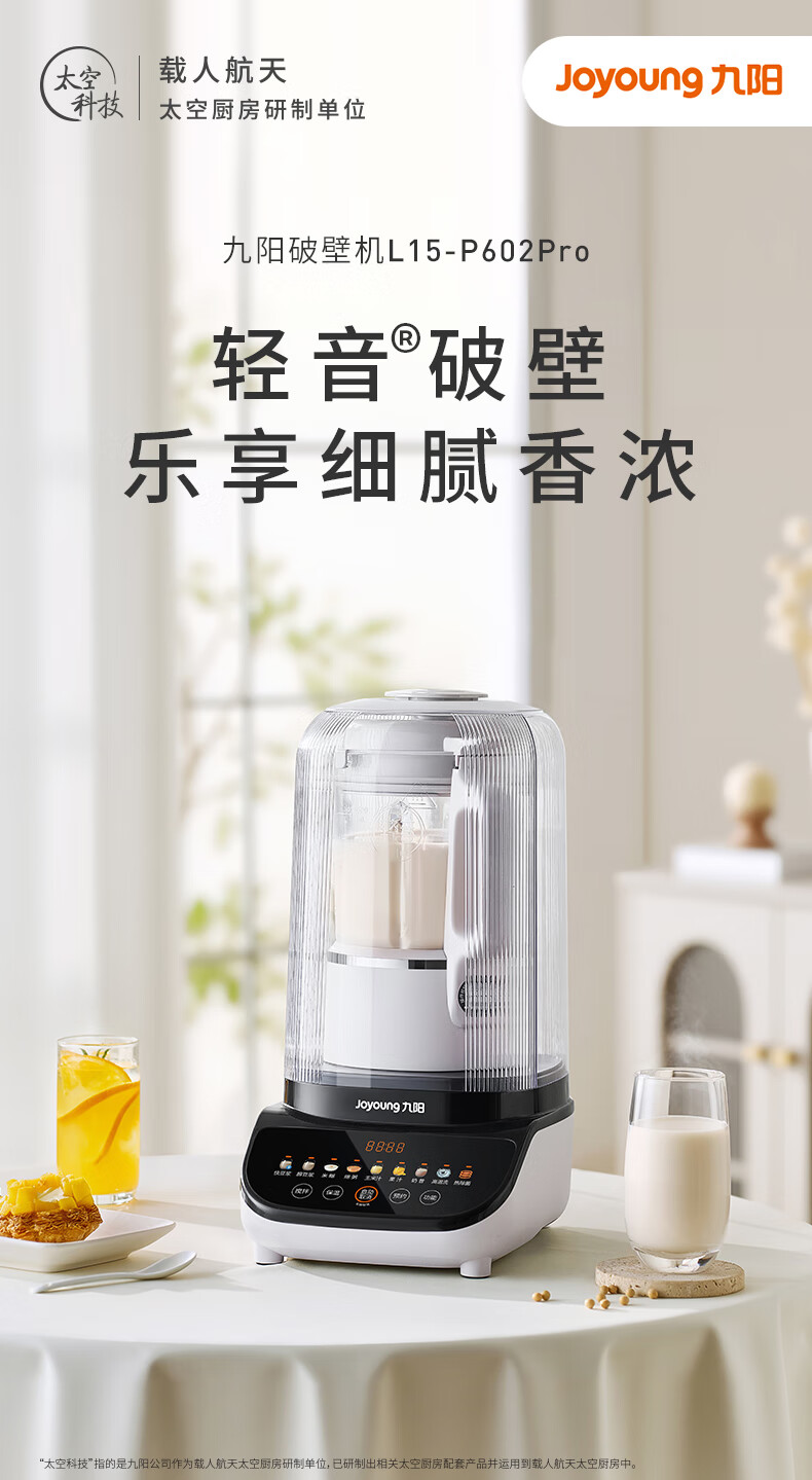 九阳破壁机家用隔音罩豆浆机多功能彩屏轻音1.5L升大容量全自动免煮榨汁机预约果汁机 P602Pro 【多重降噪 轻音低至43分贝】