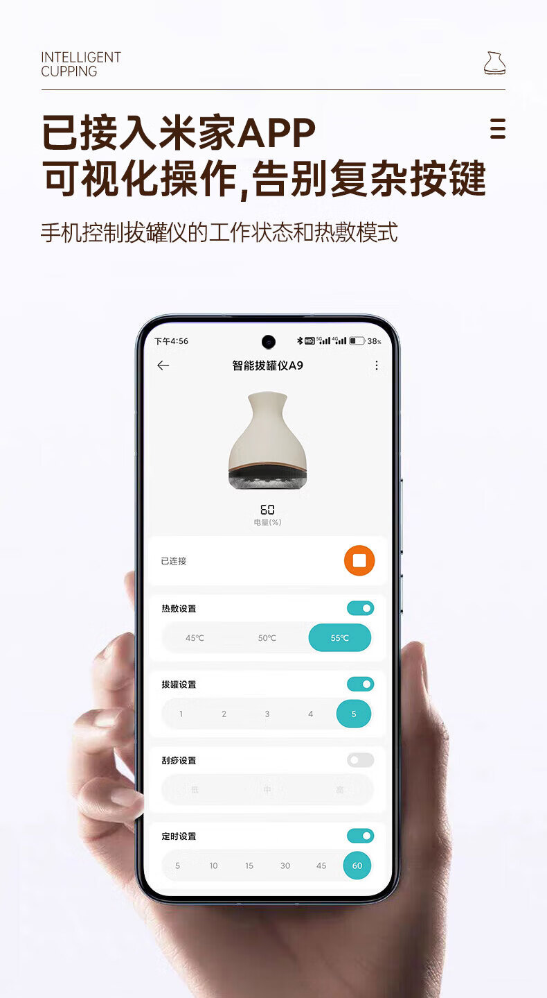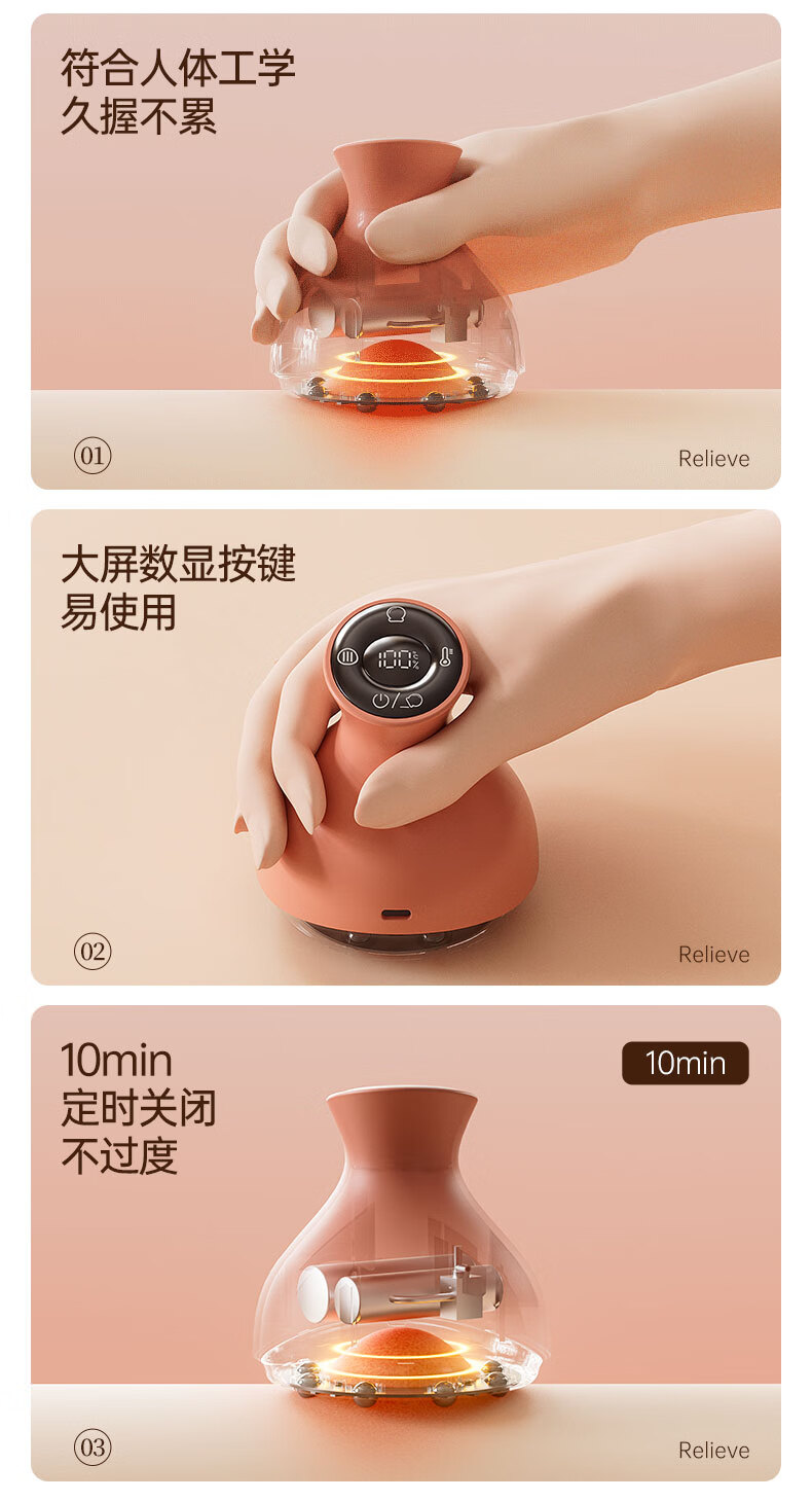 米小舒智能拔罐器刮痧仪家用手持按摩神器祛湿热敷疏通经络多功能一体机