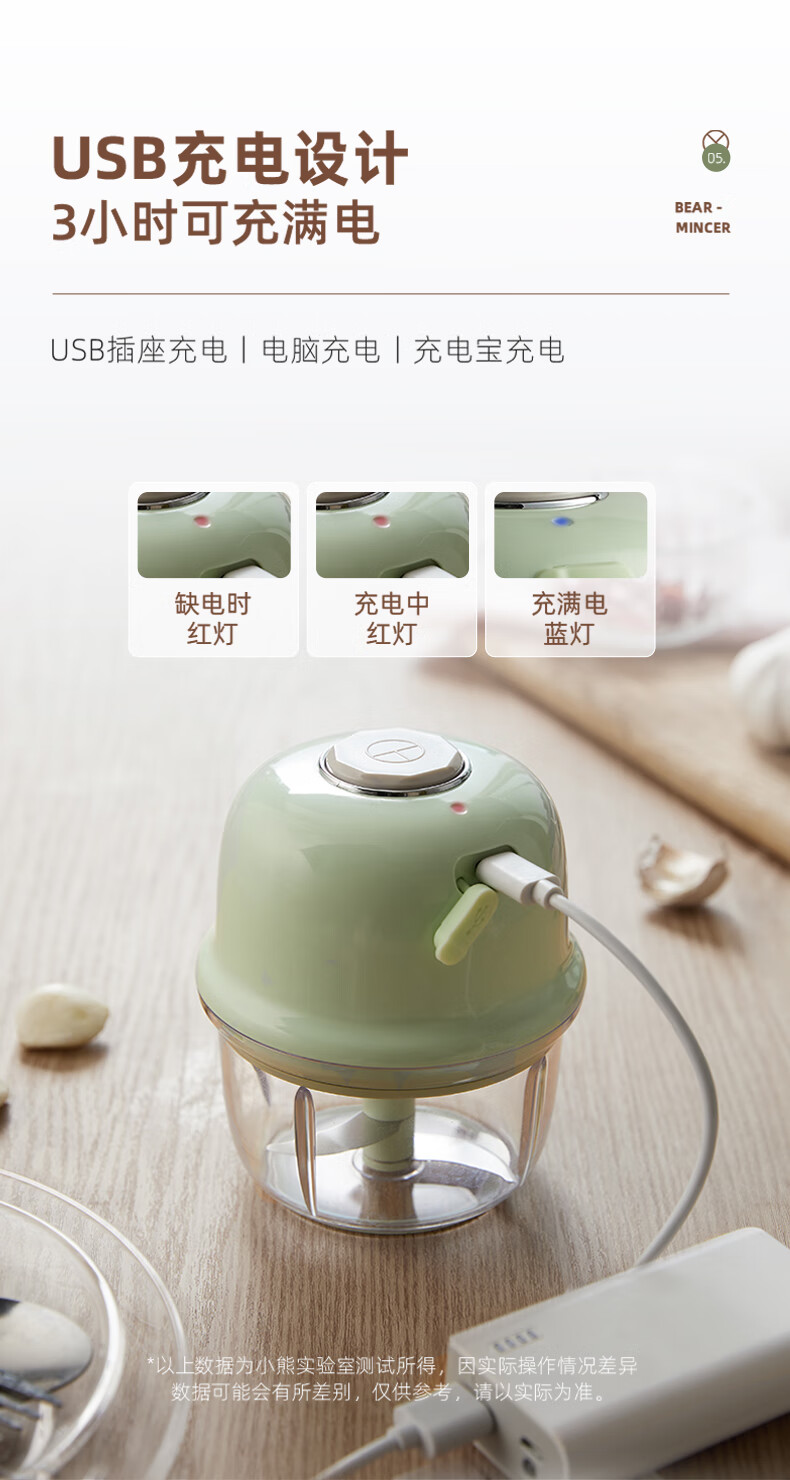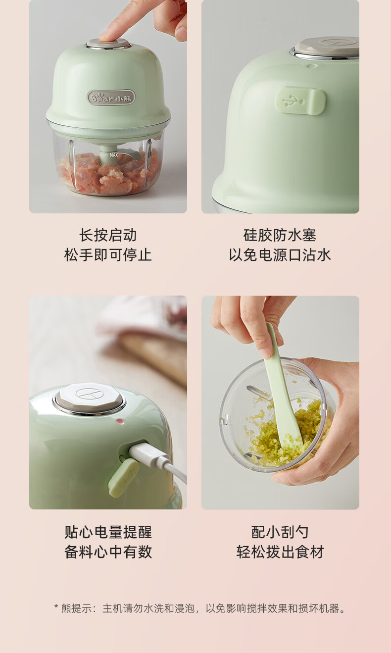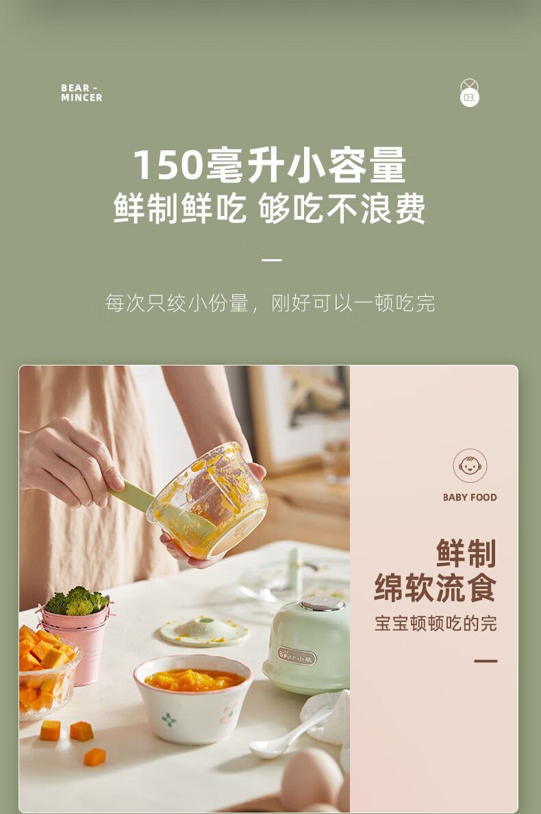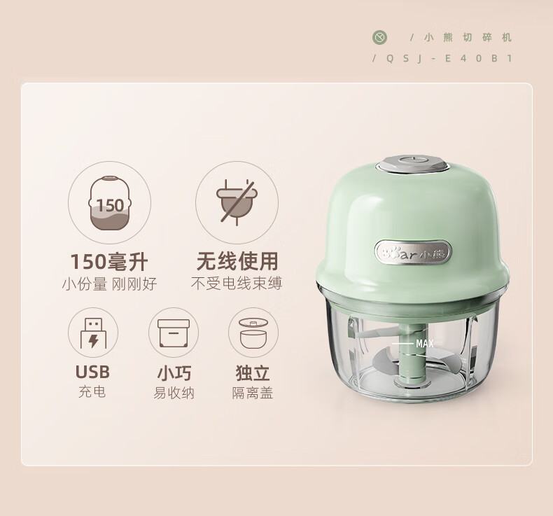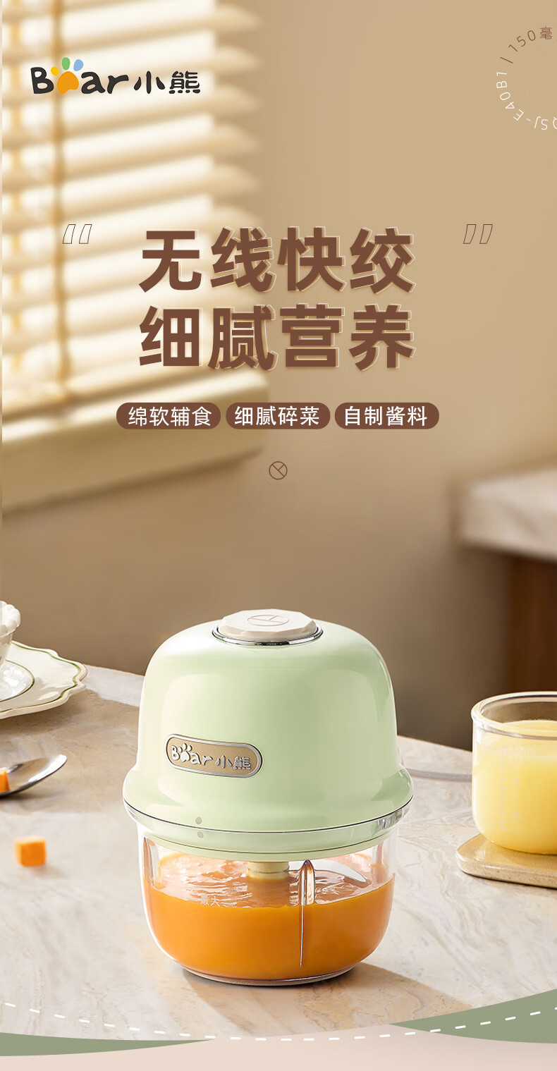 小熊(Bear)婴儿辅食机 绞肉机家用 小型多功能打泥搅拌机 宝宝辅食料理机蒜泥捣碎器 便携辅食机 QSJ-E40B1