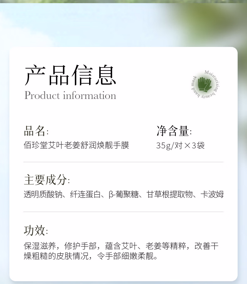 佰珍堂【超值爆款】艾叶老姜手膜足膜脚膜35g手部护理跨境厂家SN7296 足膜35g/2袋