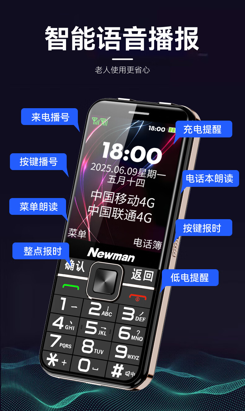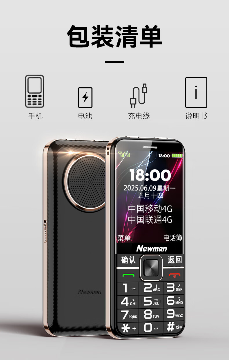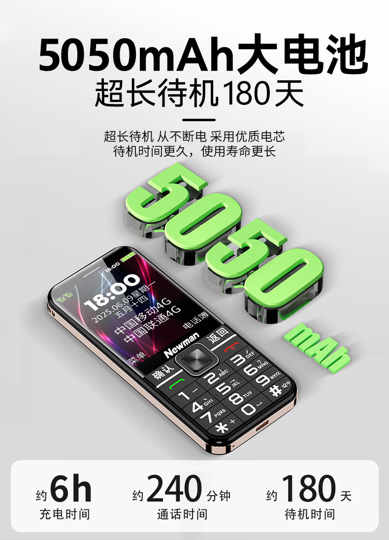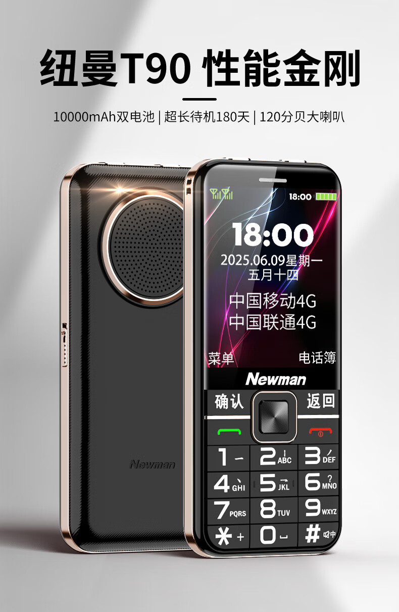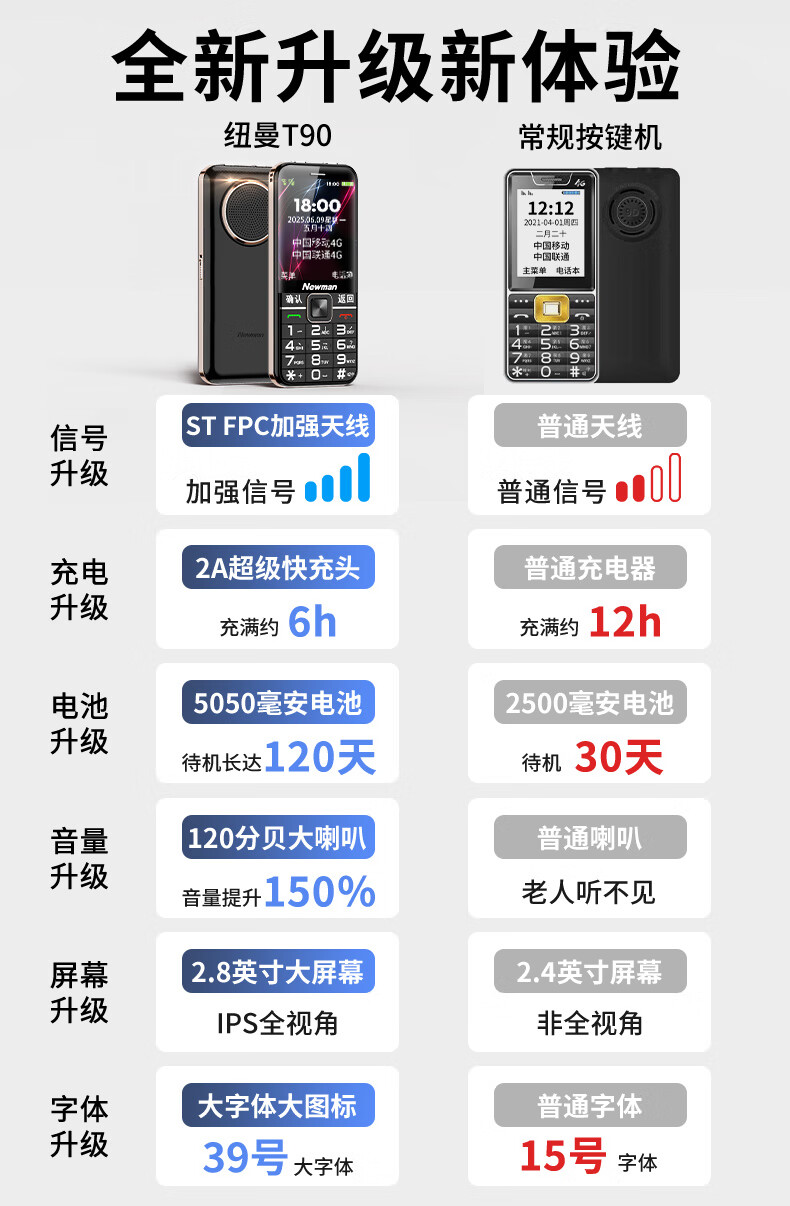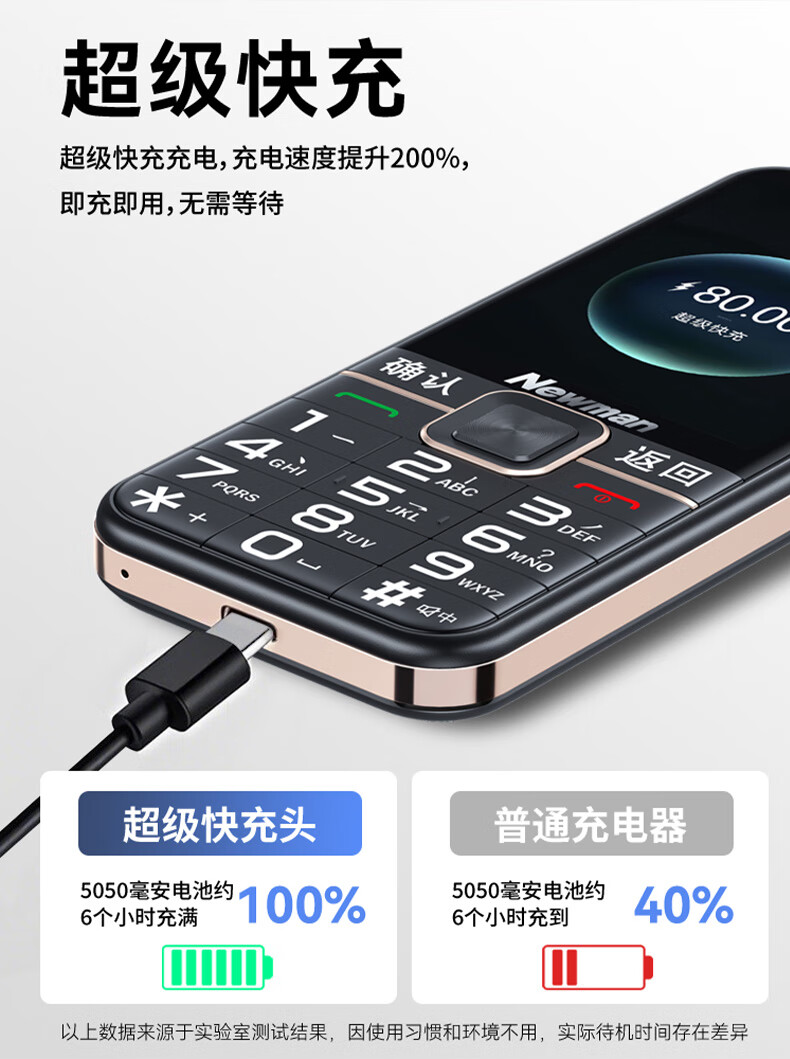 纽曼(Newman)T90超级快充手机5050毫安电池超长待机大声音大按键大字体老年机老年机五年延保三年只换不修