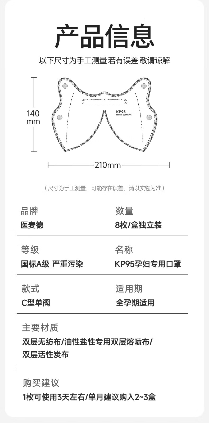 医麦德 KP95孕妇防甲醛专用口罩办公室防二手烟油烟汽车尾气雾霾高颜值