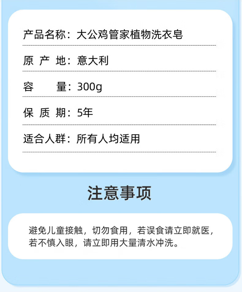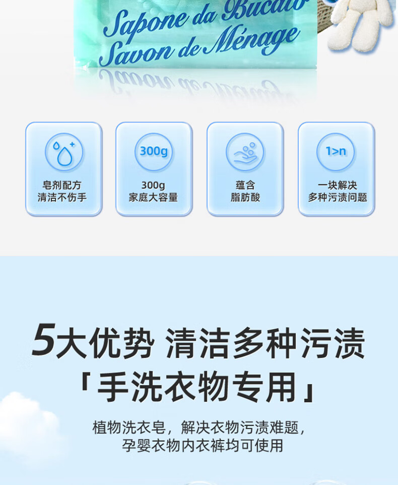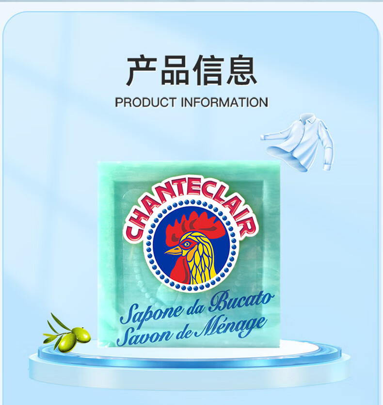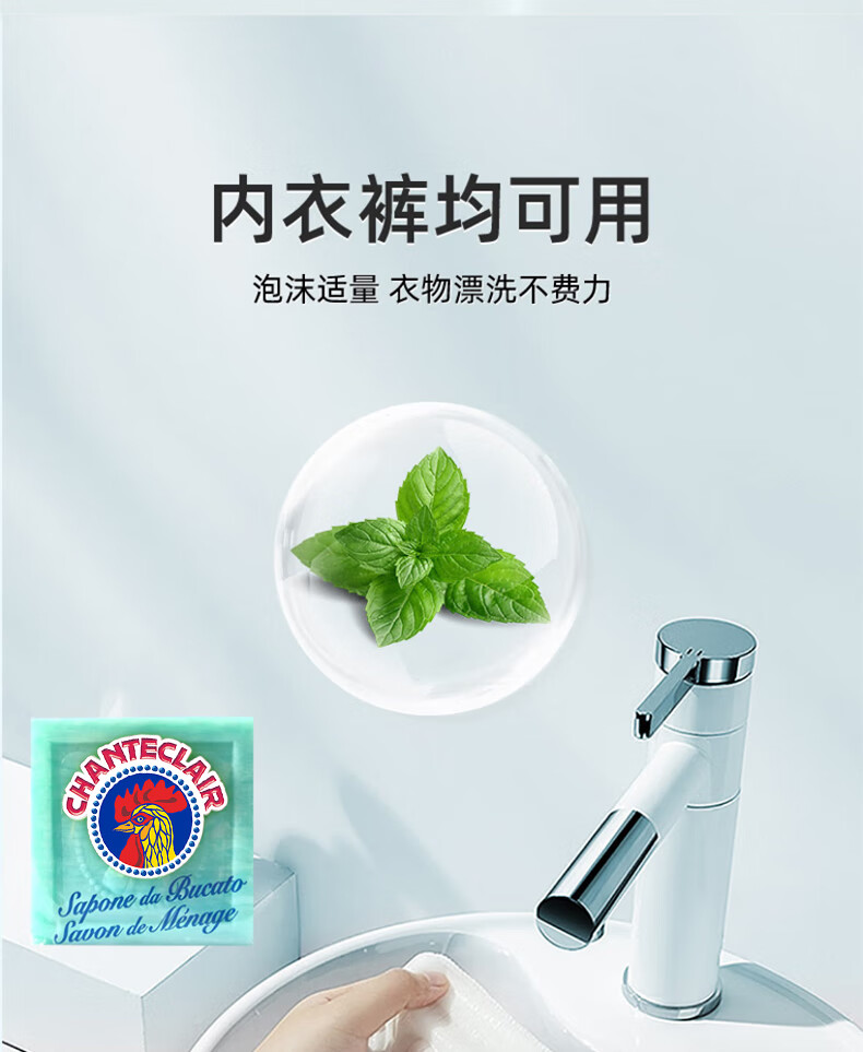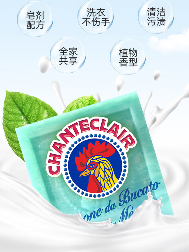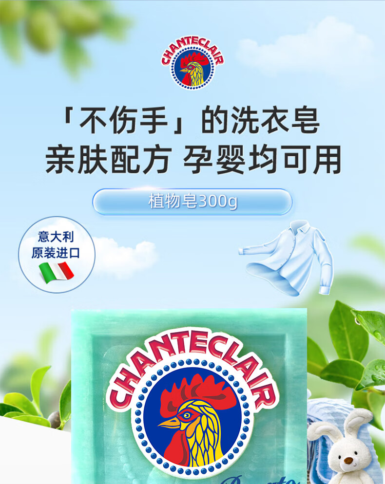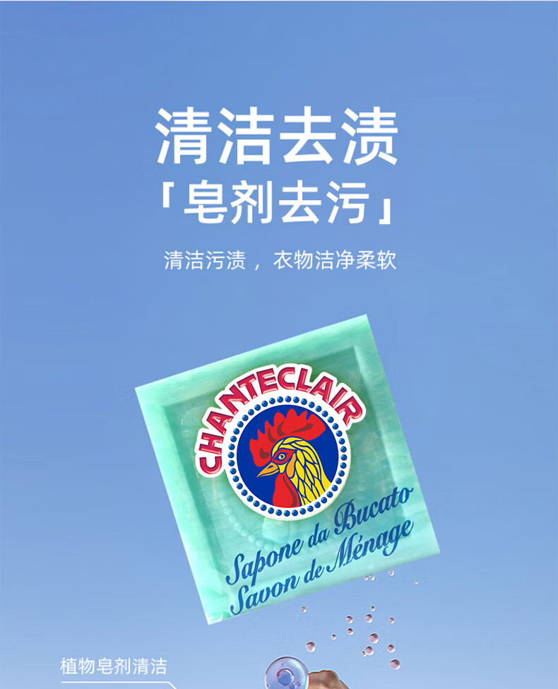 大公鸡管家(CHANTE CLAIR)意大利进口 洗衣皂内衣皂女士洗内裤皂公鸡头婴幼儿洗衣皂 马赛皂*2+植物皂*2