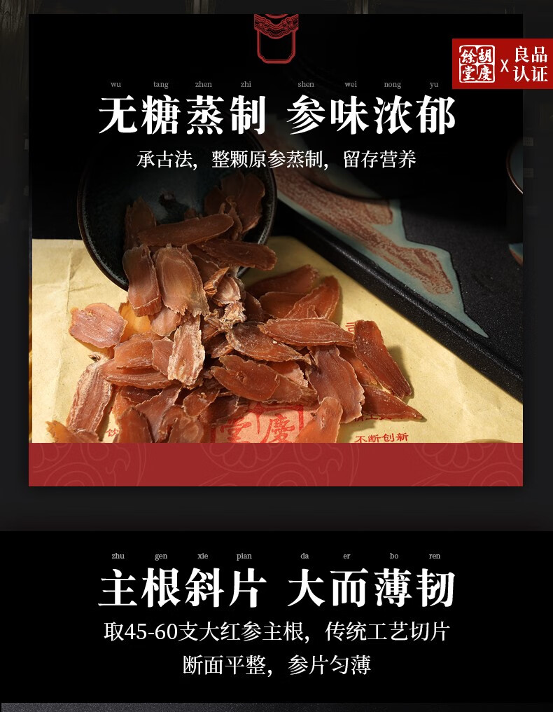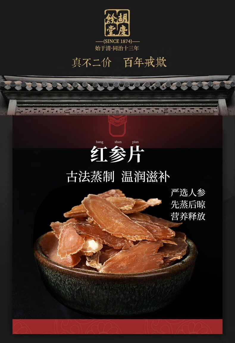 胡庆余堂长白山红参100克礼盒节日礼物营养品补品红参片送礼送长辈老人 1盒装