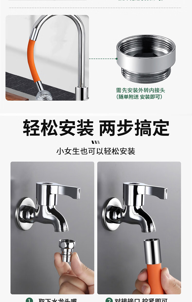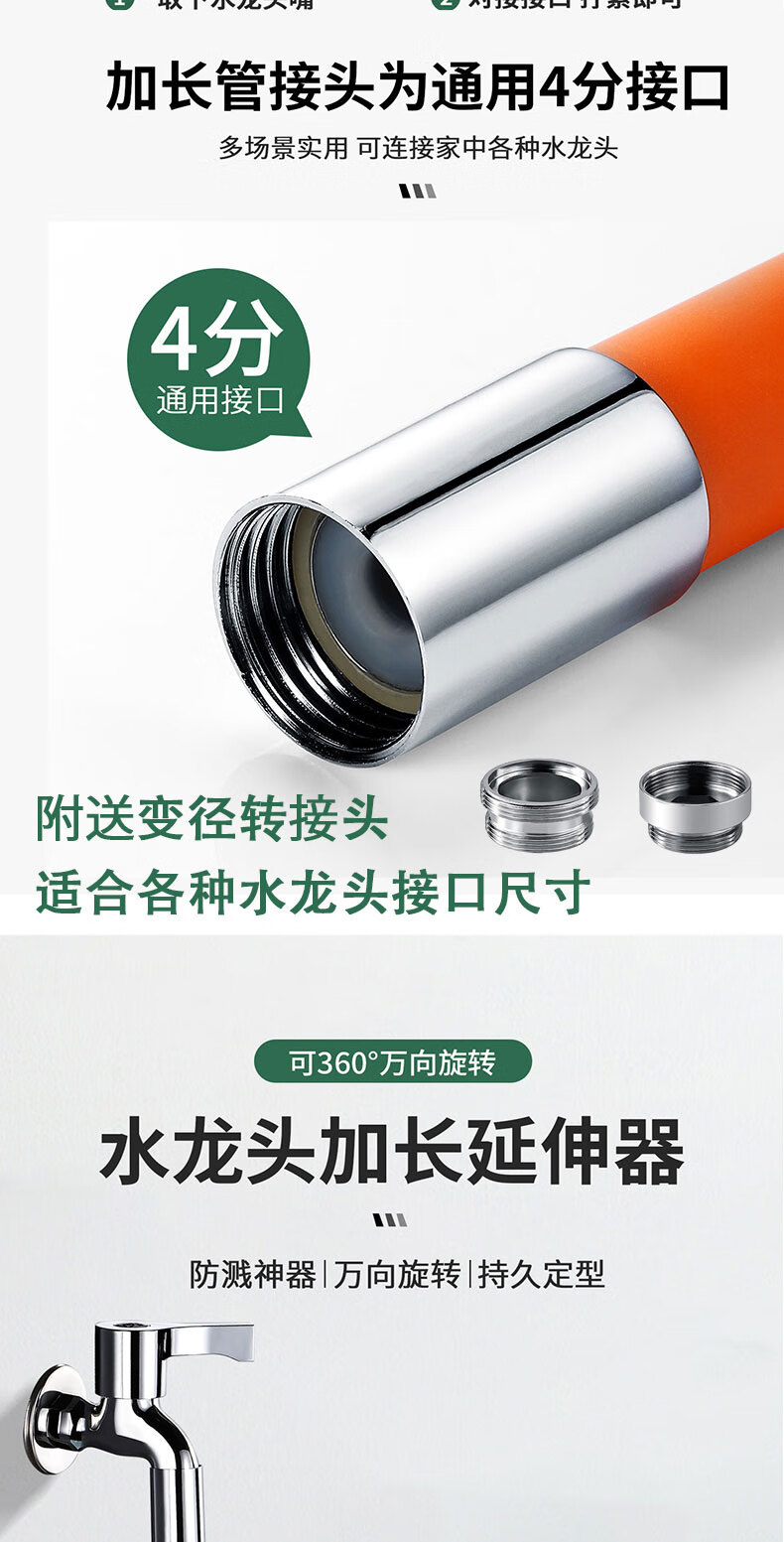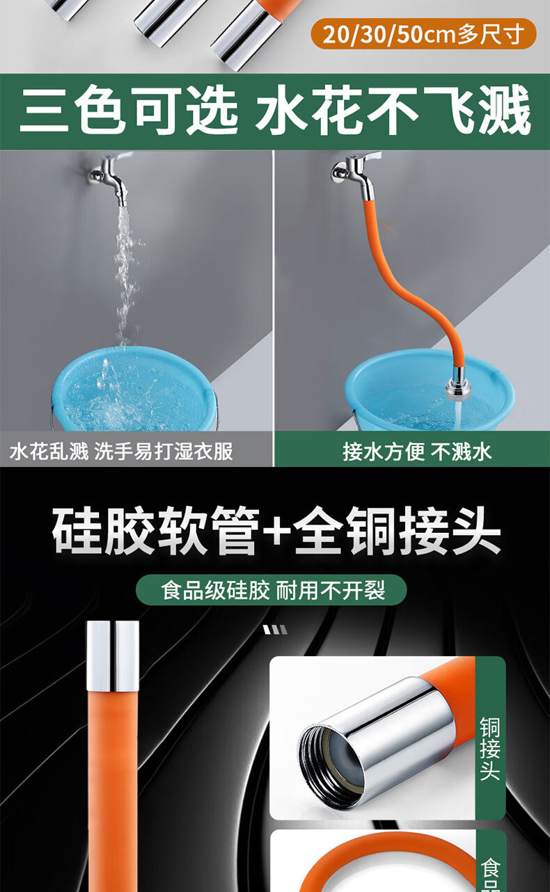 麦小登水龙头防溅神器洗头加长延伸管可弯曲不变形拖把池水龙头延伸器 水龙头延伸器软管【50cm带档位】