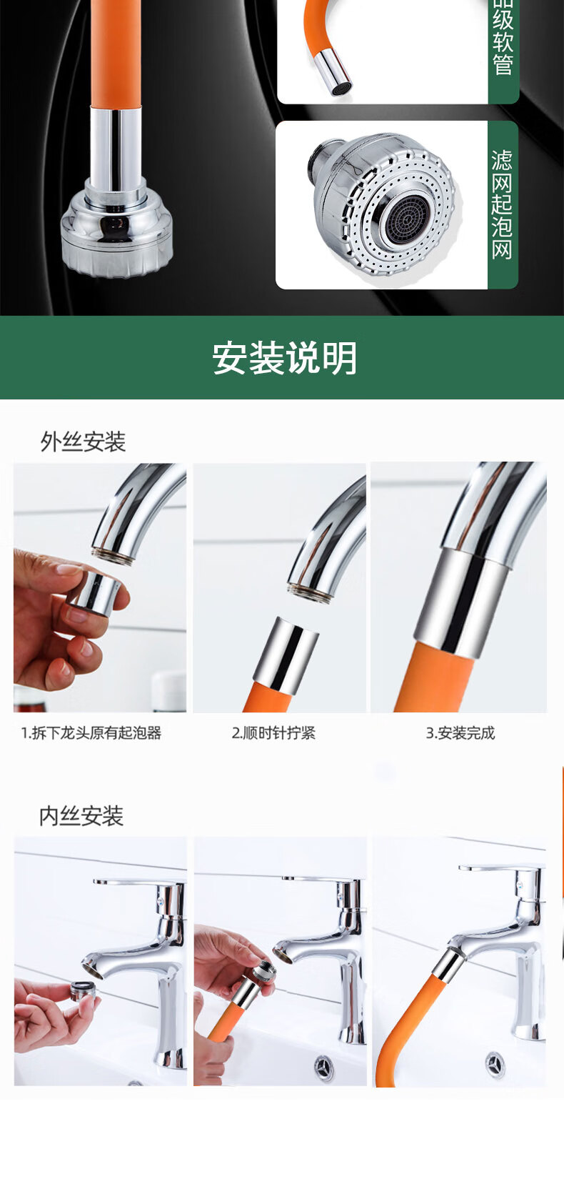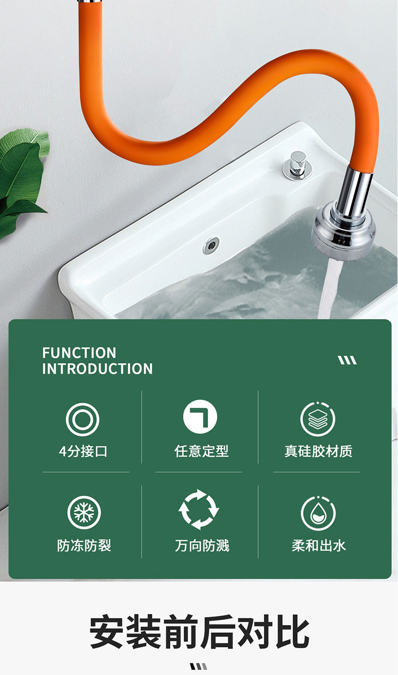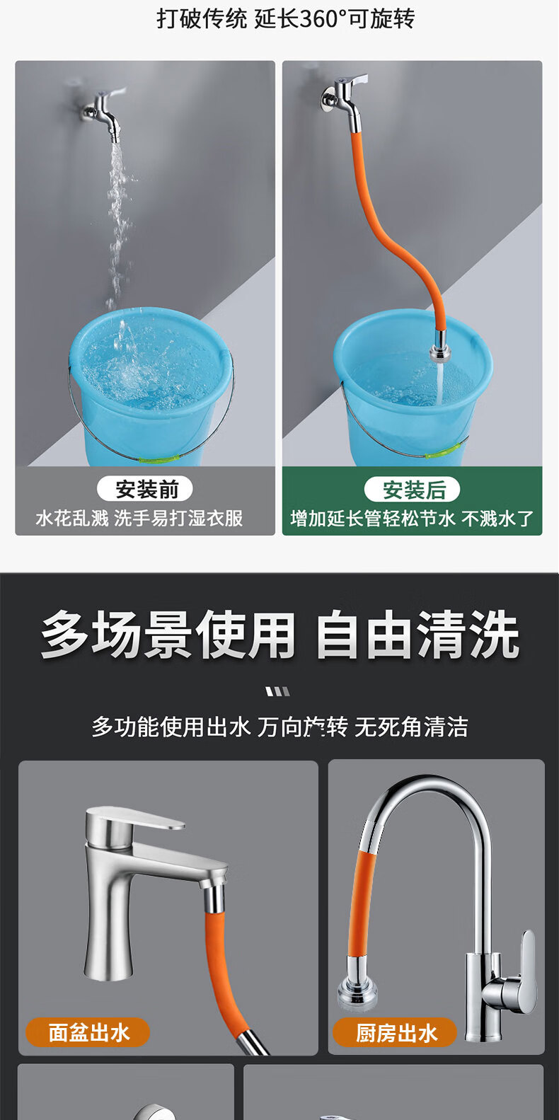 麦小登水龙头防溅神器洗头加长延伸管可弯曲不变形拖把池水龙头延伸器 水龙头延伸器软管【50cm带档位】