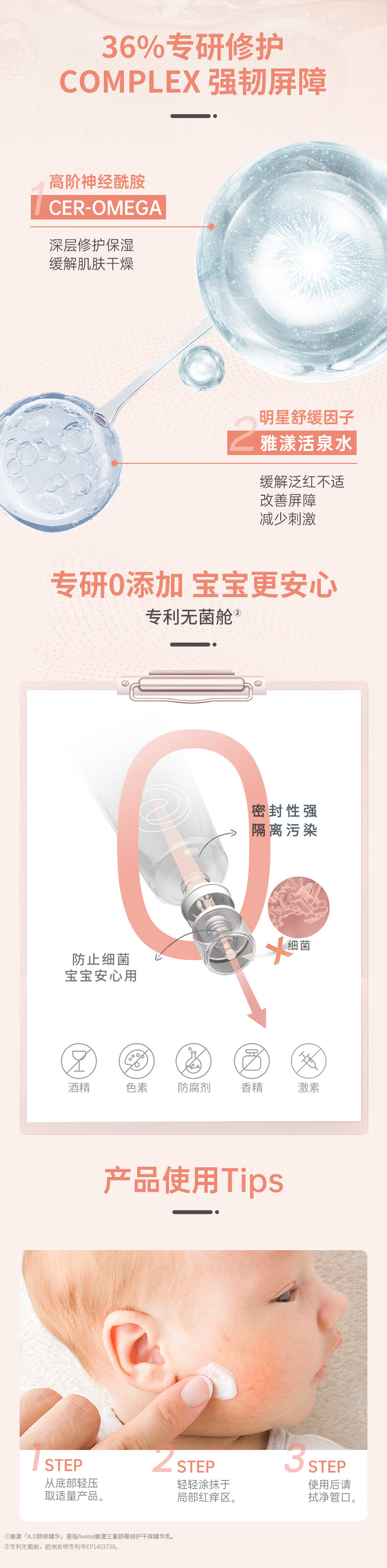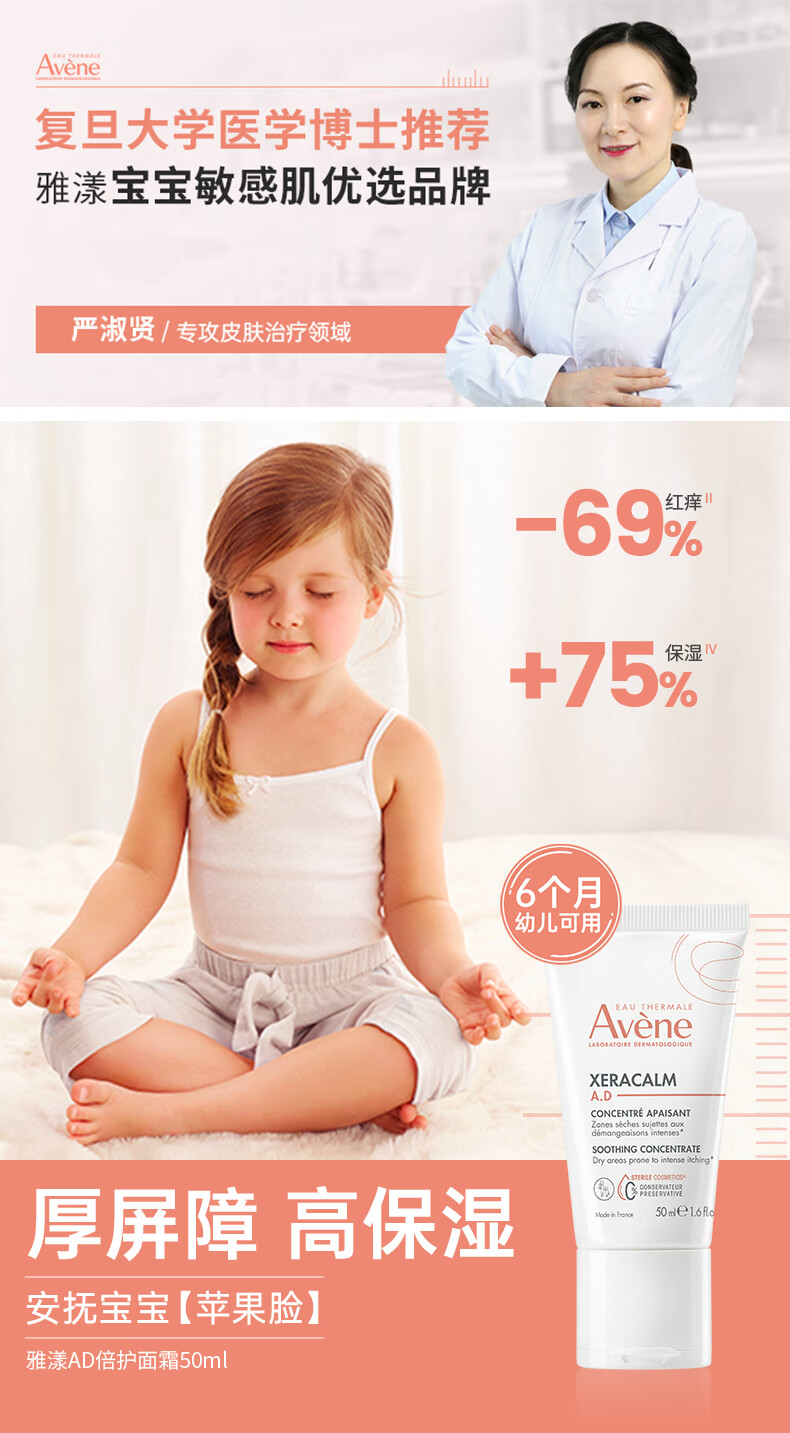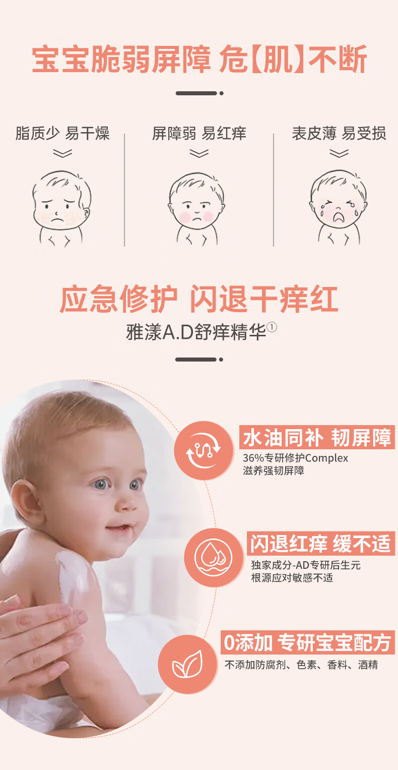 雅漾AD膏高保湿补水三重修护特护霜儿童面霜止痒大白瓶 三重AD膏效期26.4