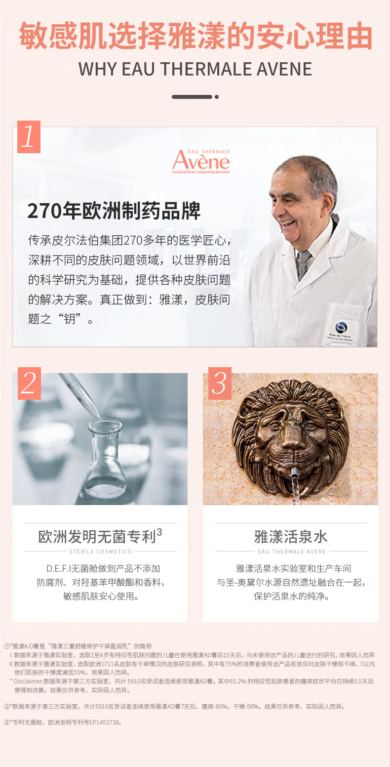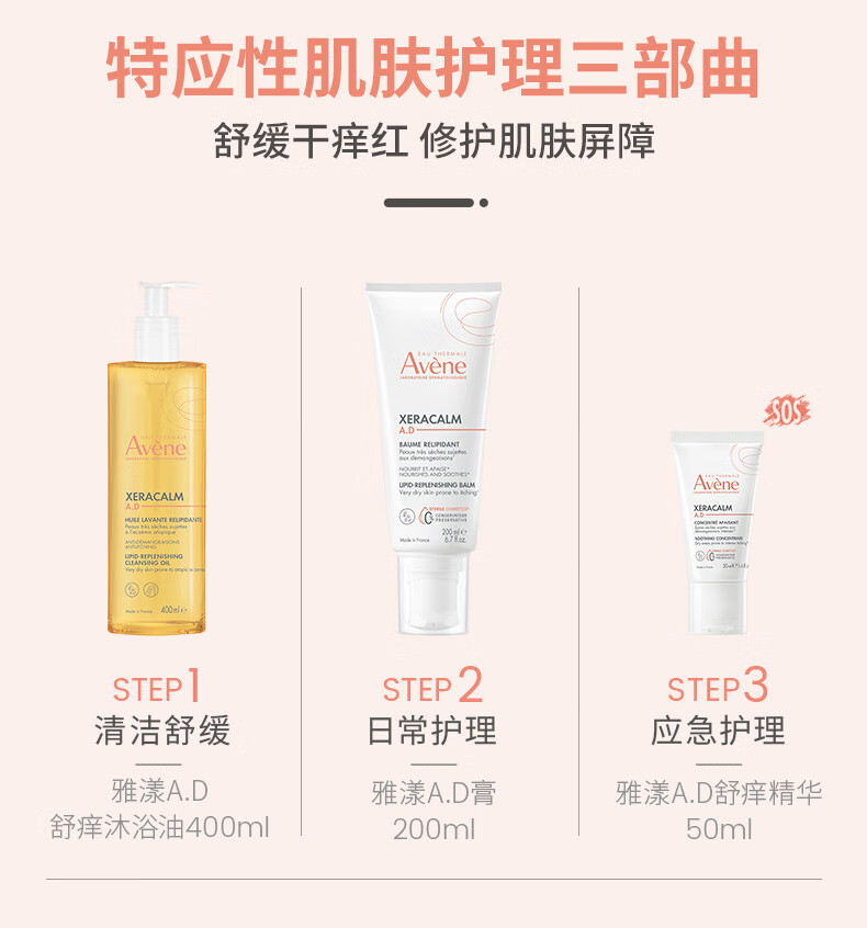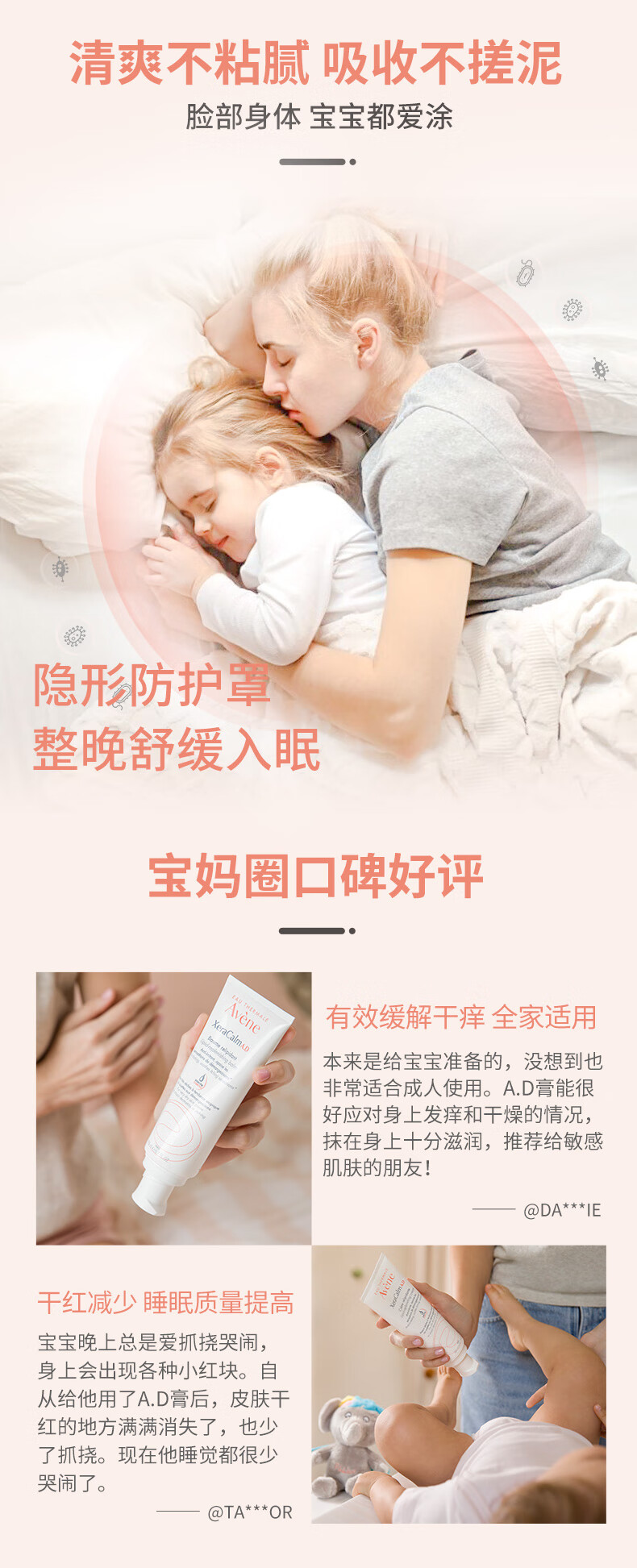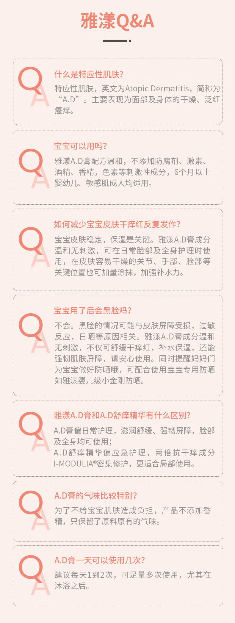 雅漾AD膏高保湿补水三重修护特护霜儿童面霜止痒大白瓶 三重AD膏效期26.4