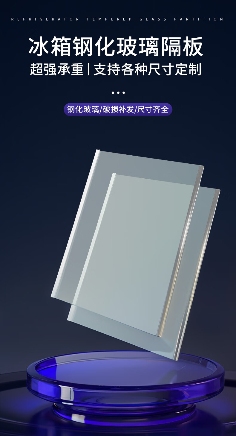 适用于海尔冰箱隔板分层板钢化玻璃隔层板双开门冷藏冷冻冰箱配件 商品定制尺寸3天左右发货