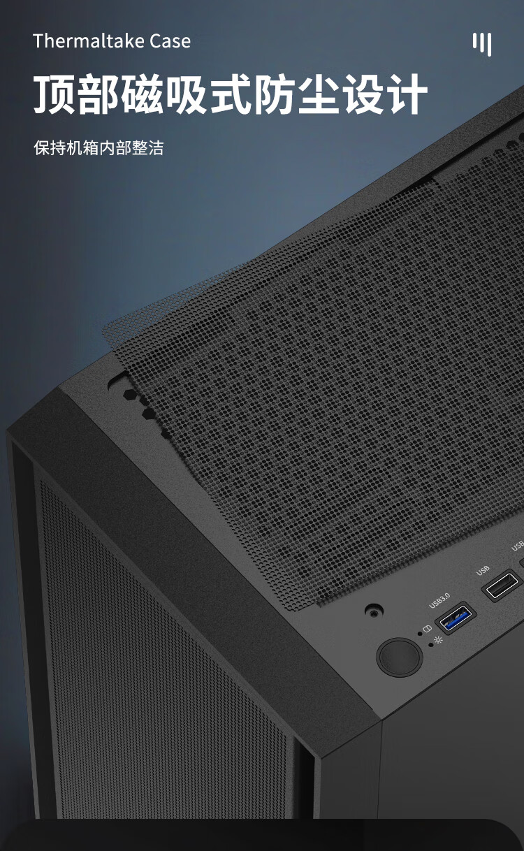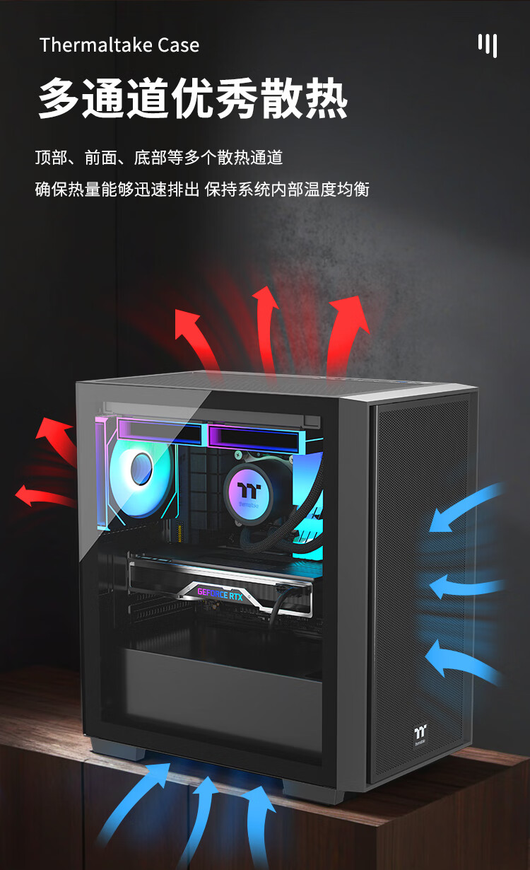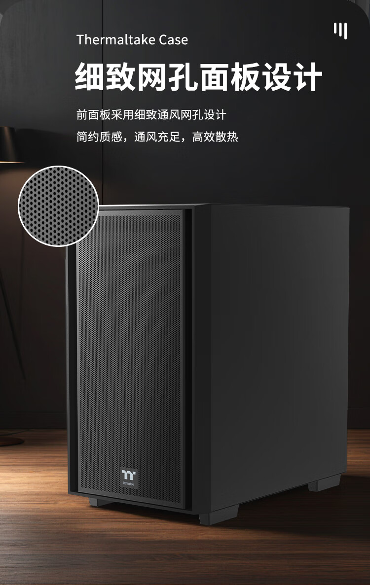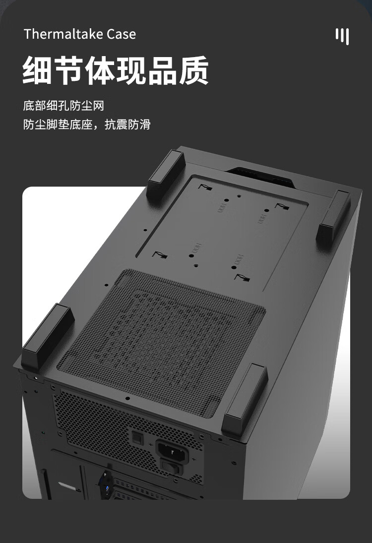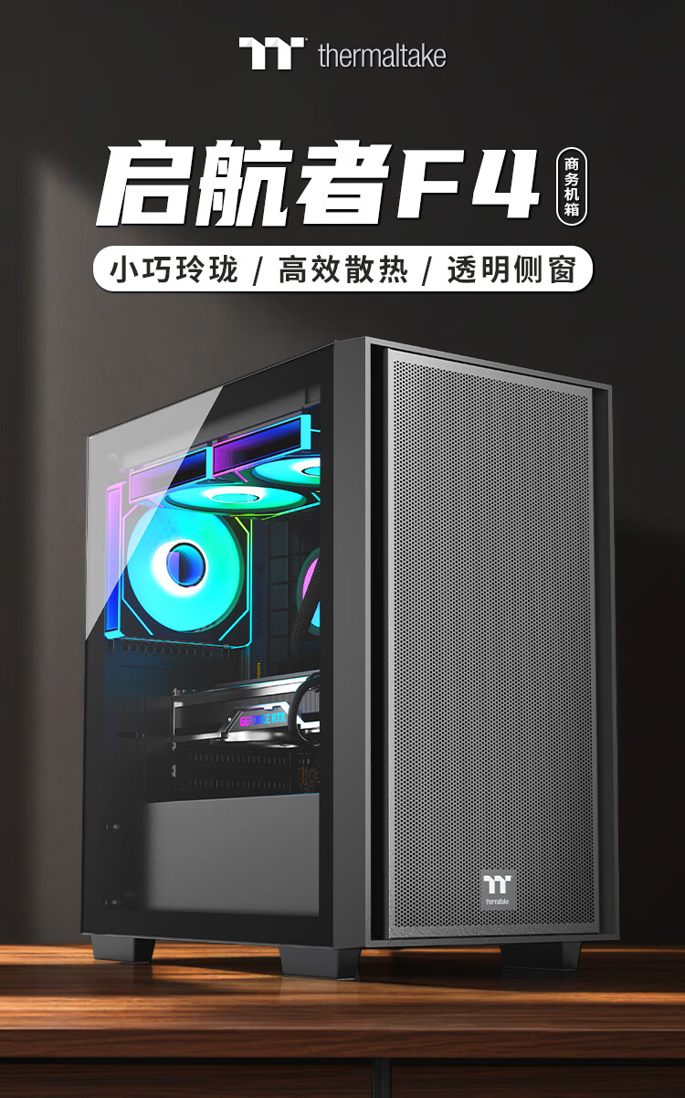 Thermaltake(Tt)启航者F4 黑色 Mini小机箱水冷电脑主机(支持MATX主板/钢化玻璃侧透/铁网面板/支持背线)