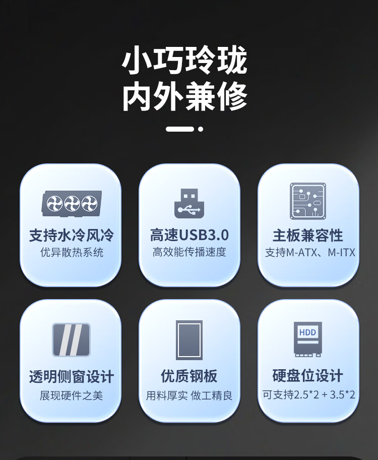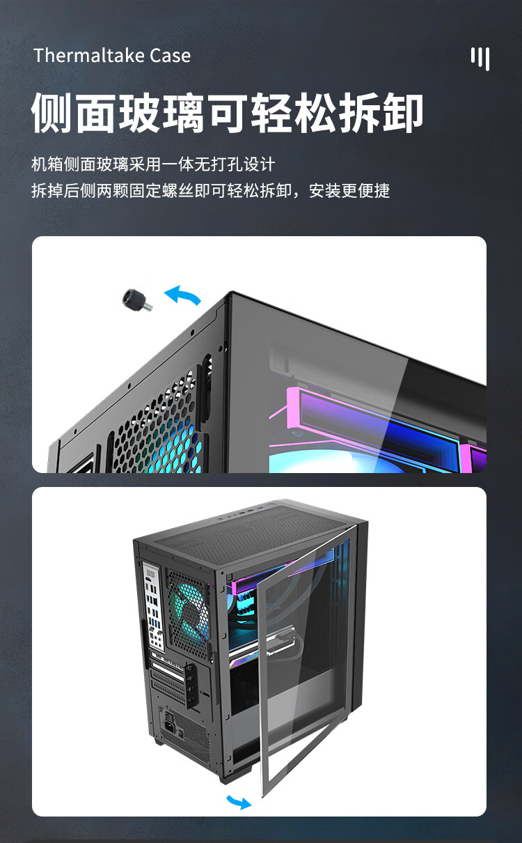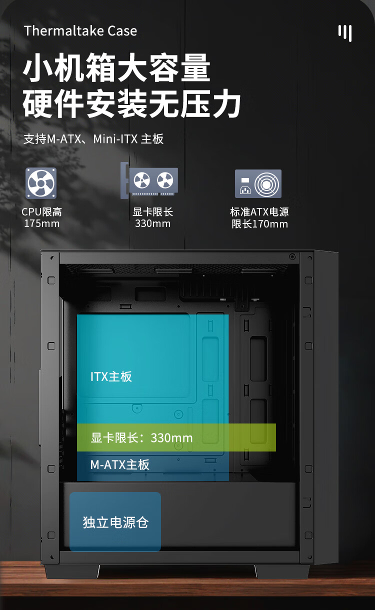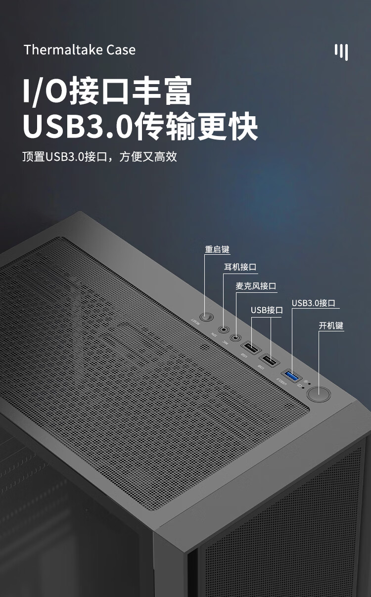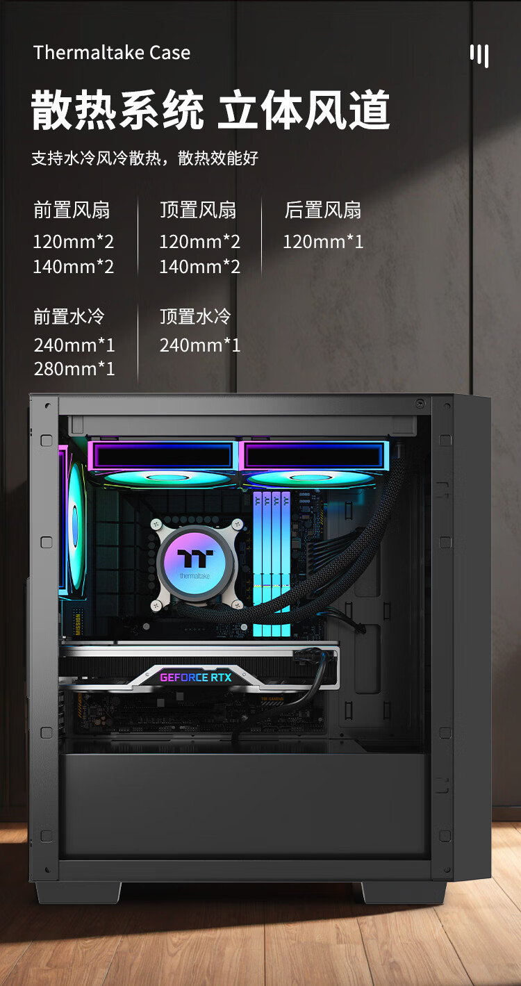 Thermaltake(Tt)启航者F4 黑色 Mini小机箱水冷电脑主机(支持MATX主板/钢化玻璃侧透/铁网面板/支持背线)