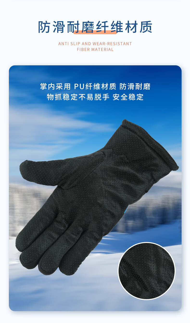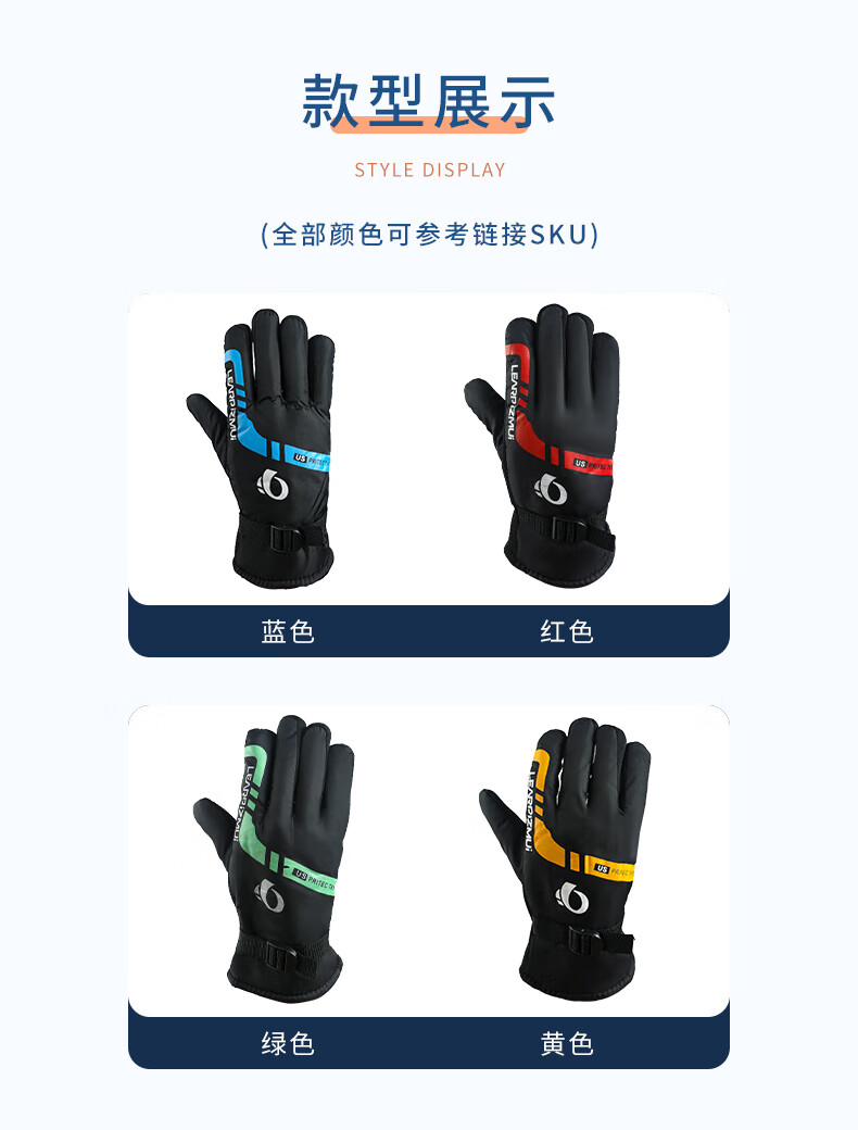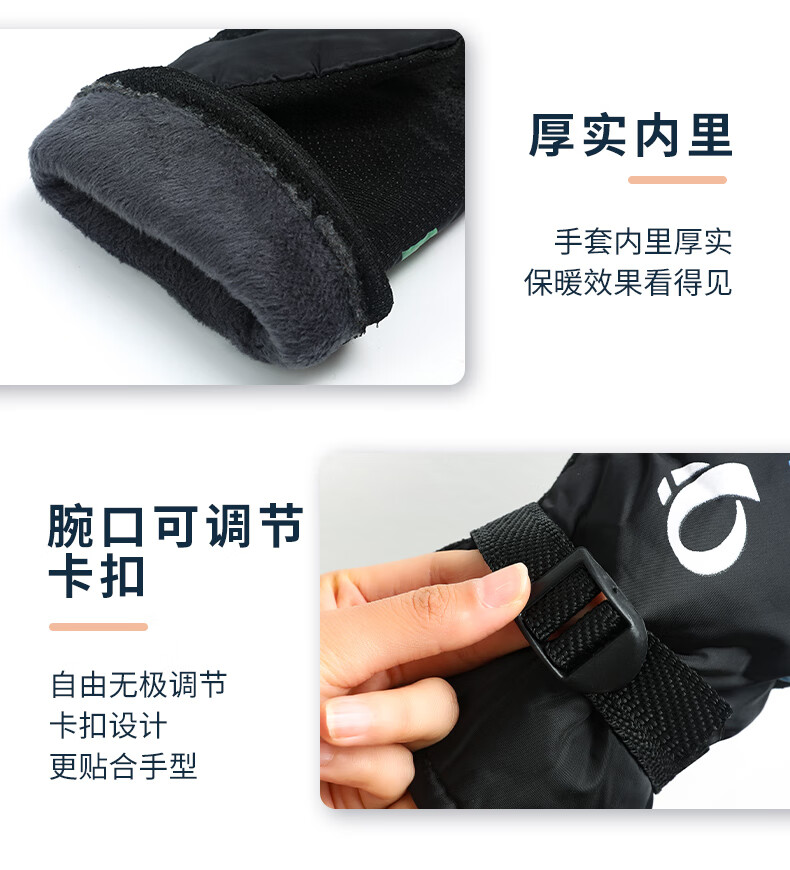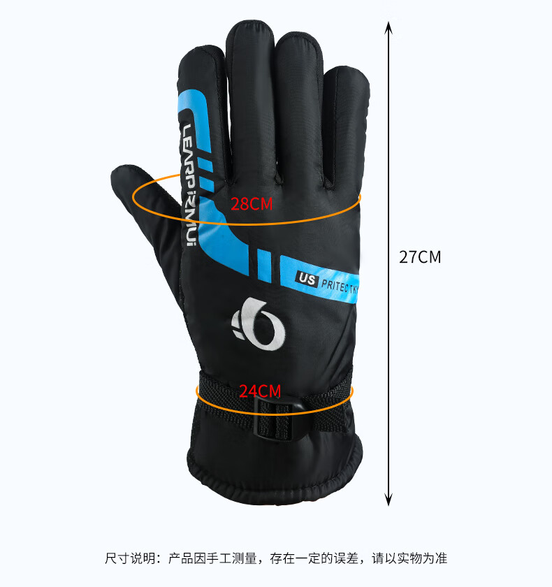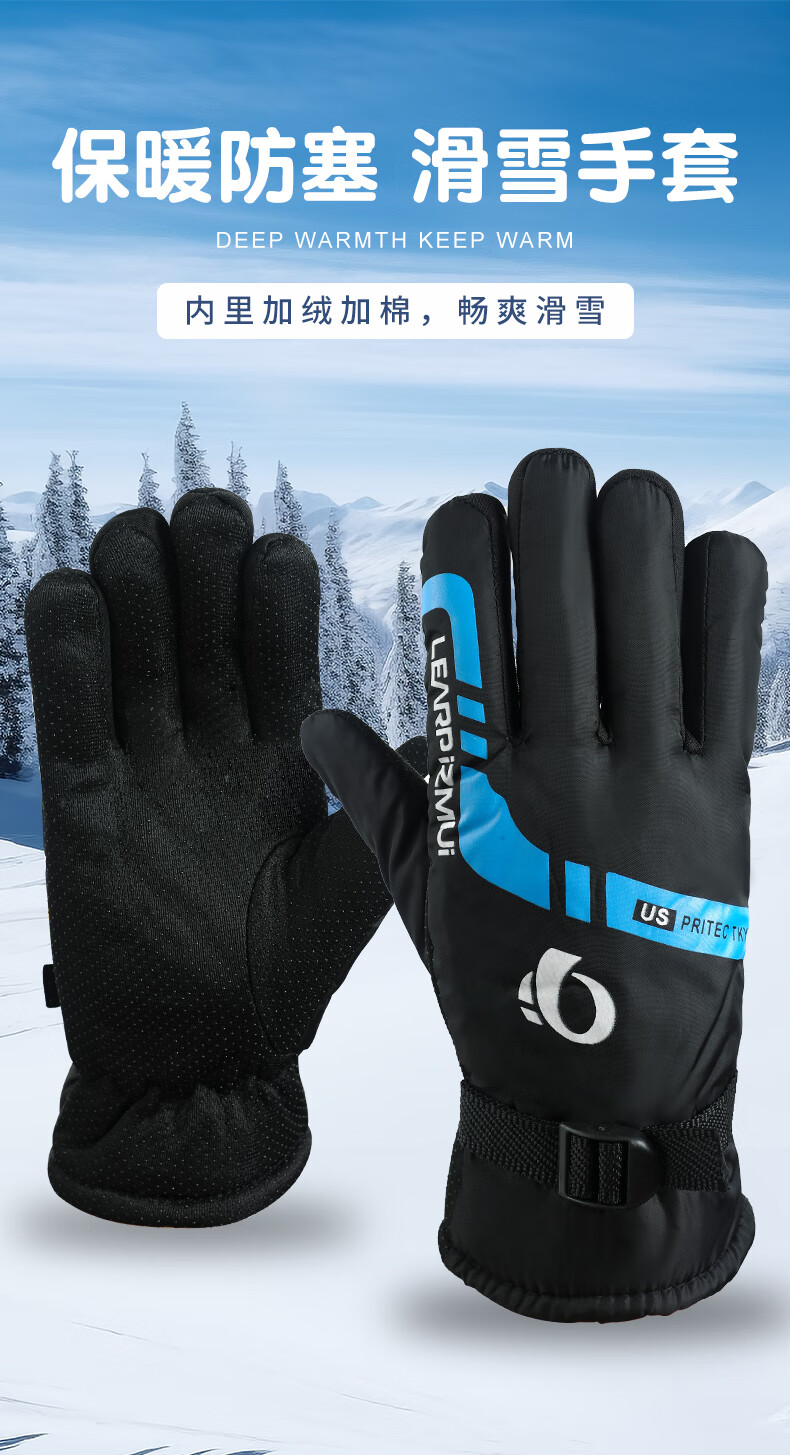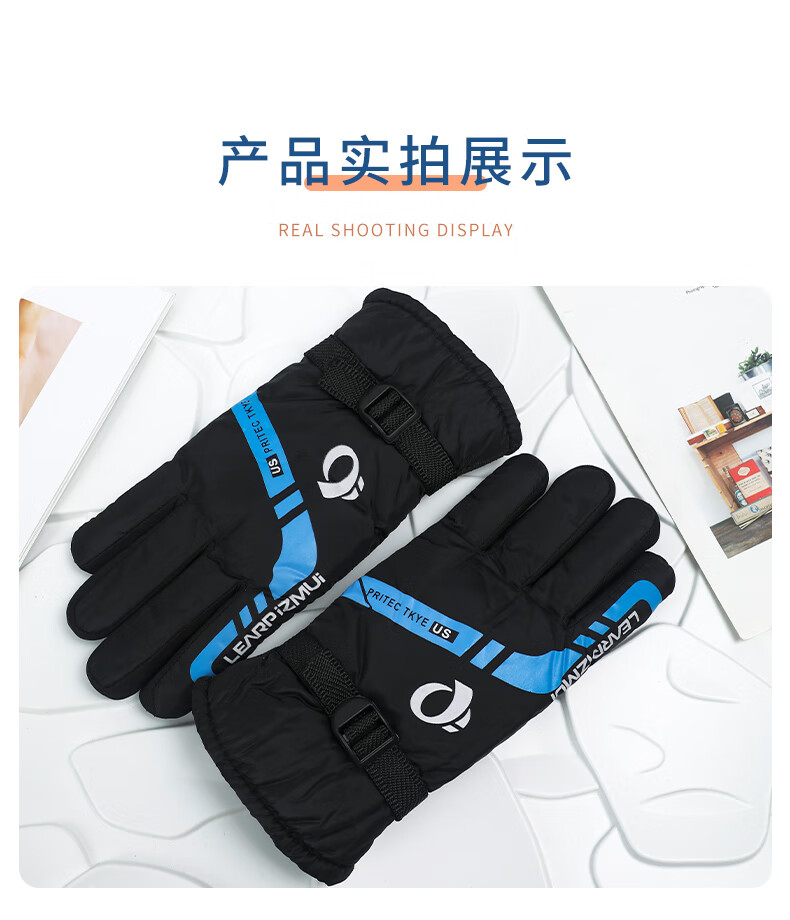 【全网热销】保暖手套冬季骑行男女士电动摩托车防风防寒防水滑雪加绒厚棉触屏防冻滑雪手套劳保手套 保暖手套-黑蓝色-1双装