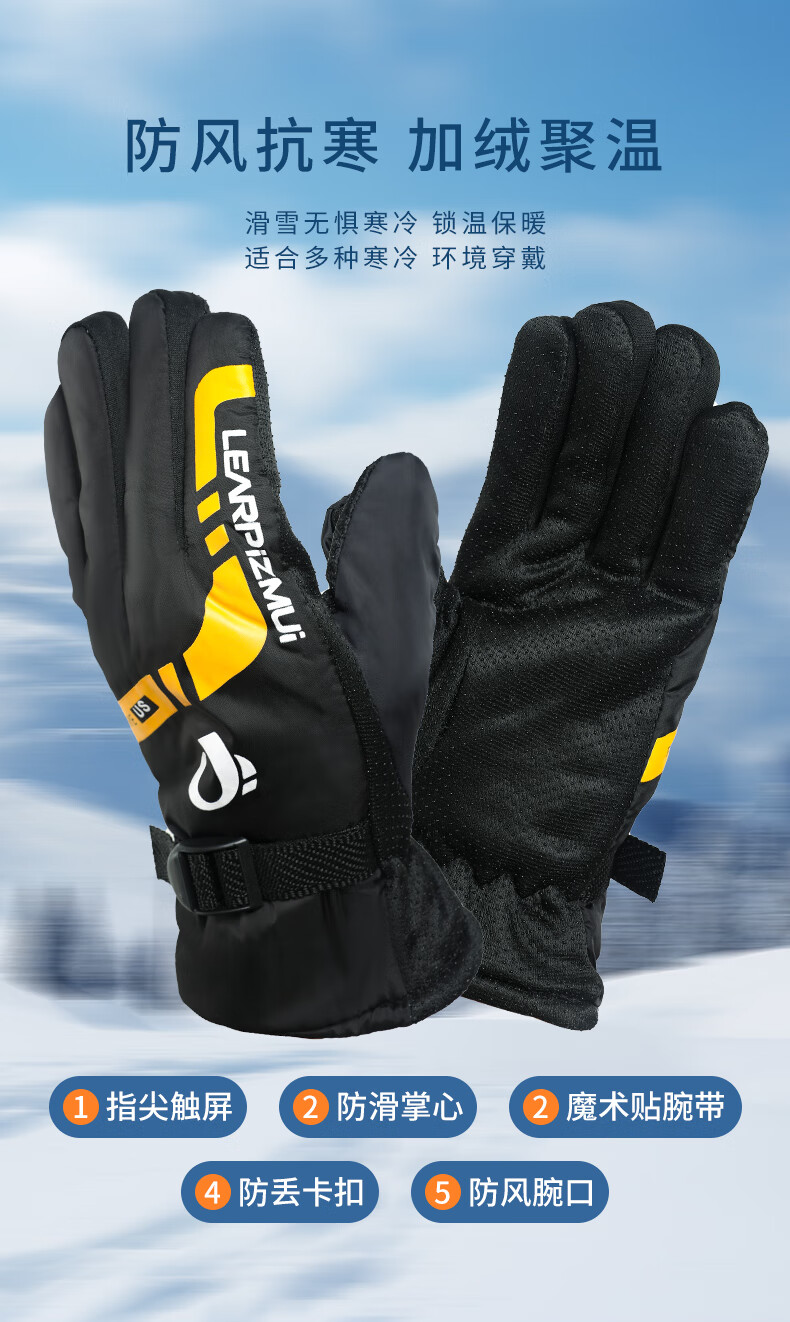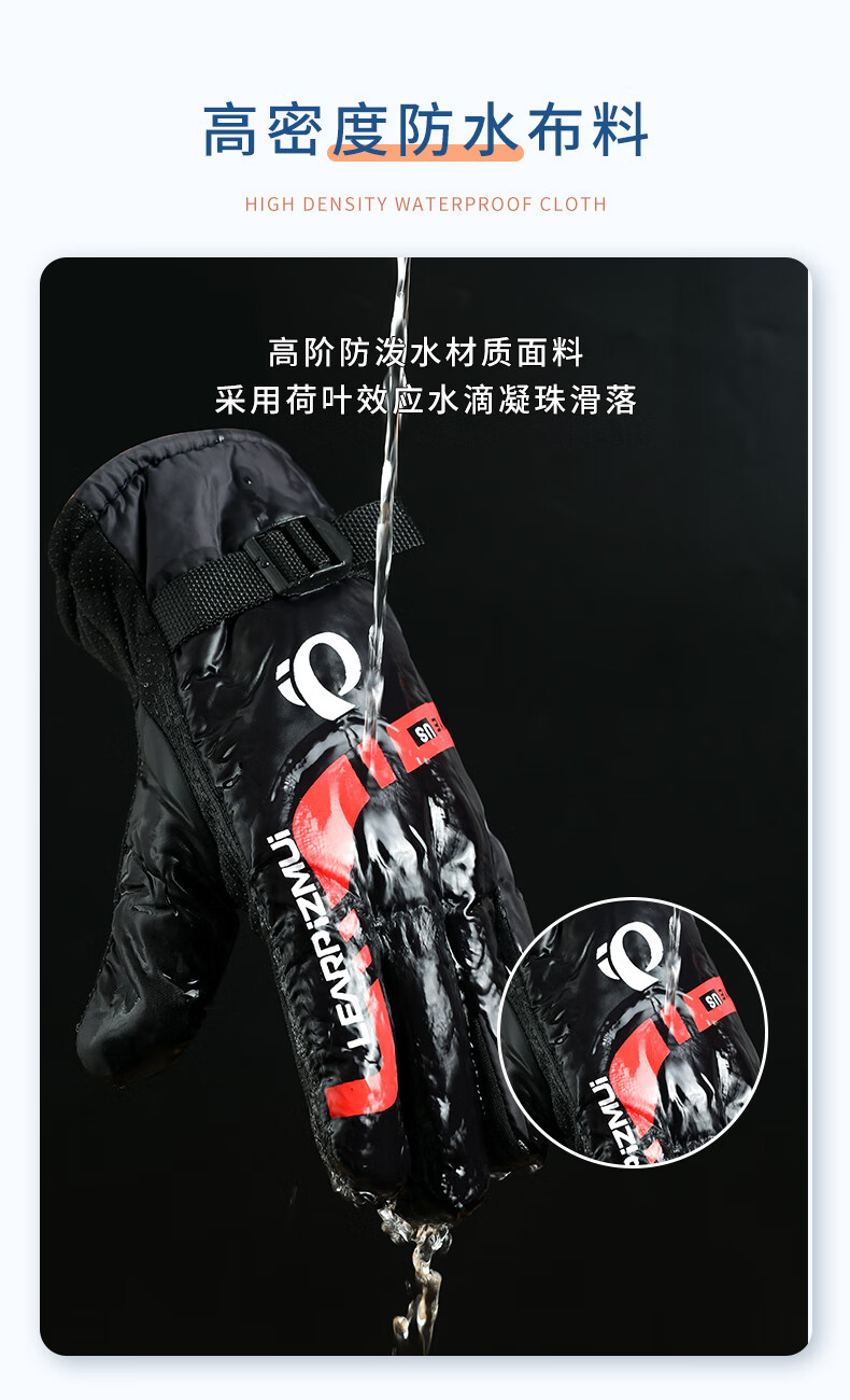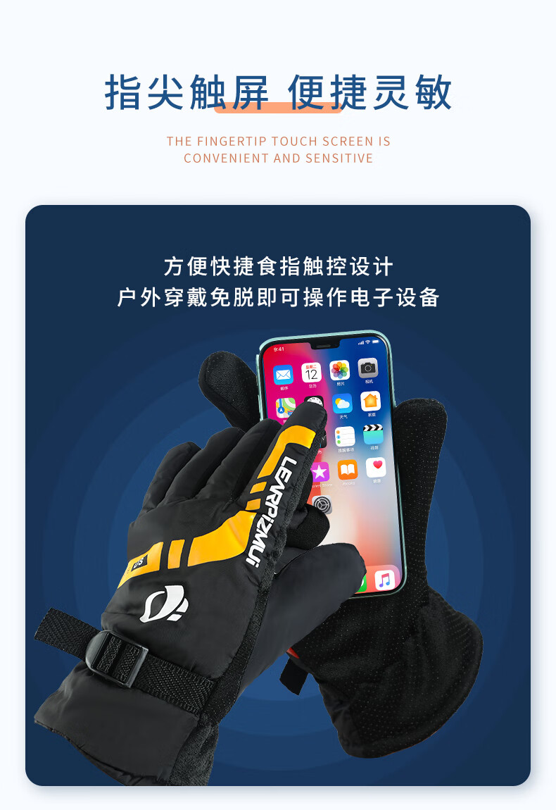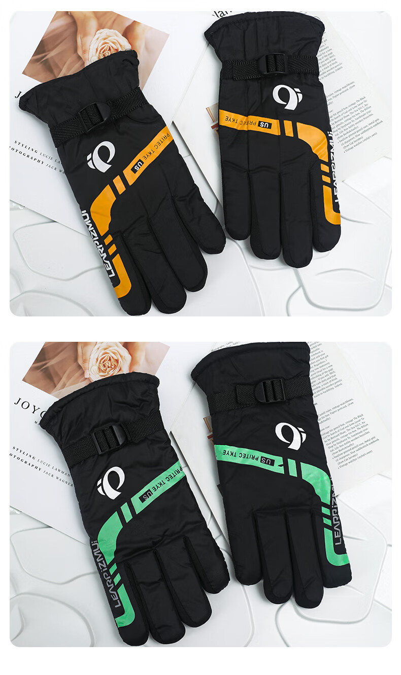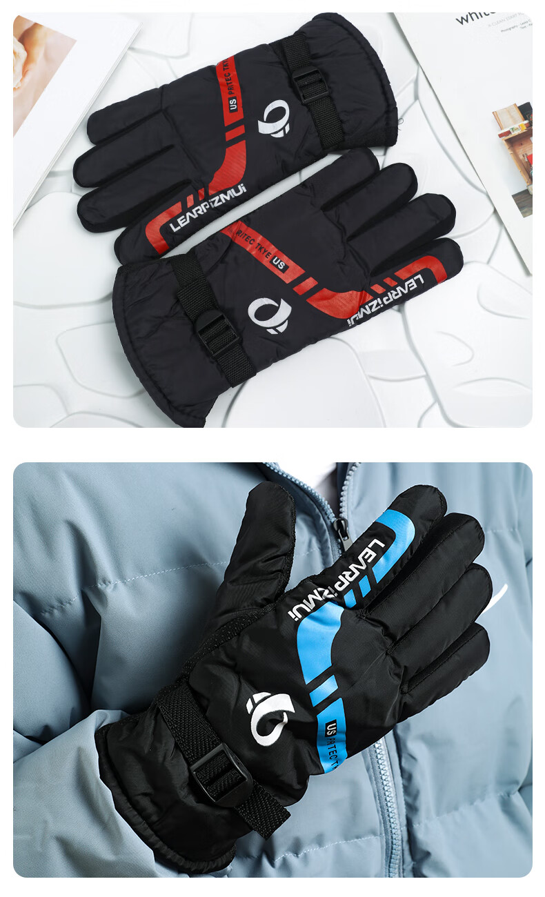 【全网热销】保暖手套冬季骑行男女士电动摩托车防风防寒防水滑雪加绒厚棉触屏防冻滑雪手套劳保手套 保暖手套-黑蓝色-1双装