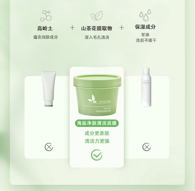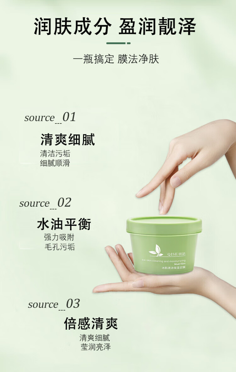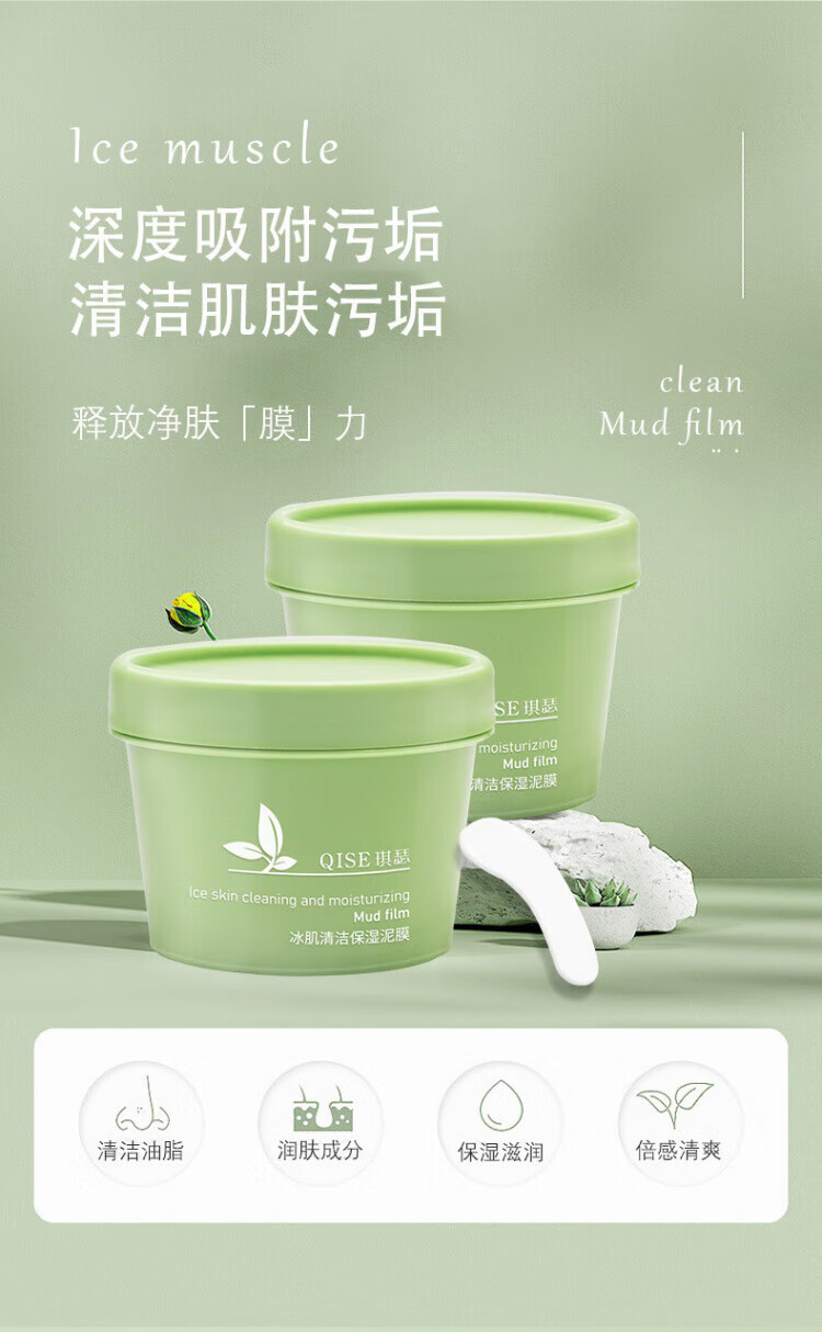琪瑟QISE绿茶泥膜洁面泥面膜涂抹厂家SN7612 冰肌清洁保湿泥膜