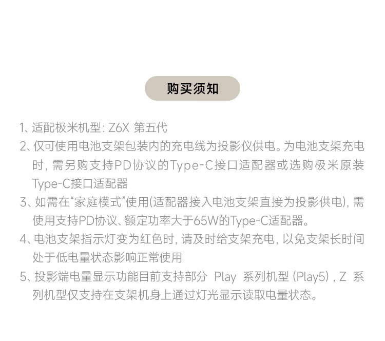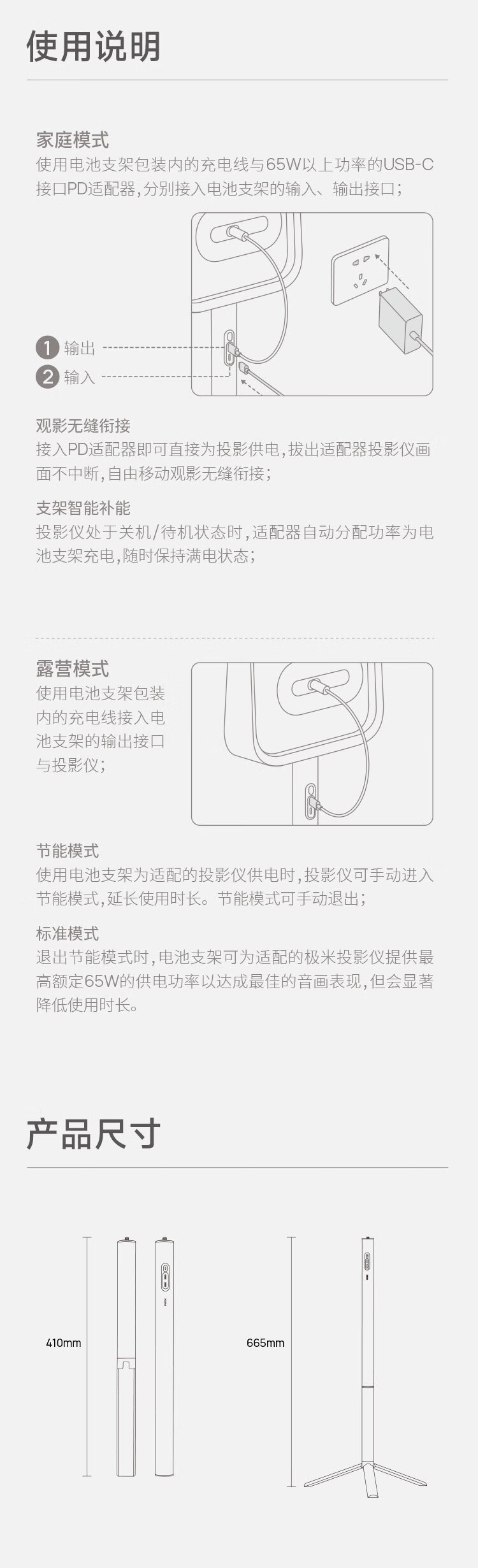 极米电池支架 (专属 Z6X 第五代)创新二合一 20000mAh大容量 自由移动不断电