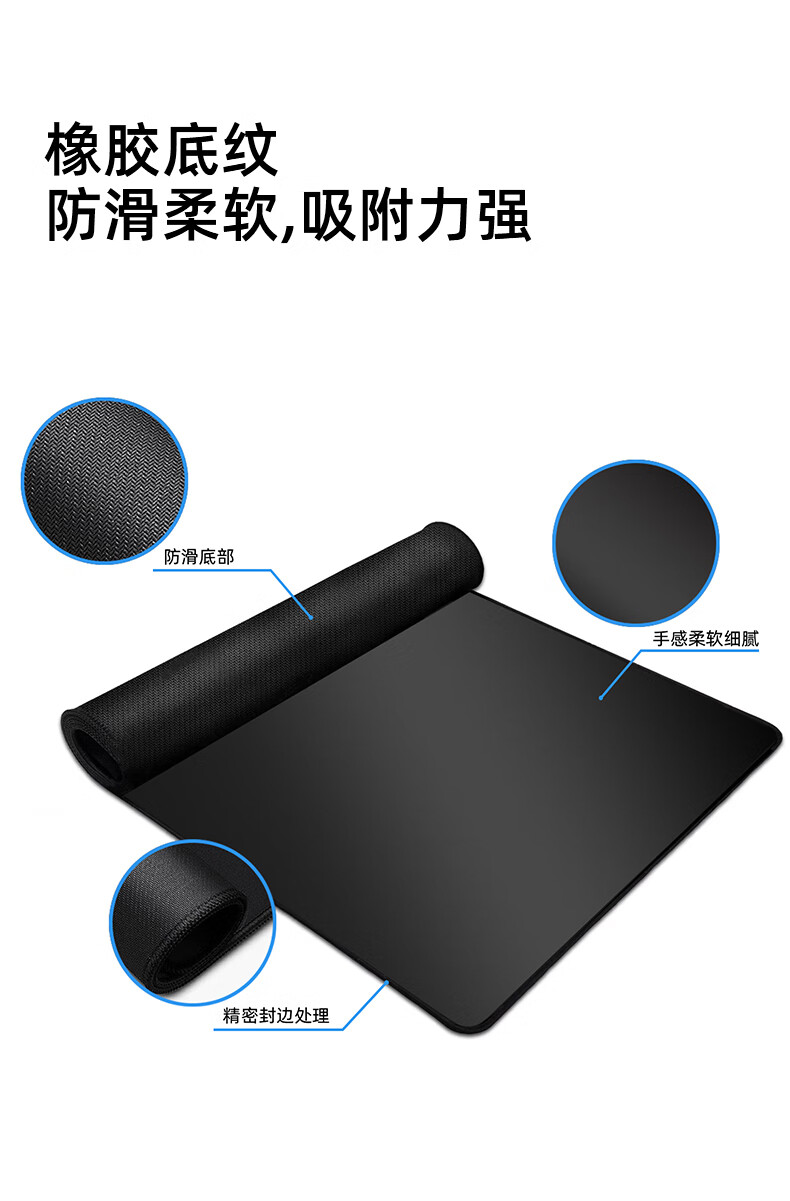 嘉速鼠标垫电脑桌垫 电竞笔记本电脑鼠标垫电竞游戏鼠标垫大号桌垫 精密锁边游戏桌垫 300x600mm 黑色