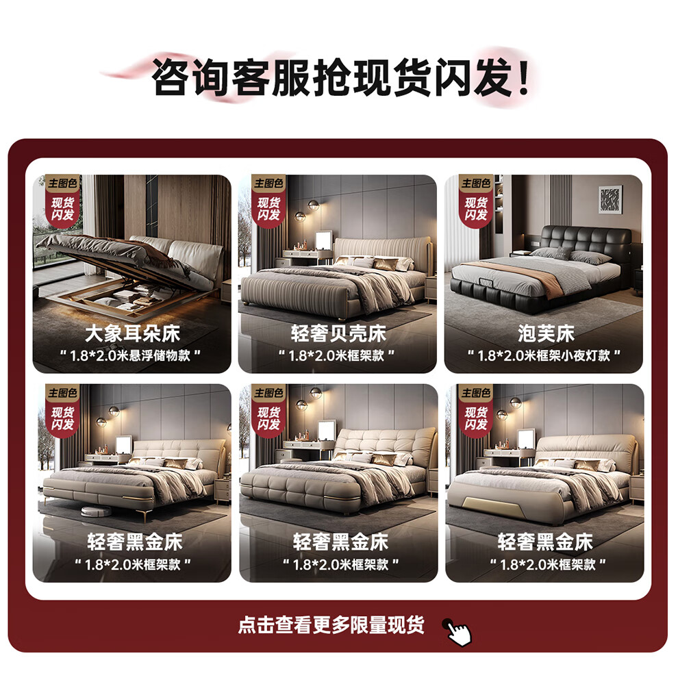 法蒂玛2025新款高级感现代简约轻奢高靠背薄床头钢琴键主卧真皮大床 单床 1.8*2米框架床【原创专利】