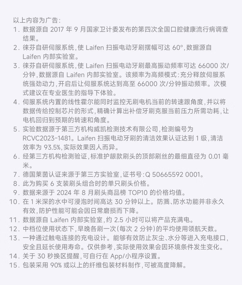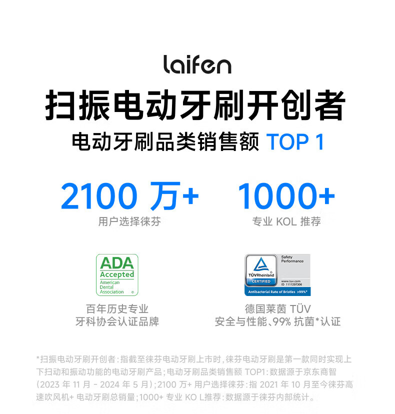 laifen徕芬扫振电动牙刷 莱芬深度清洁护龈成人牙刷 大摆幅洁牙更全面 ABS紫色