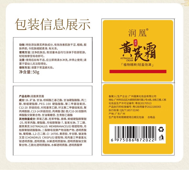 黄芪霜润凰 老牌子黄氏霜国货面霜滋润保湿补水男女通用改善暗沉肤色 【润凰】两盒人气装 润凰