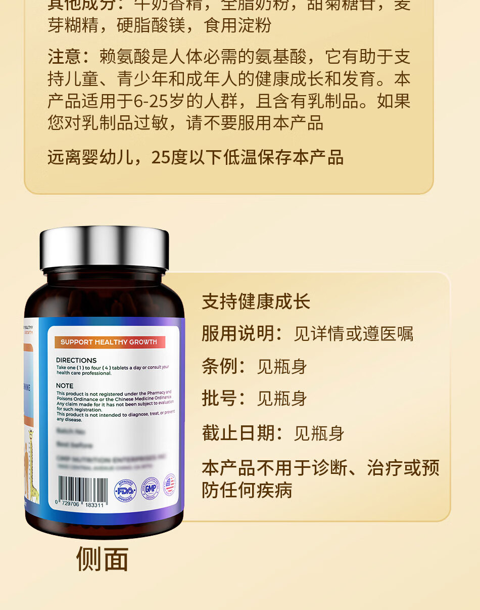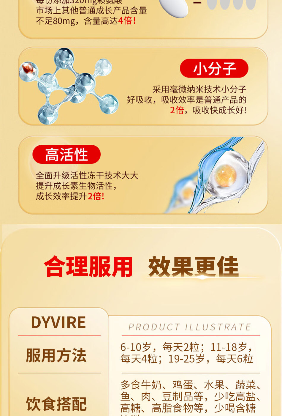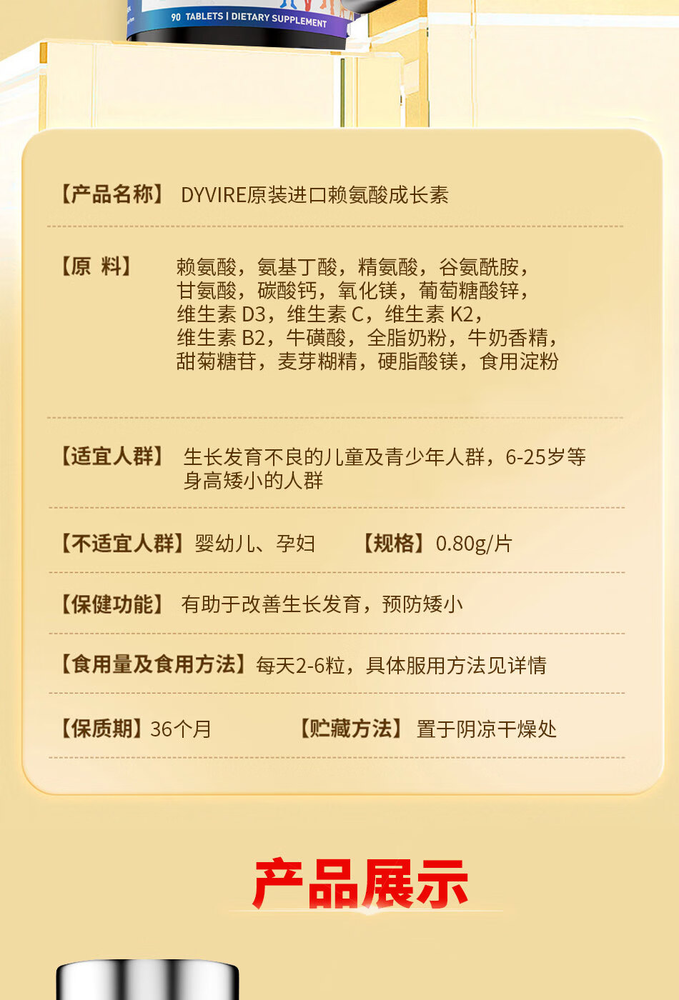 DYVIRE美国原装进口赖氨酸成长钙氨基丁酸γ生长助高 6-25岁人群适用 【90粒*1瓶 】【健康辅助长高 体验装】