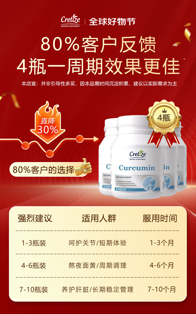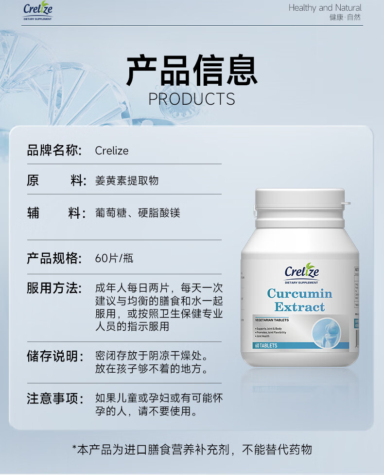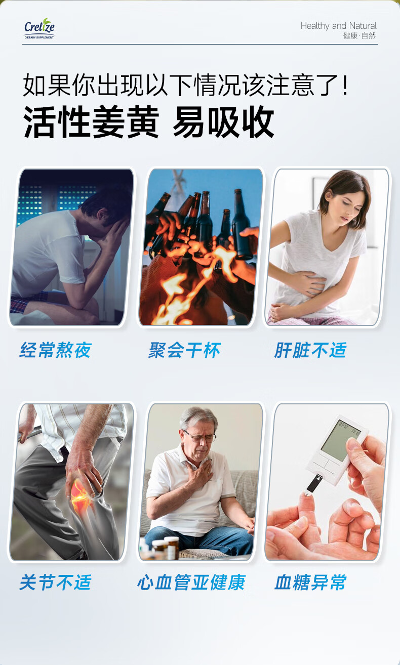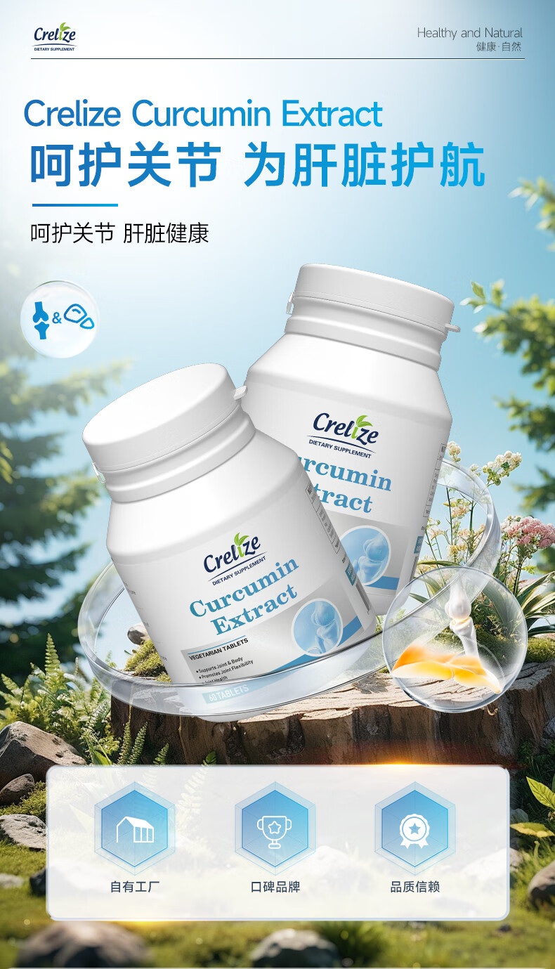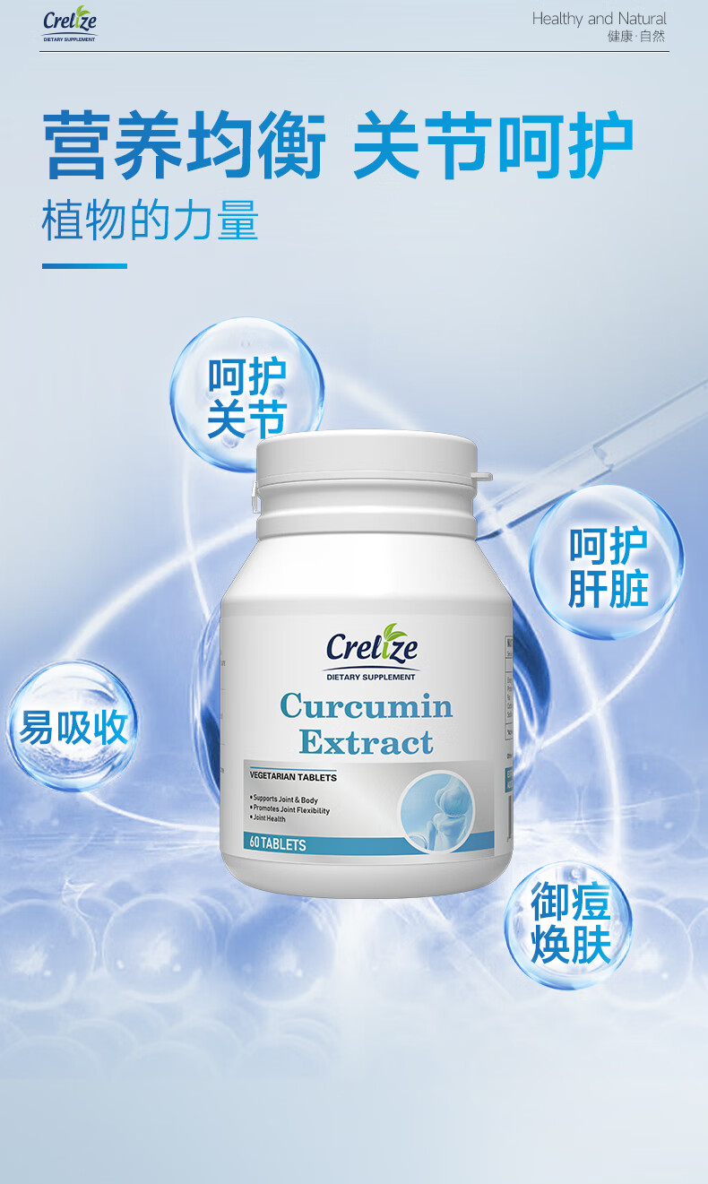 CRELIZE进口姜黄素片植物萃取养肝护肝肠胃加班熬夜常备 一瓶
