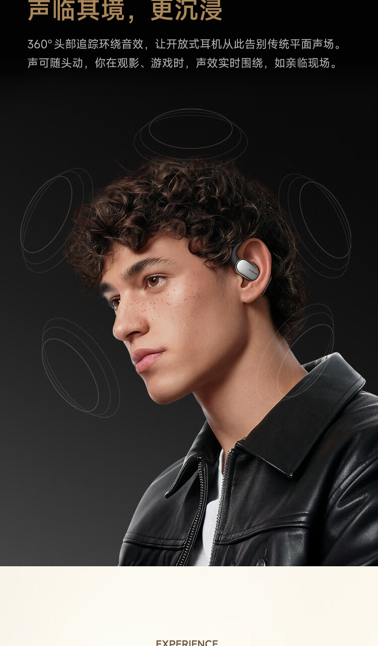 誉沐【顶配双喇叭|音质0差评】挂耳式开放不入耳无线骨传导运动蓝牙耳机长续航高音质半入耳降噪跑步 高雅黑|4麦高清通话-60h续航
