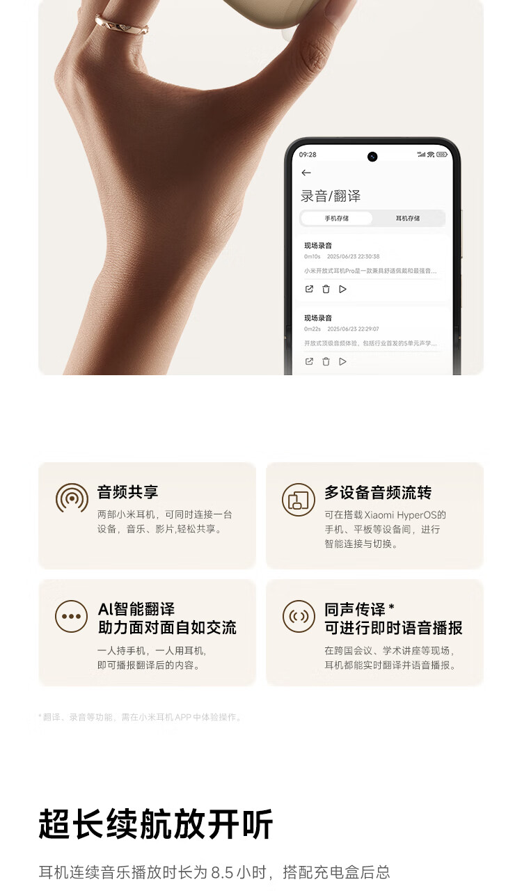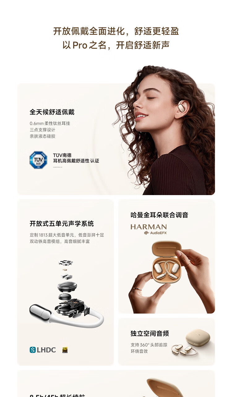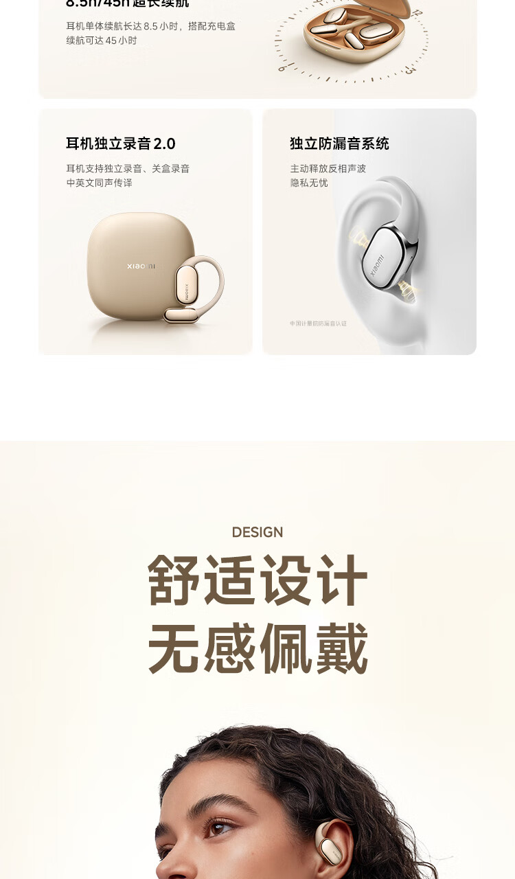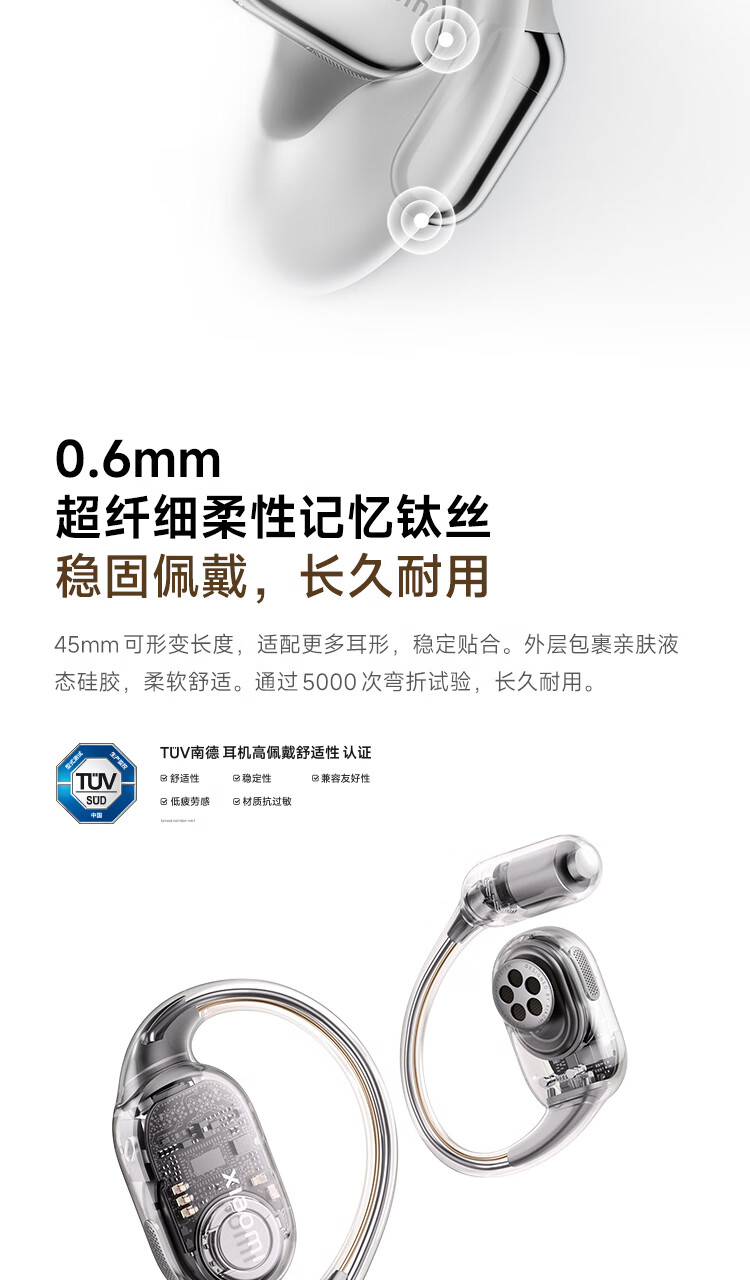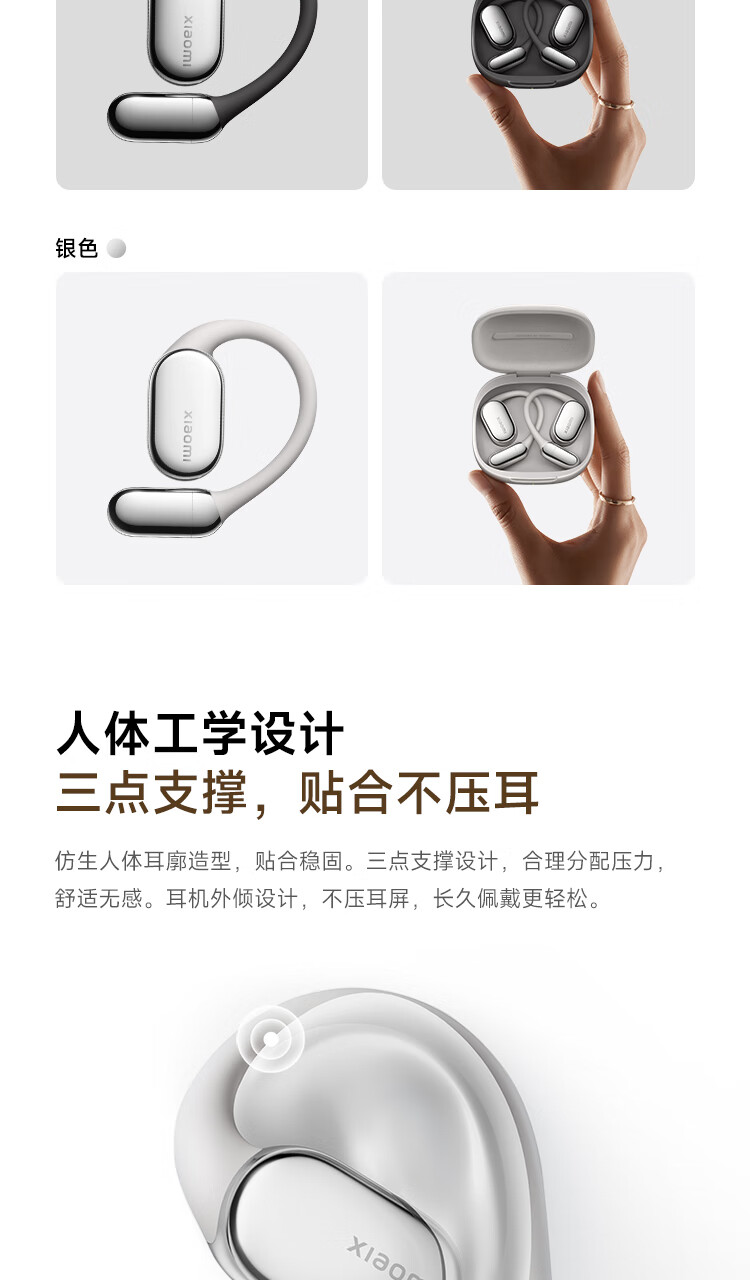 小米(MI)Xiaomi开放式耳机Pro耳挂式5单元无感佩戴蓝牙耳机 适用于安卓苹果手机 银色