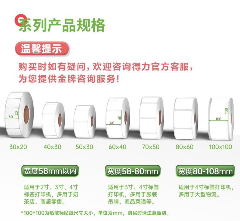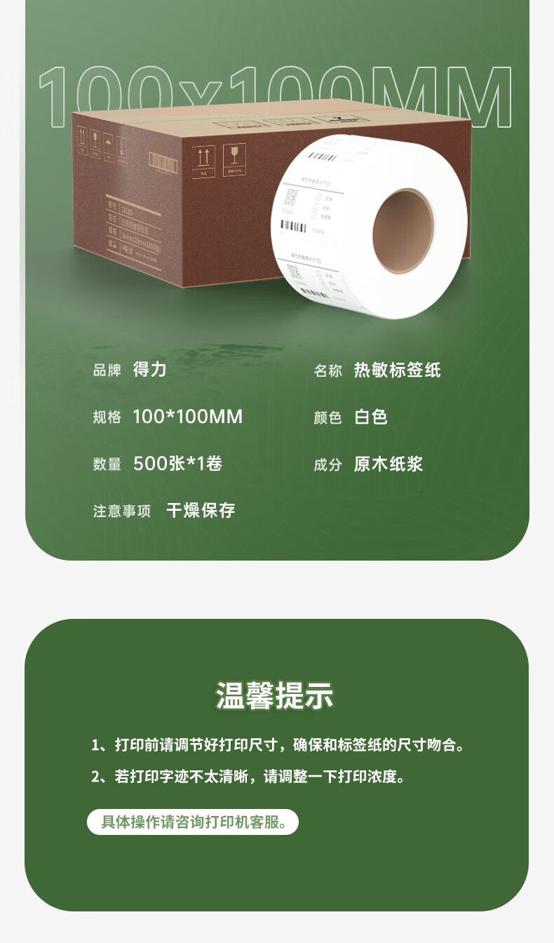得力(deli)100*100mm 500张*1卷 珊瑚海三防热敏标签纸 快递面单不干胶打印纸12001【适配4寸标签机888B等】