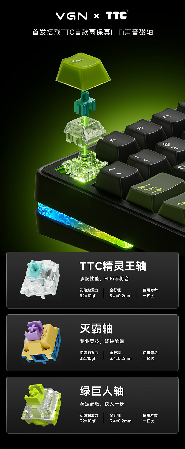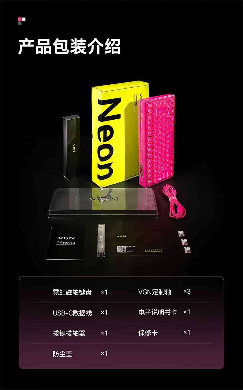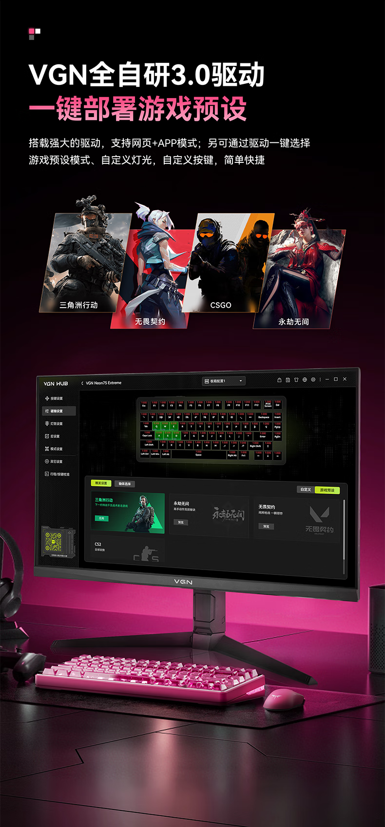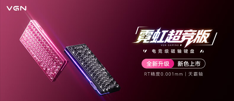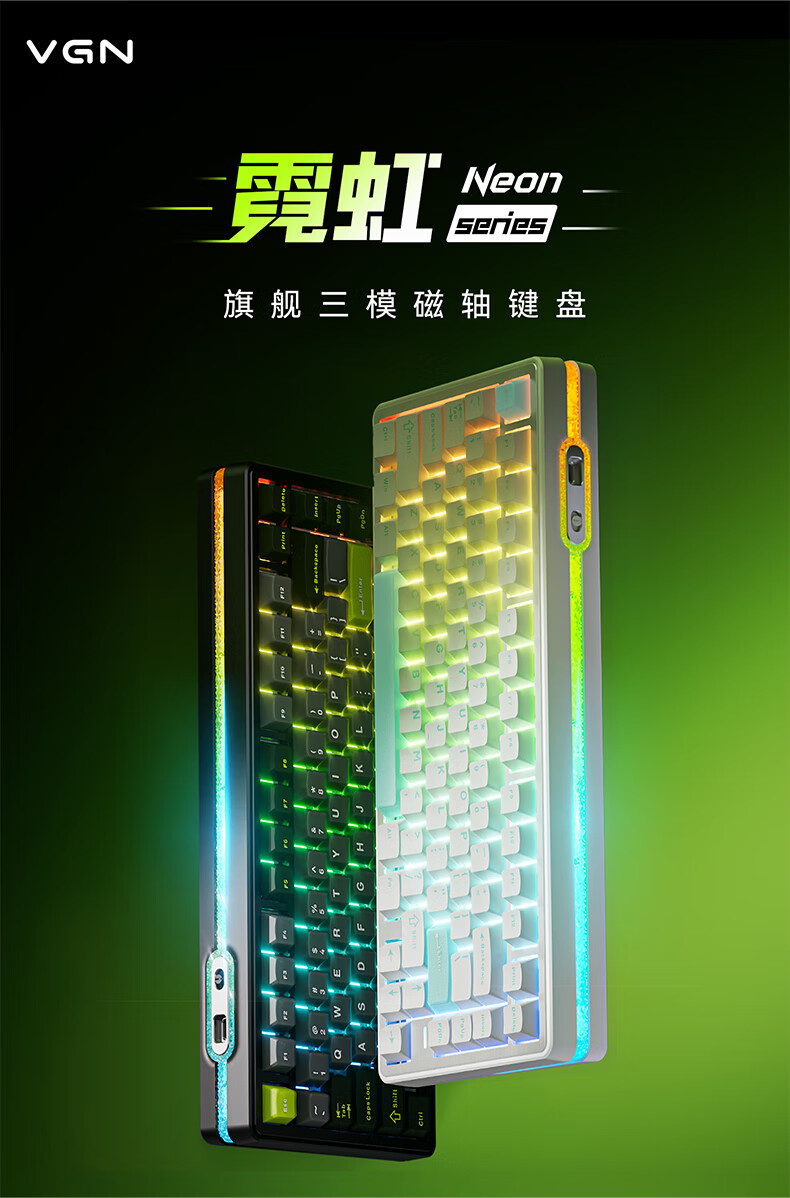 VGN霓虹磁轴键盘超竞版 75电竞客制化Gasket全键热插拔RGB无畏契约 超低延迟游戏麻将音水冷灯带 霓虹【He+】 TTC精灵王轴 有线 精灵白