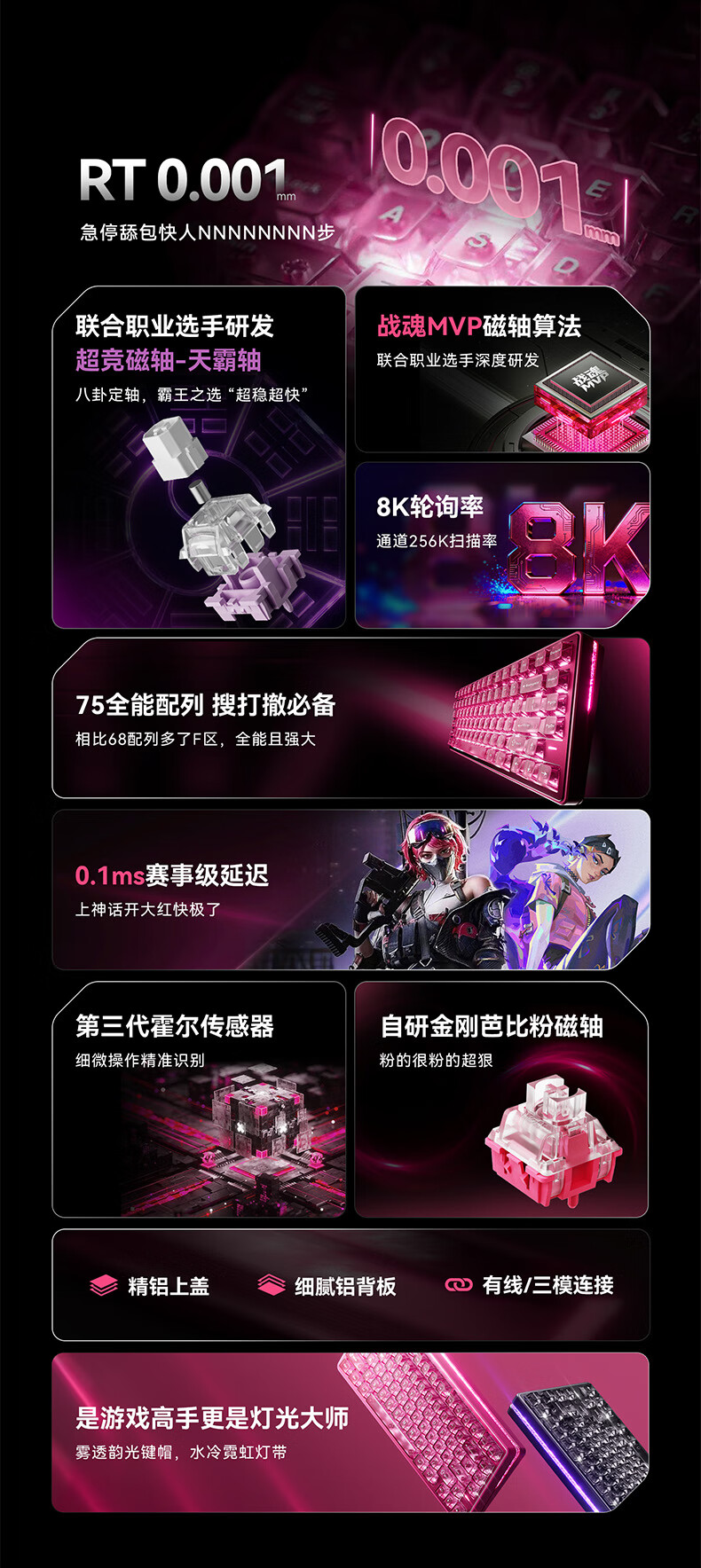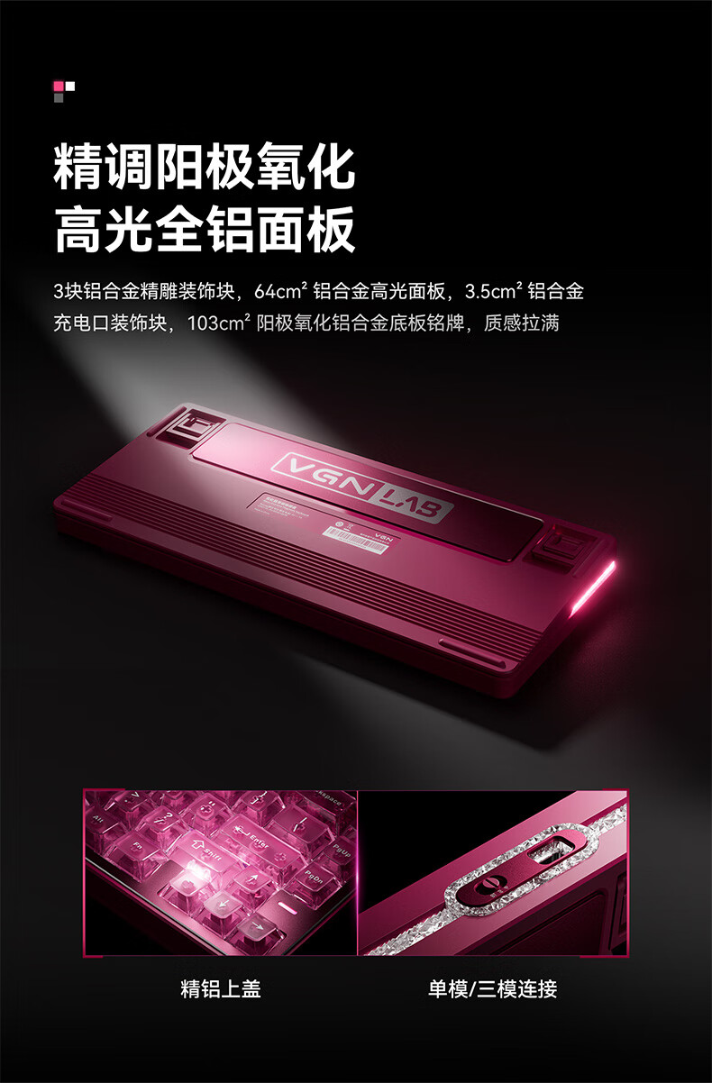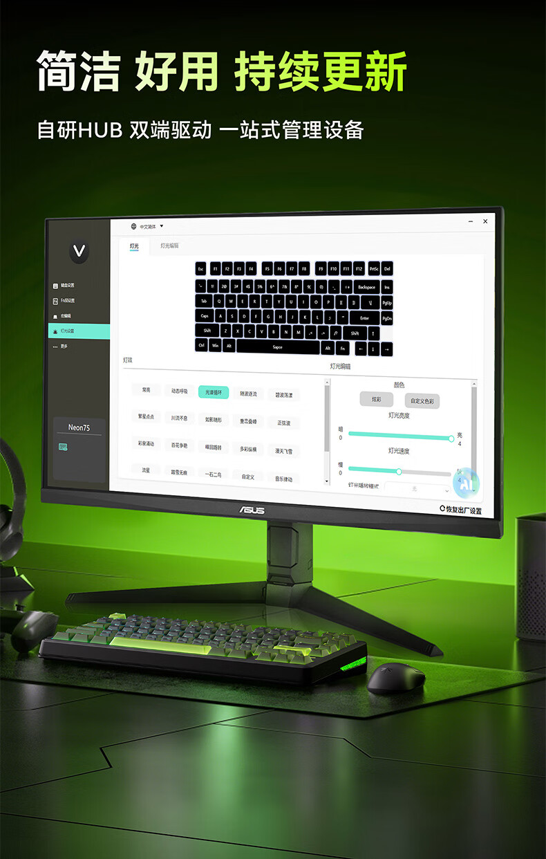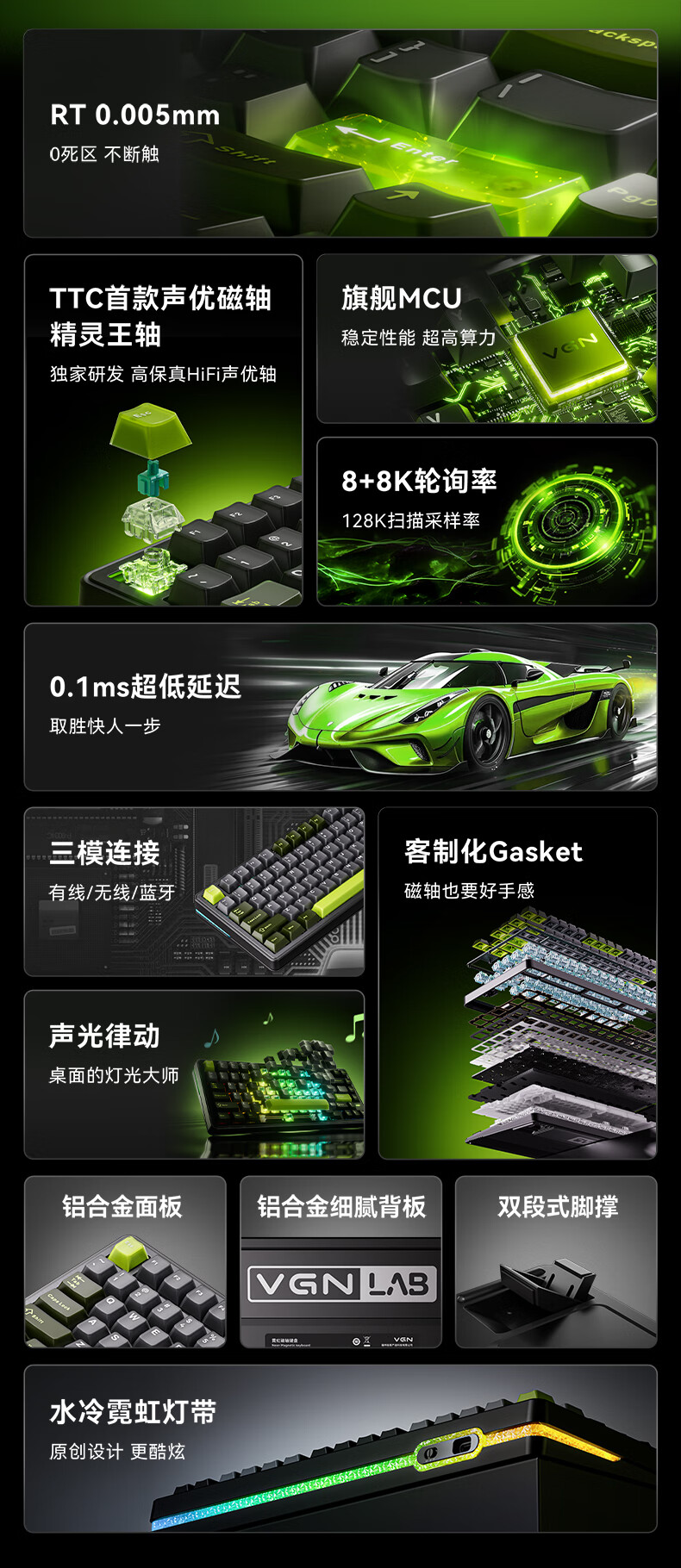 VGN霓虹磁轴键盘超竞版 75电竞客制化Gasket全键热插拔RGB无畏契约 超低延迟游戏麻将音水冷灯带 霓虹【He+】 TTC精灵王轴 有线 精灵白