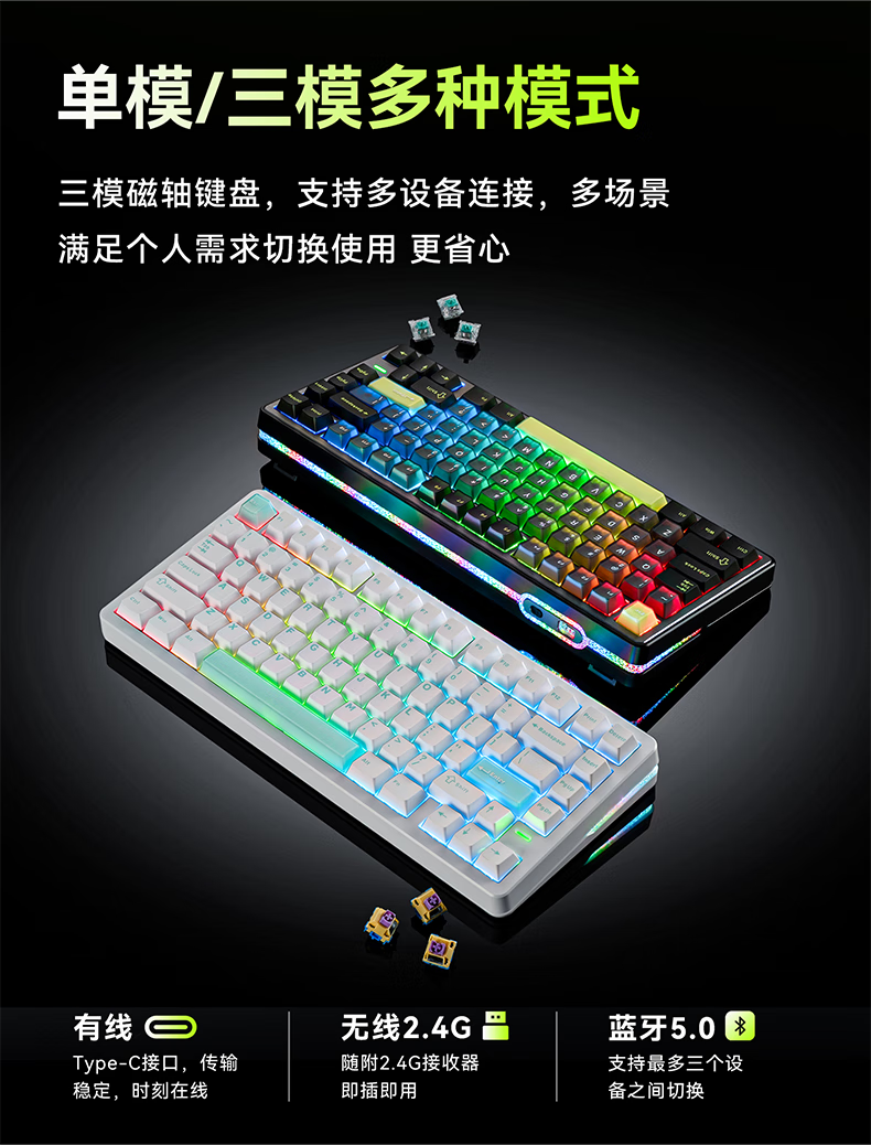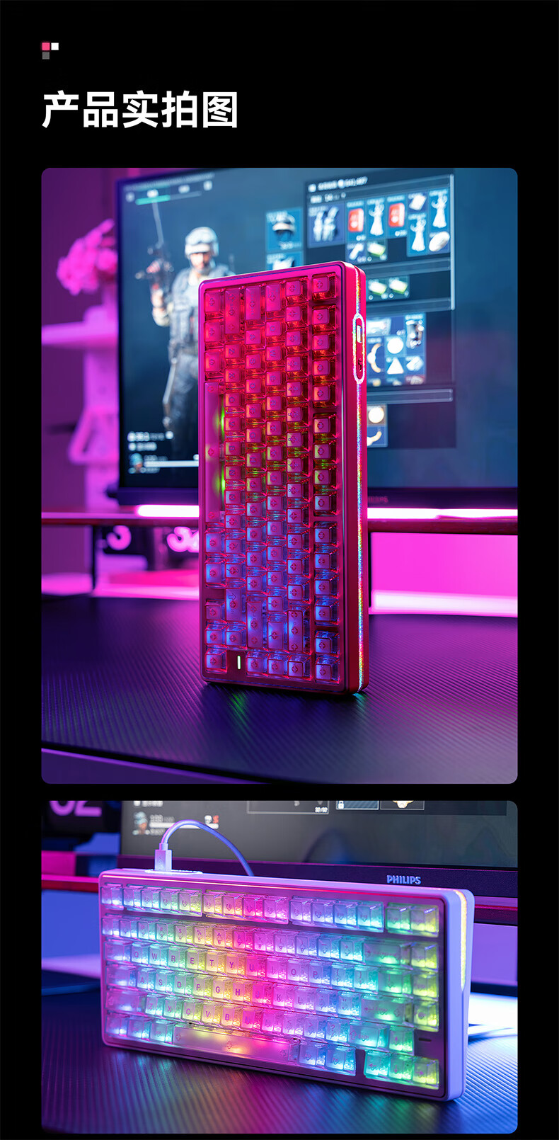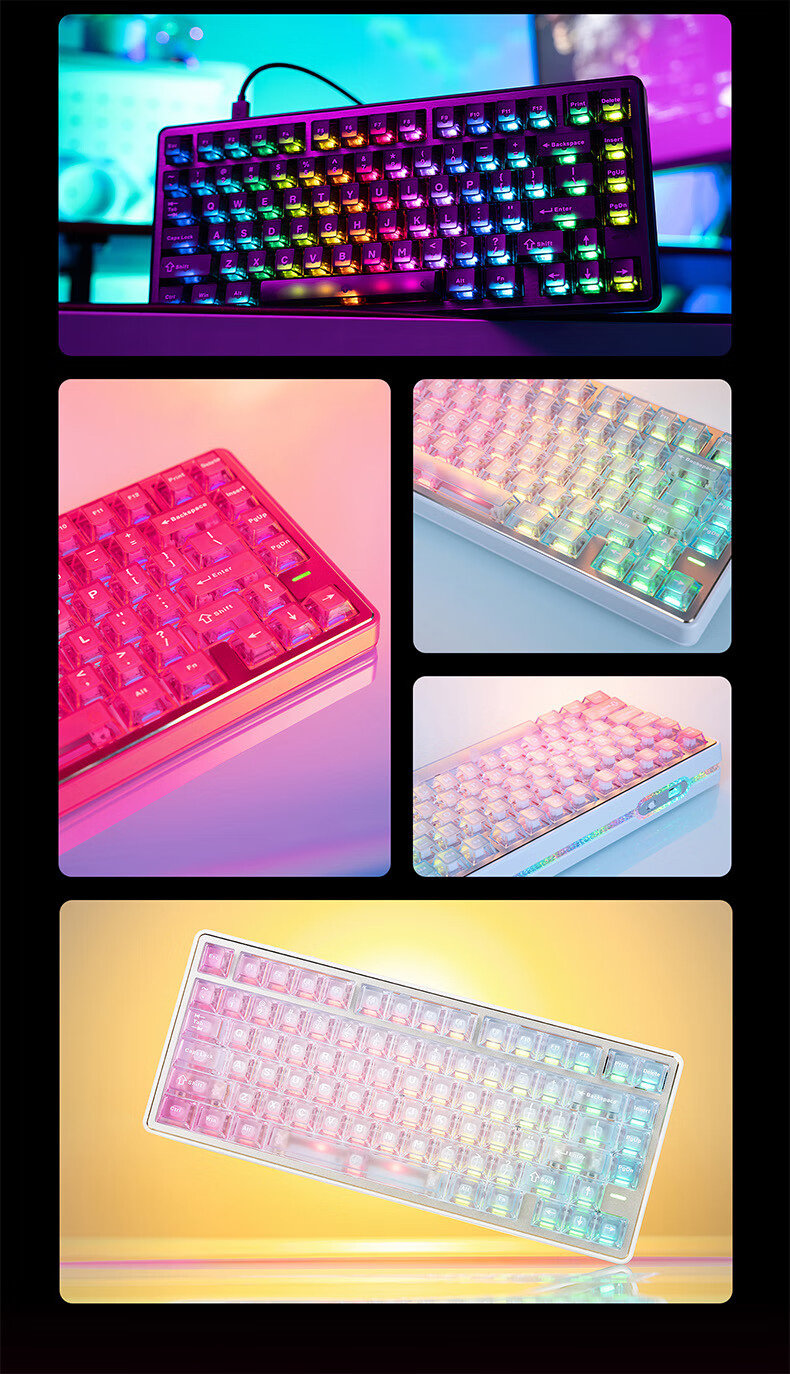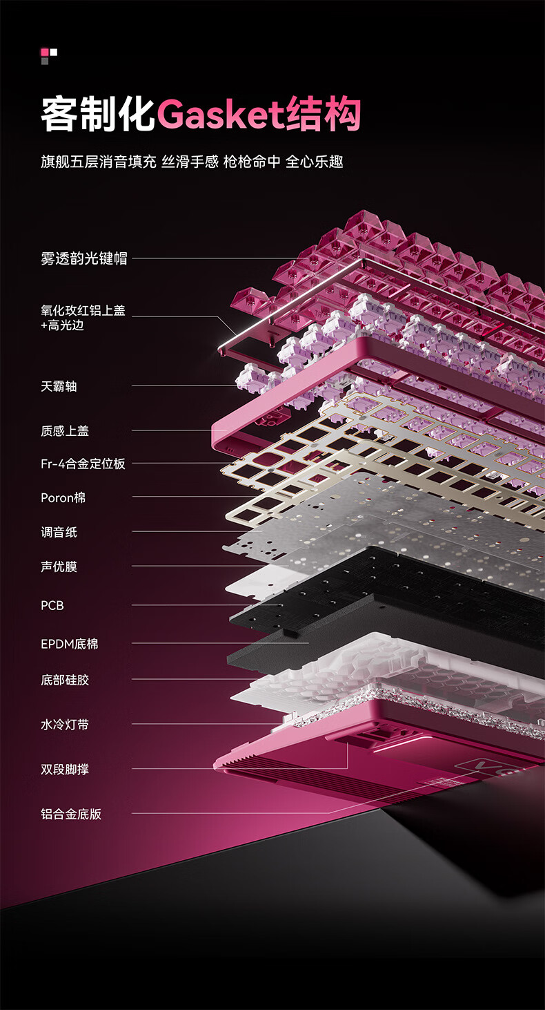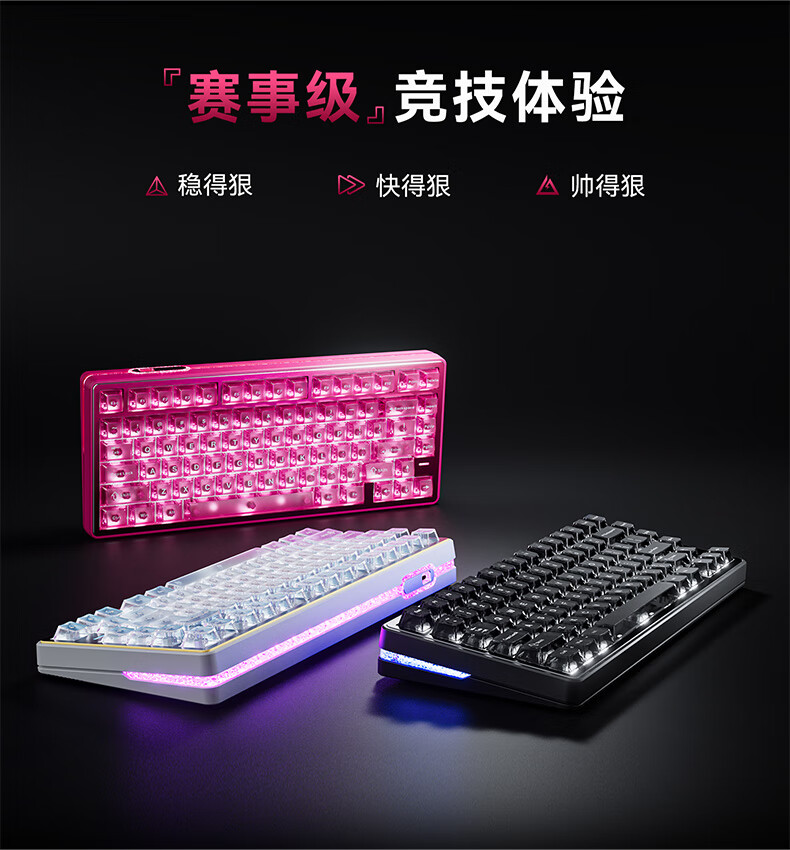 VGN霓虹磁轴键盘超竞版 75电竞客制化Gasket全键热插拔RGB无畏契约 超低延迟游戏麻将音水冷灯带 霓虹【He+】 TTC精灵王轴 有线 精灵白