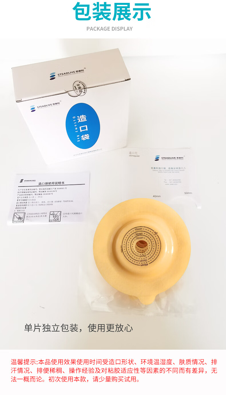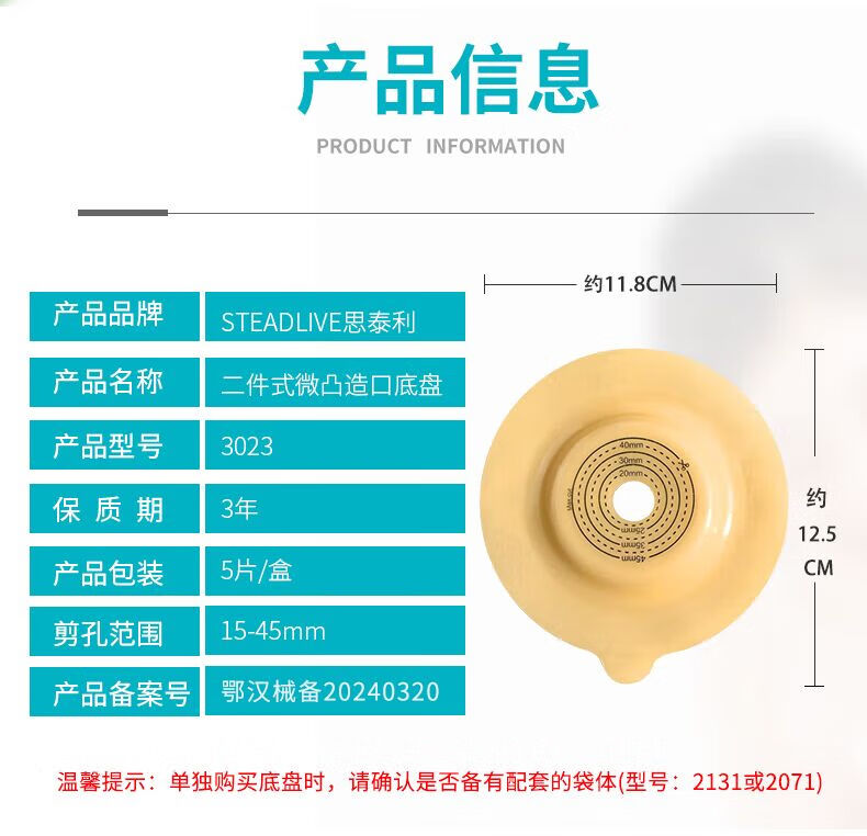 思泰利(STEADLIVE)3023 二件式凸面造口底盘45mm 造口袋护理用品5片/盒