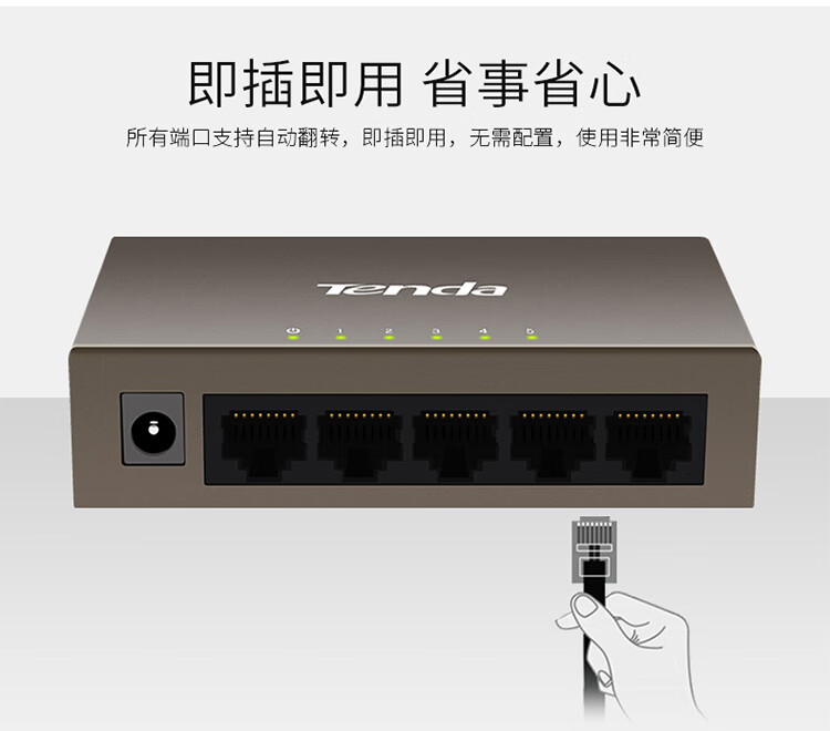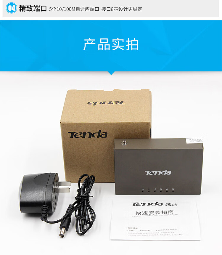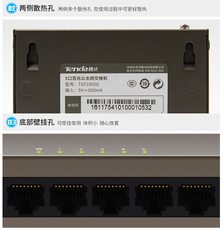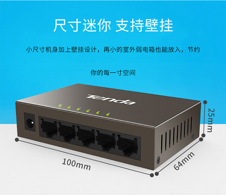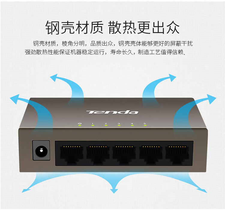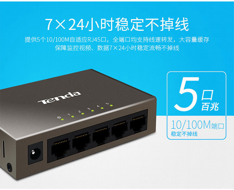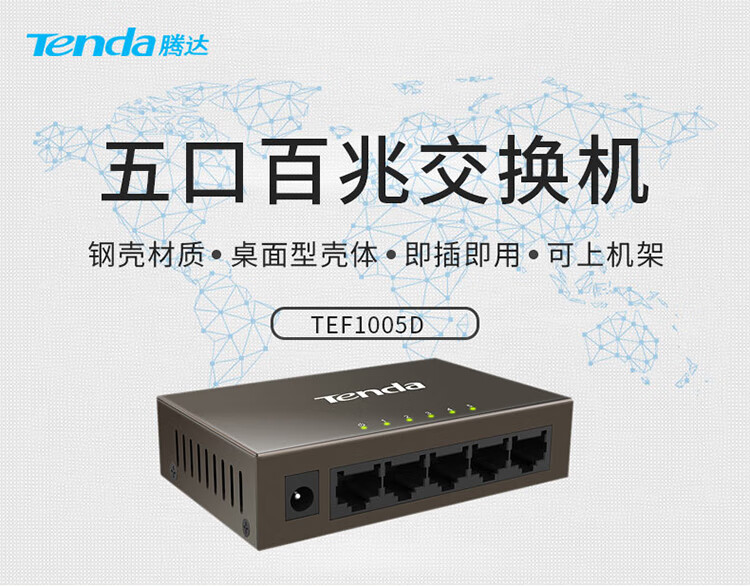 Tenda腾达5口百兆交换机 网线分线器一分四 4口监控工程企业家用网络交换器转换器分流器 钢壳TEF1005D