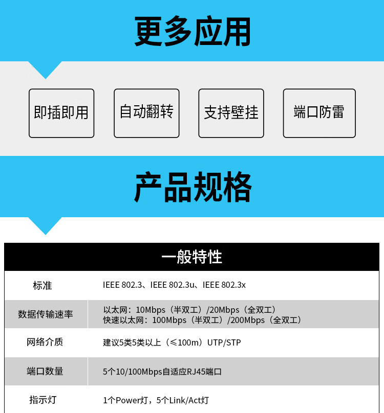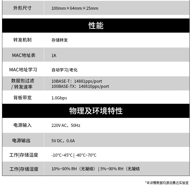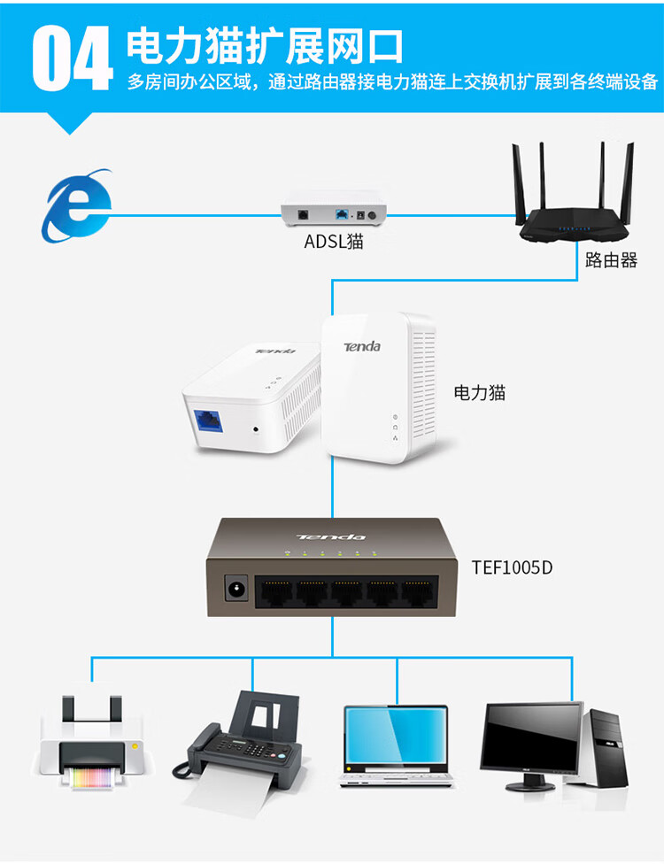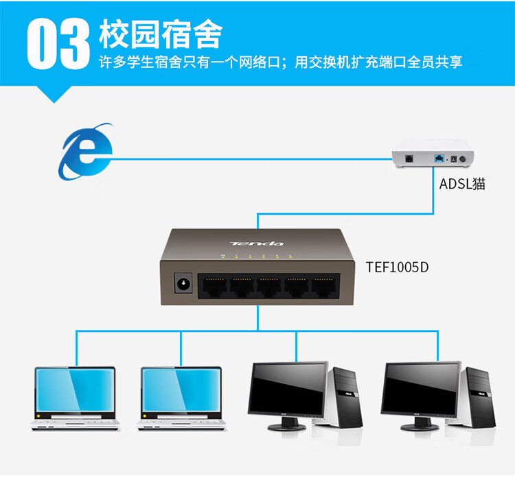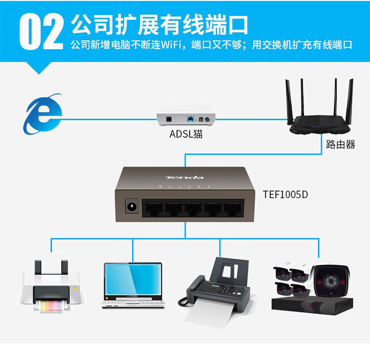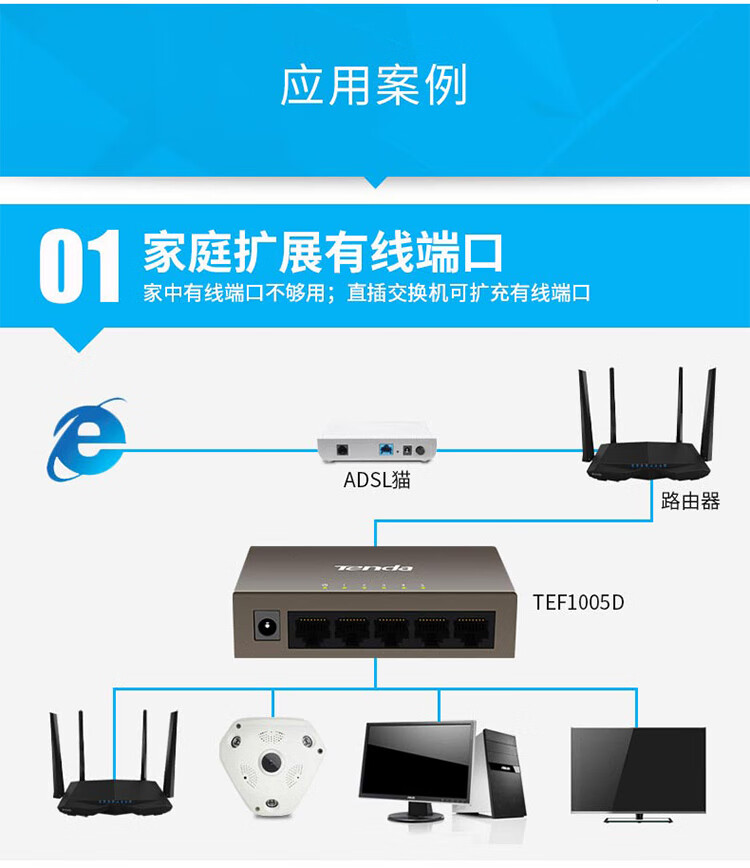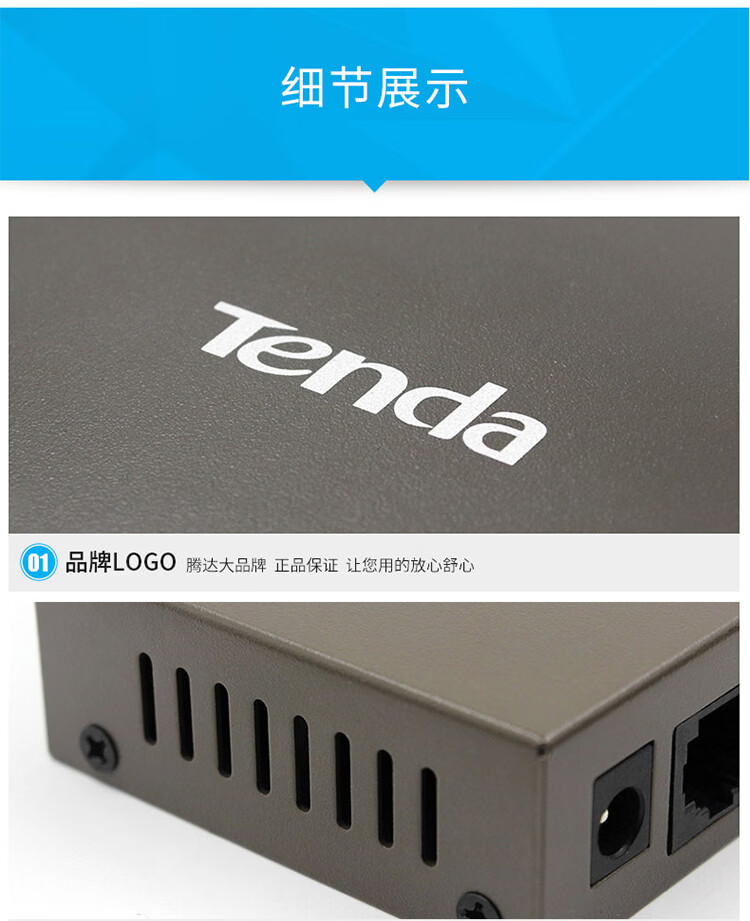 Tenda腾达5口百兆交换机 网线分线器一分四 4口监控工程企业家用网络交换器转换器分流器 钢壳TEF1005D