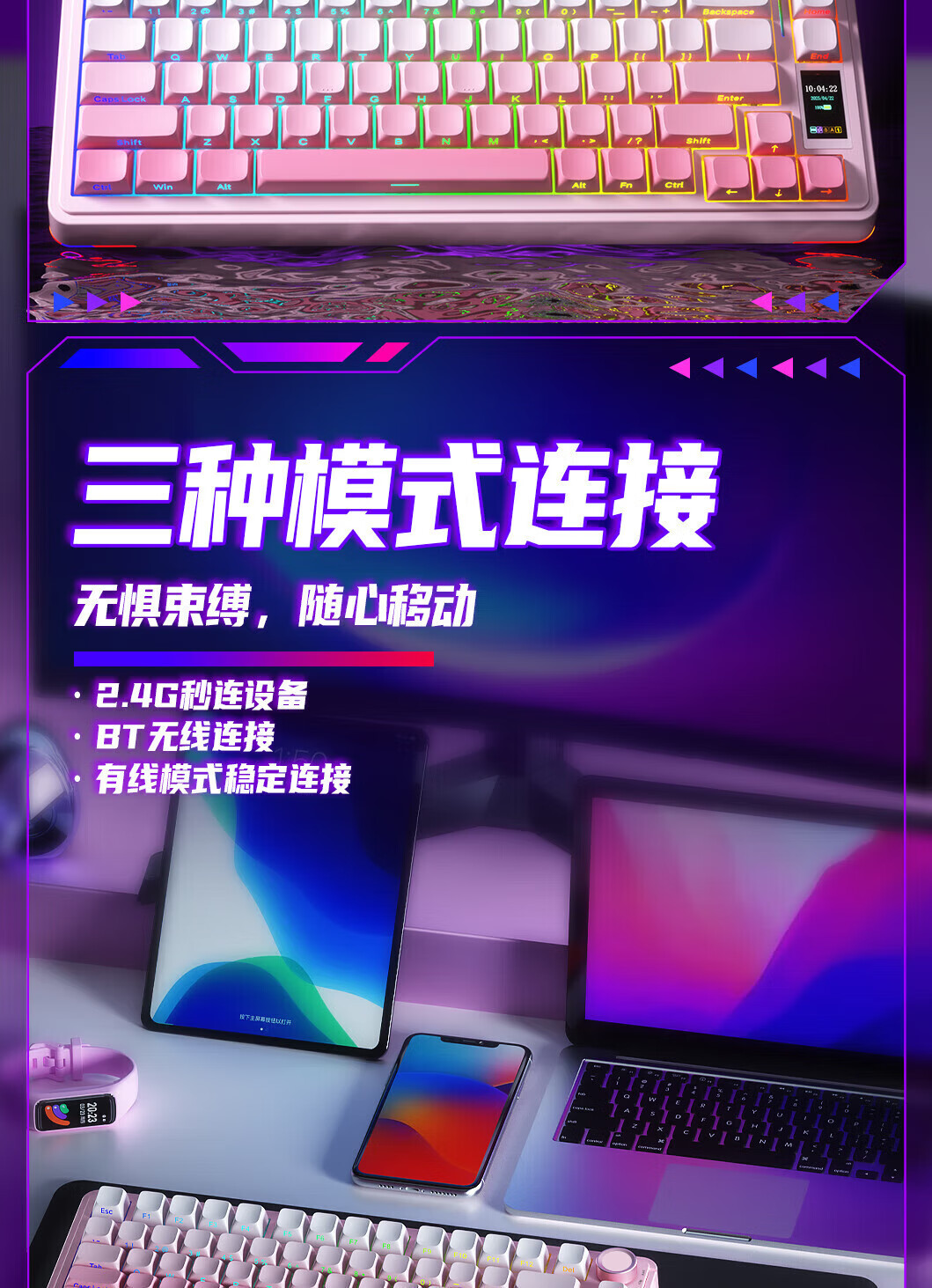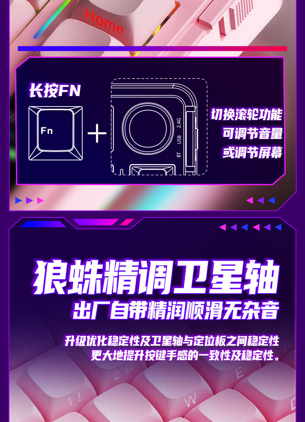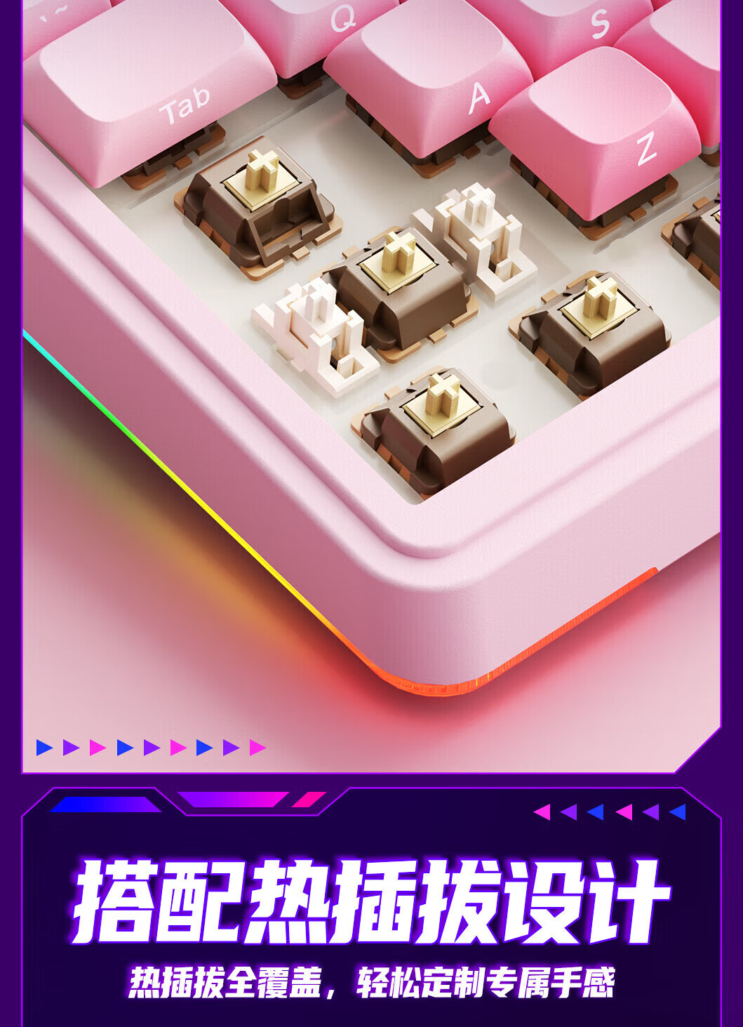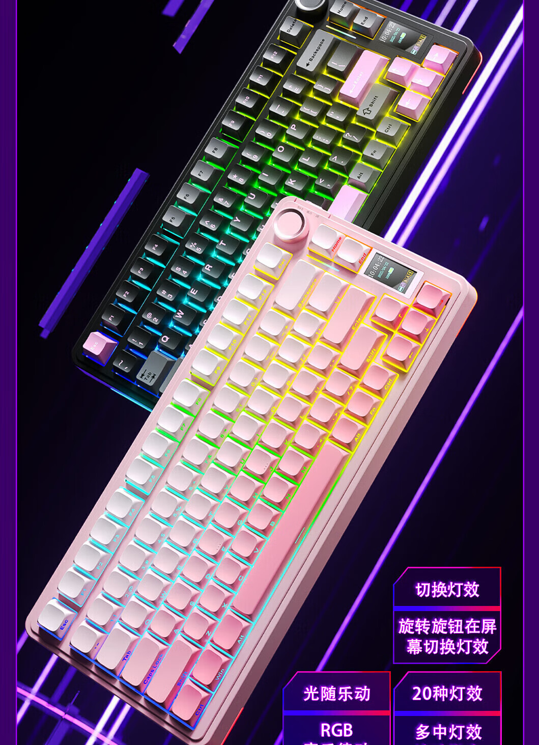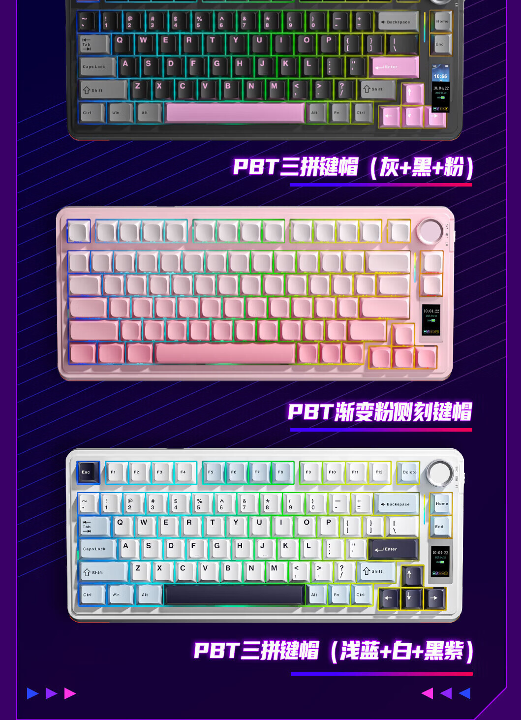 狼蛛(AULA)【顺丰】S75Pro三模机械键盘客制化等高线RGB灯光无线有线/2.4G/蓝牙连接gasket结构全键热插拔 S75Pro桃桃粉 焦糖拿铁轴V2