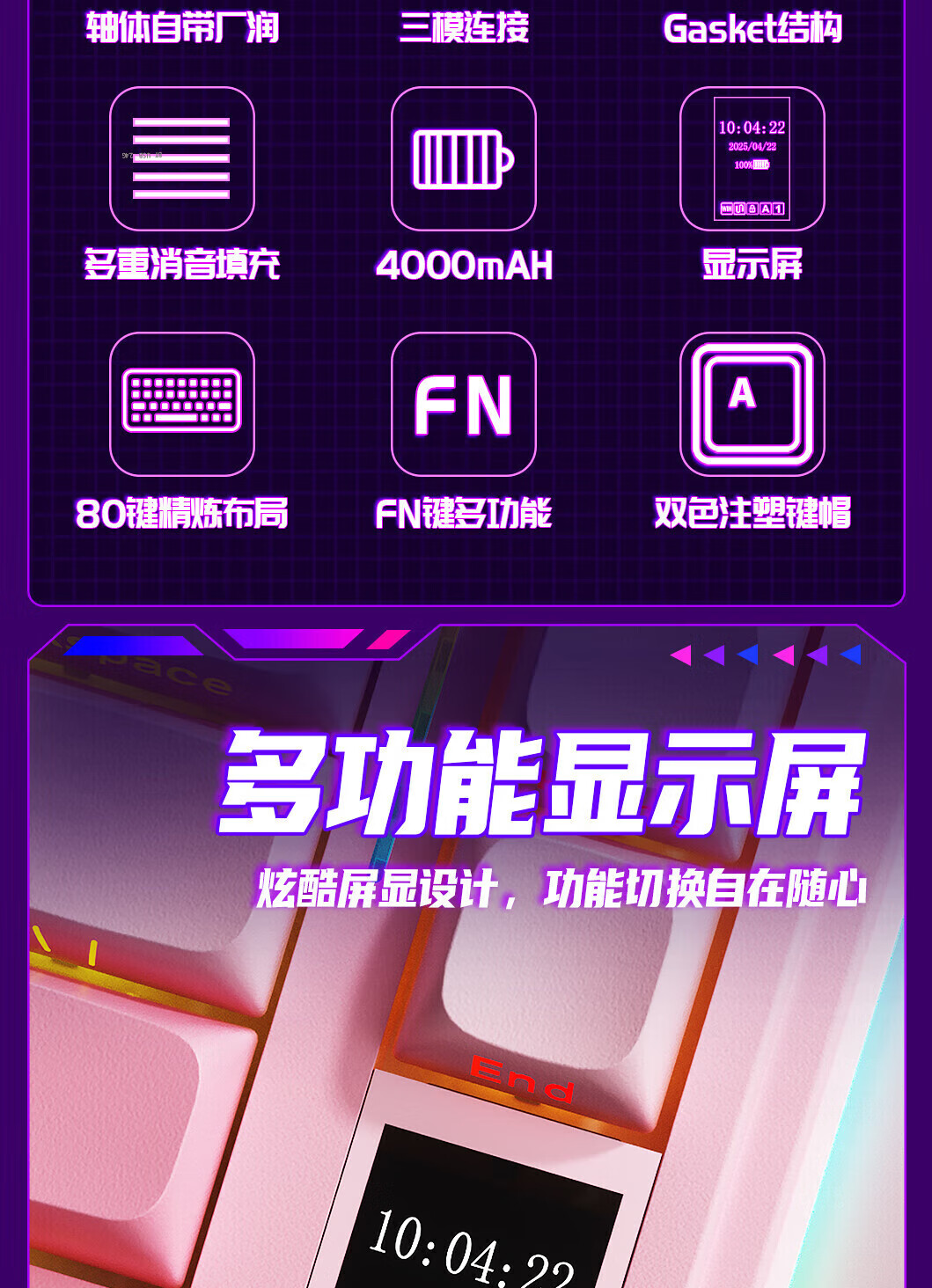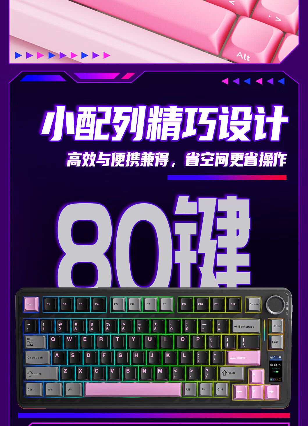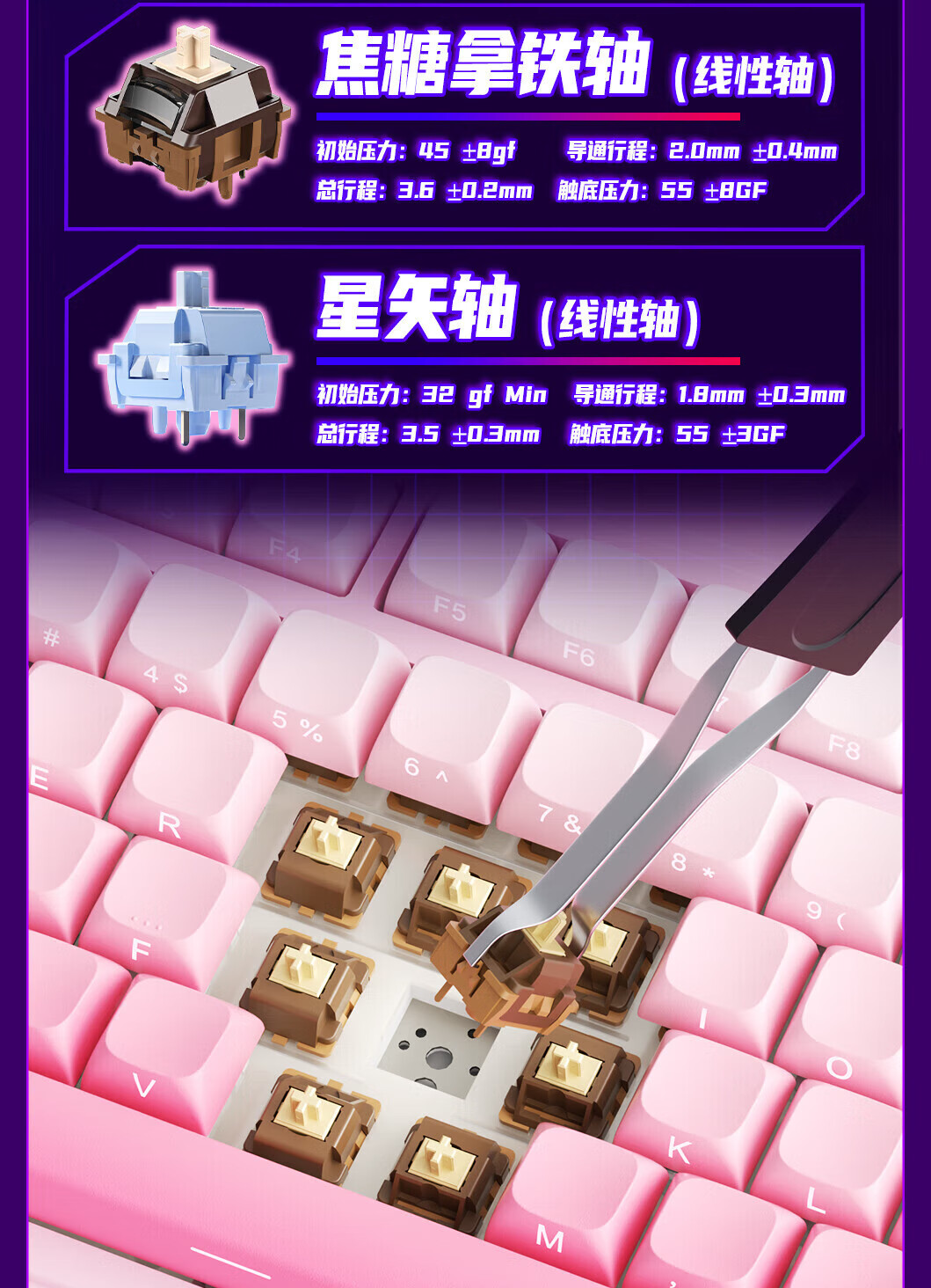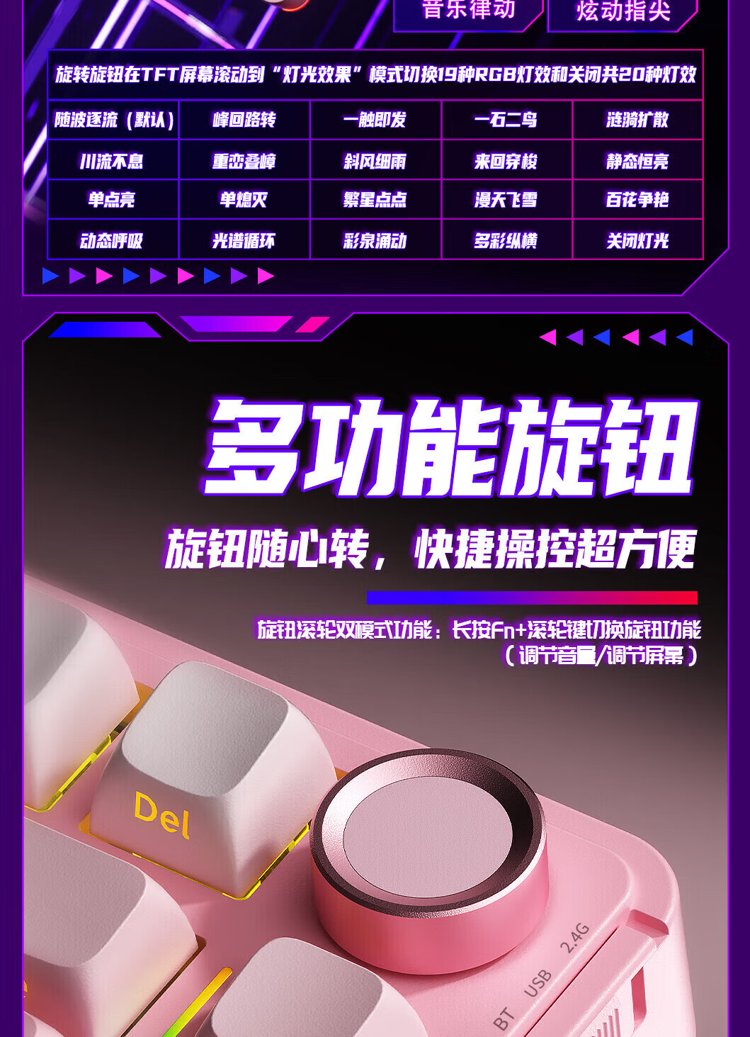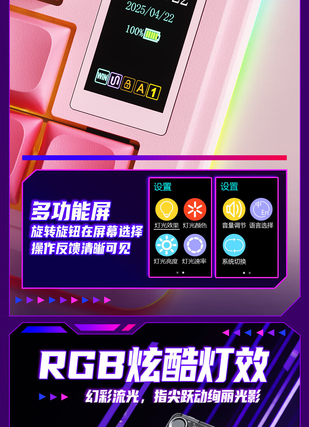 狼蛛(AULA)【顺丰】S75Pro三模机械键盘客制化等高线RGB灯光无线有线/2.4G/蓝牙连接gasket结构全键热插拔 S75Pro桃桃粉 焦糖拿铁轴V2
