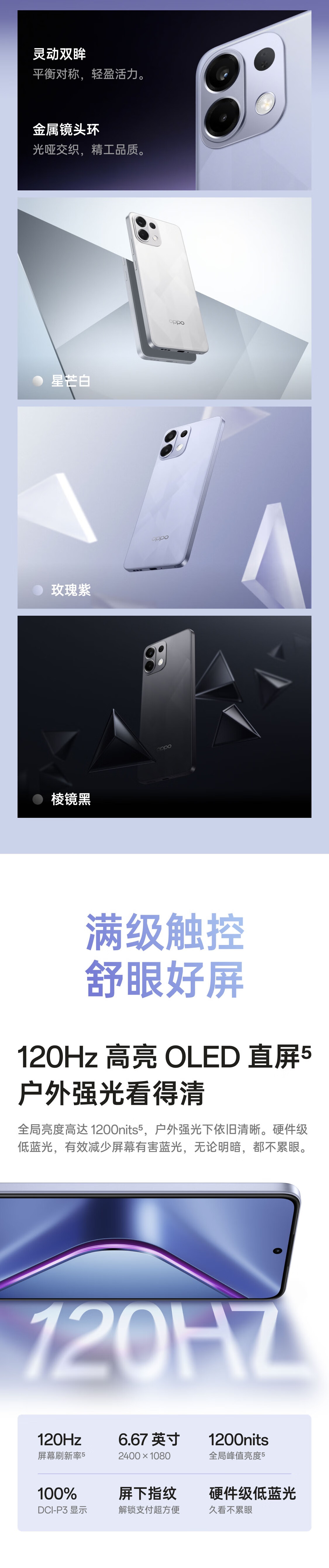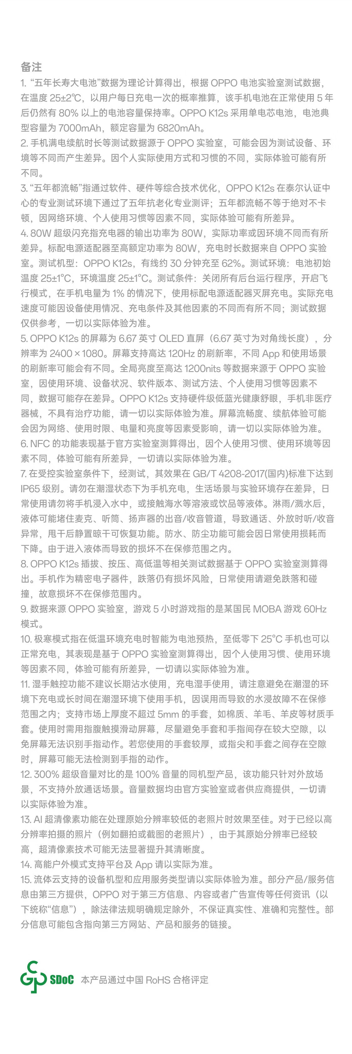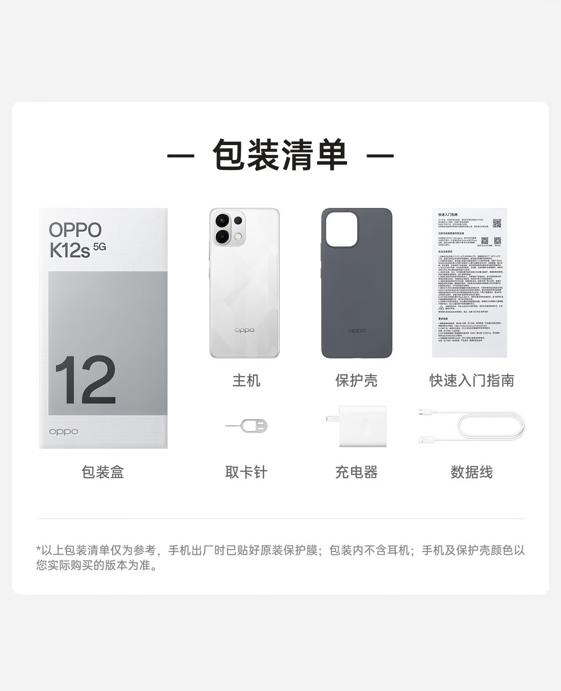 OPPO K12s 12GB+256GB 星芒白 7000mAh长寿大电池 80W超级闪充 120Hz 高亮 OLED直屏 红外遥控 5G手机