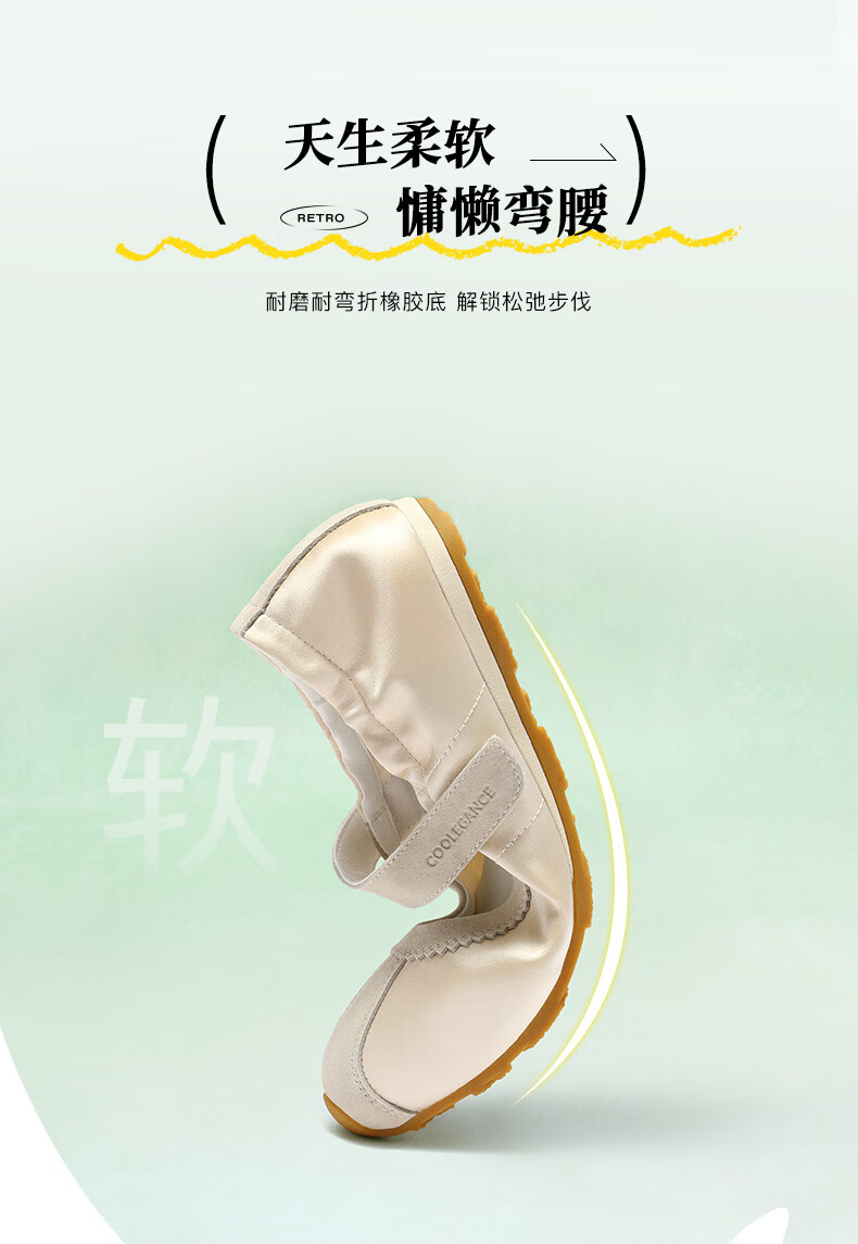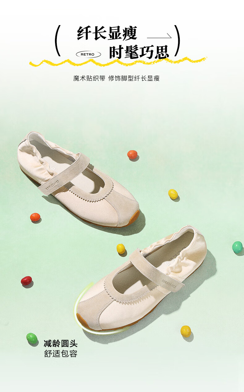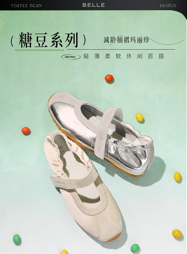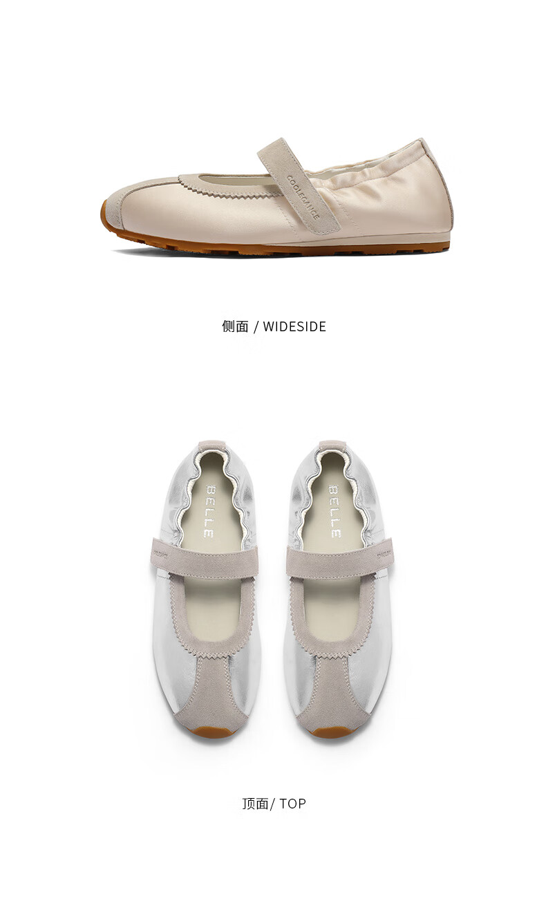 百丽(Belle)透气网面蕾风玛丽珍鞋女魔术贴舒适低跟休闲鞋B2624BQ5 杏色 36 (230mm)