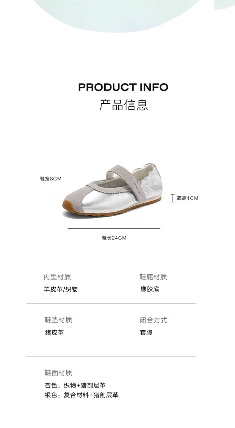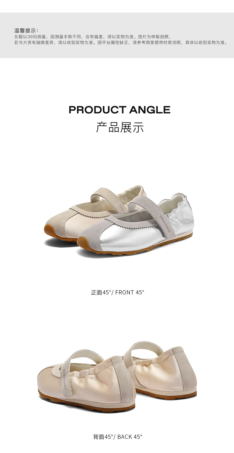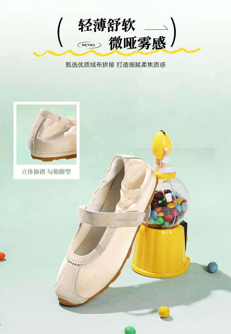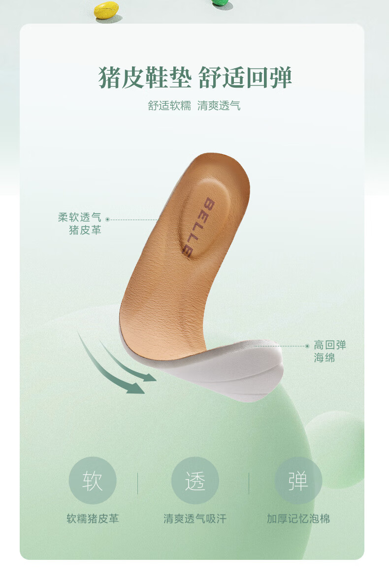 百丽(Belle)透气网面蕾风玛丽珍鞋女魔术贴舒适低跟休闲鞋B2624BQ5 杏色 36 (230mm)