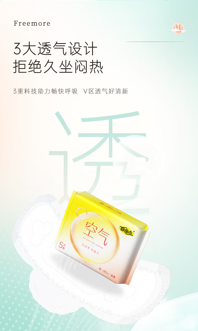 自由点空气卫生巾日夜用组合超薄透气姨妈巾【安心品质】 日夜用组合8包66片