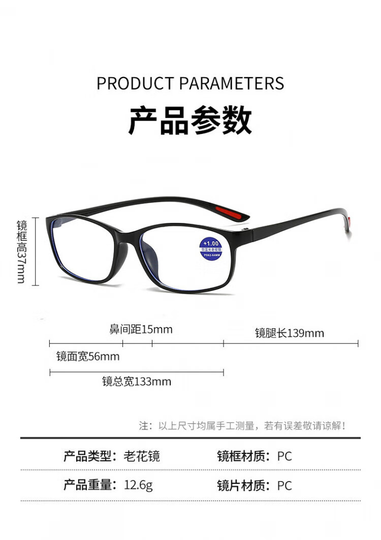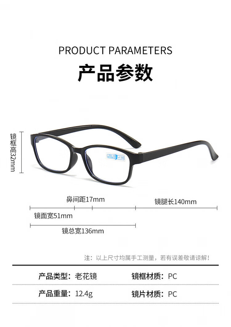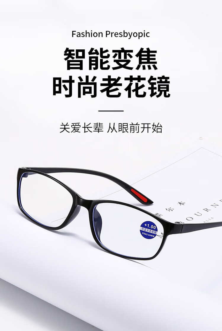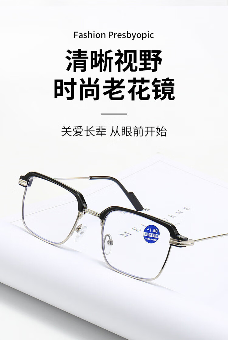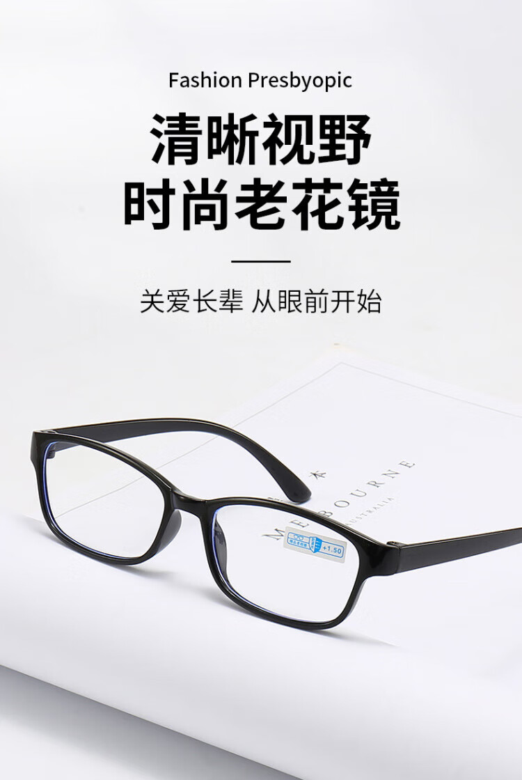 米奇啵啵老花眼镜防蓝光老花镜【可定制】超清超轻便度数精准老人男女通用 高清防蓝光老花镜 100°