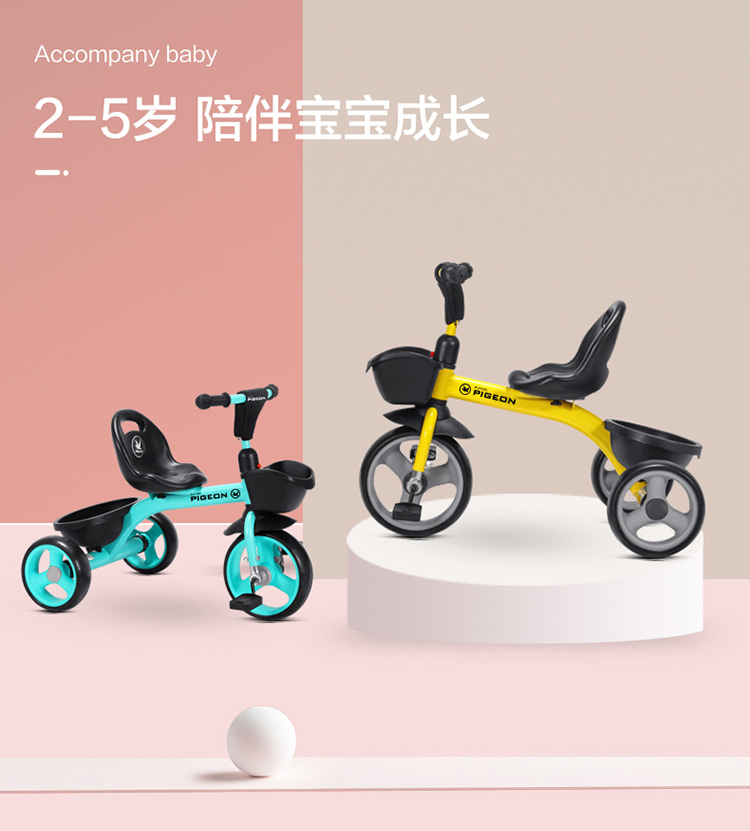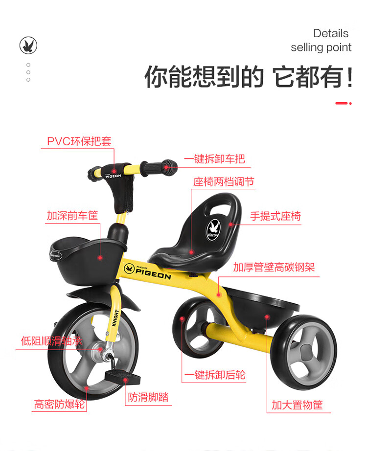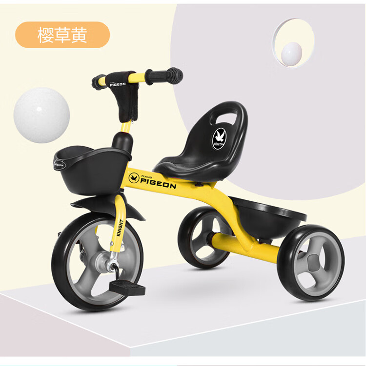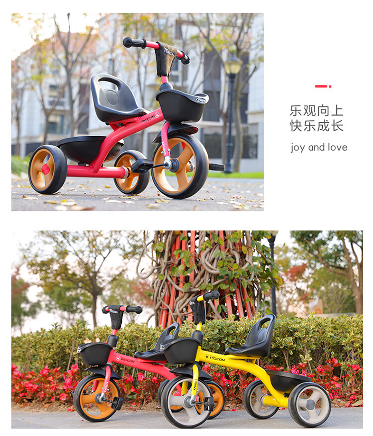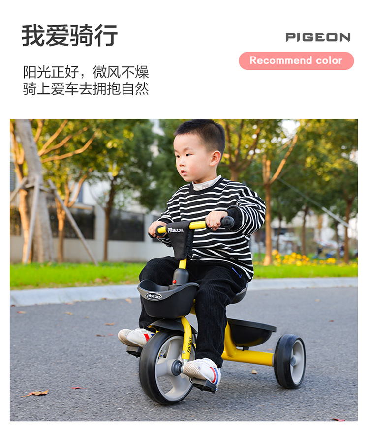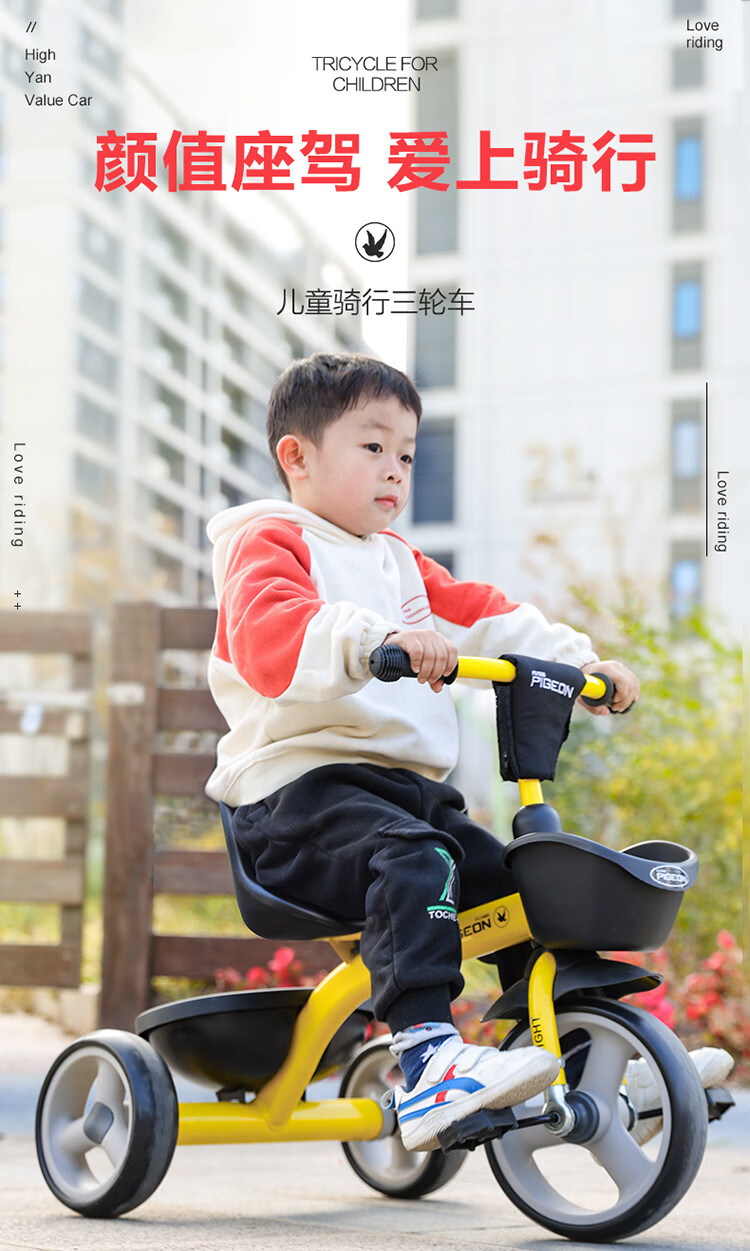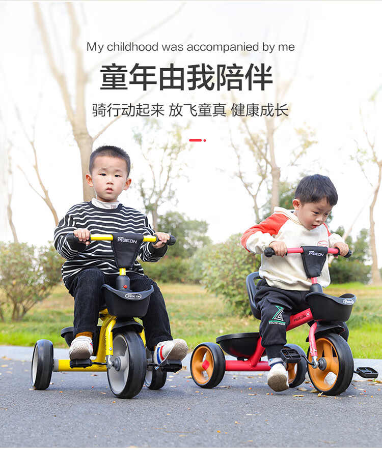 飞鸽(PIGEON)儿童三轮车幼儿脚踏车1-3岁宝宝手推车童车自行车可拆卸樱草黄