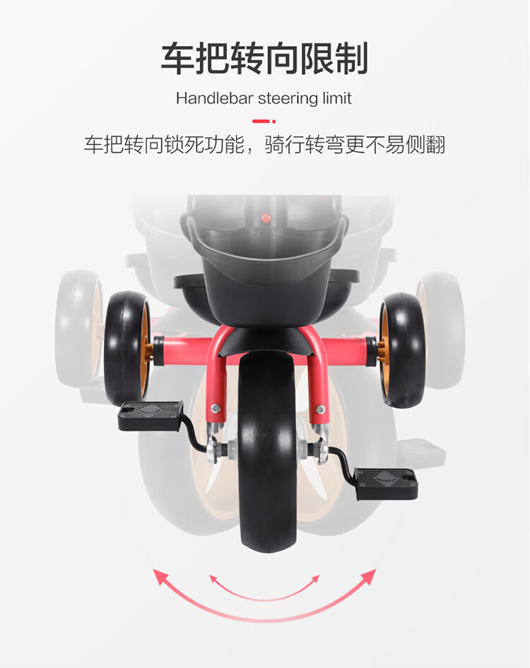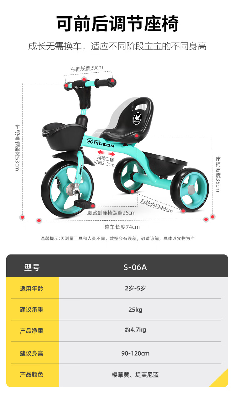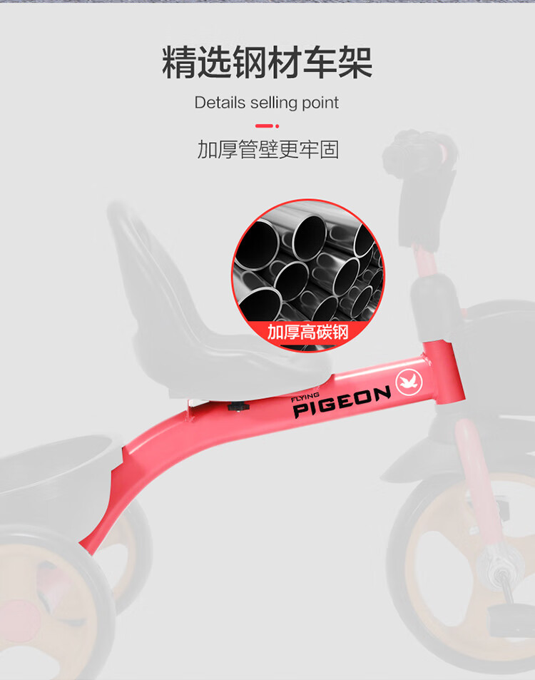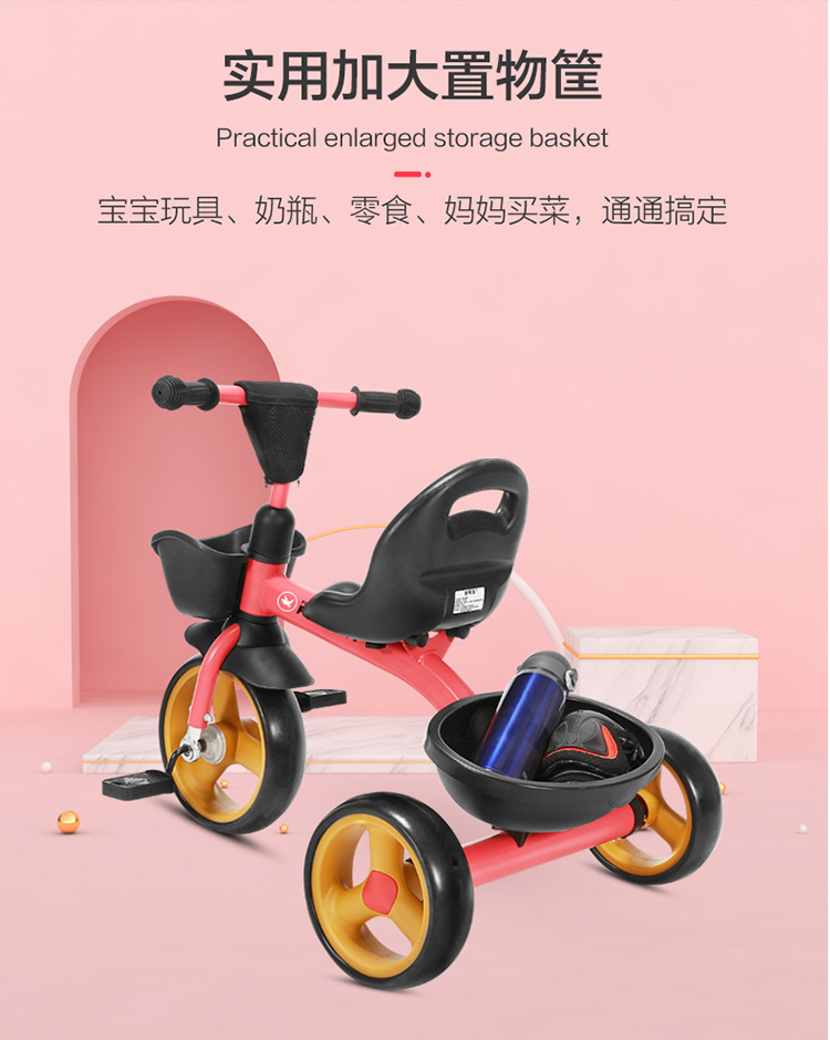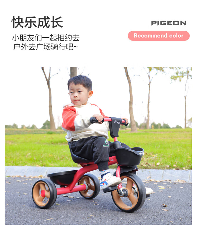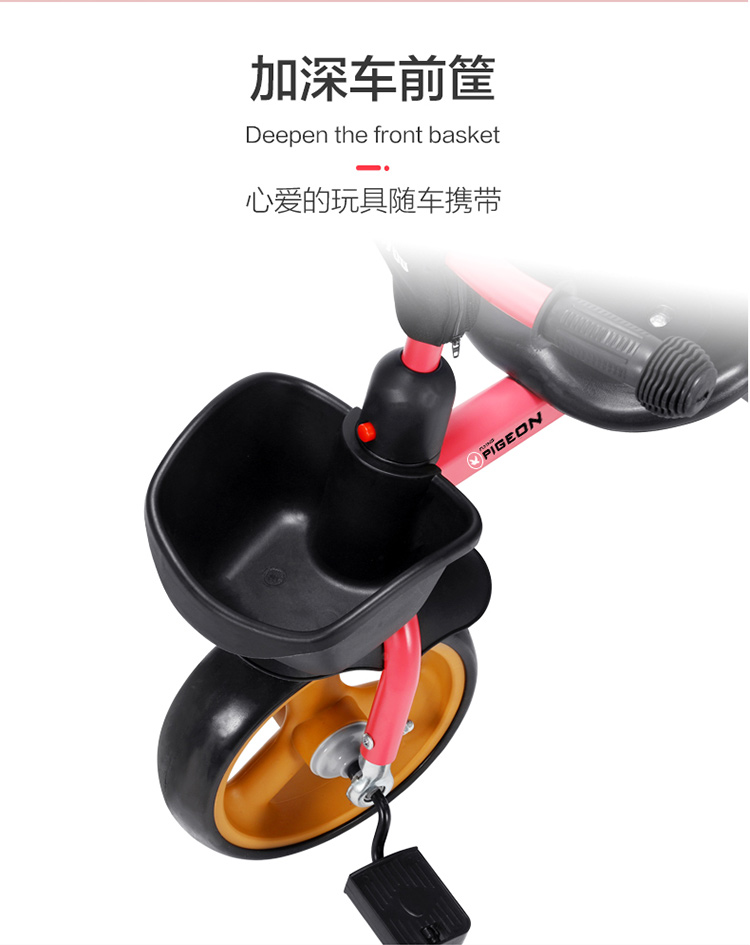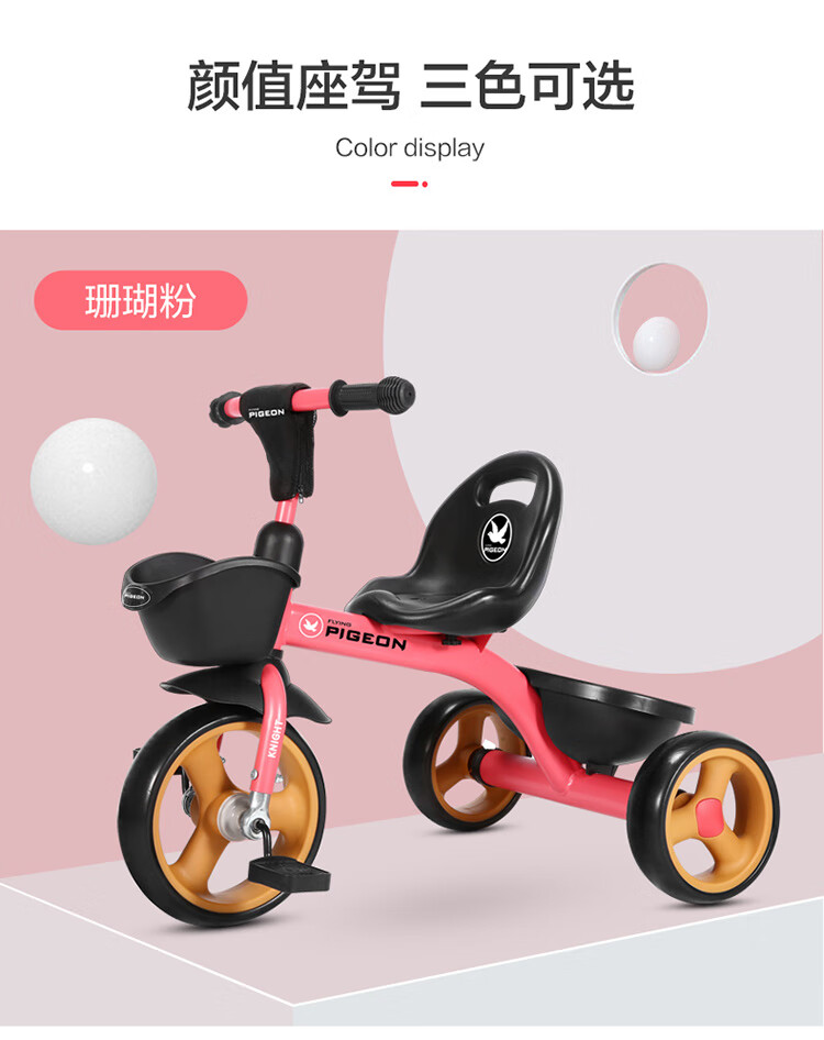 飞鸽(PIGEON)儿童三轮车幼儿脚踏车1-3岁宝宝手推车童车自行车可拆卸樱草黄