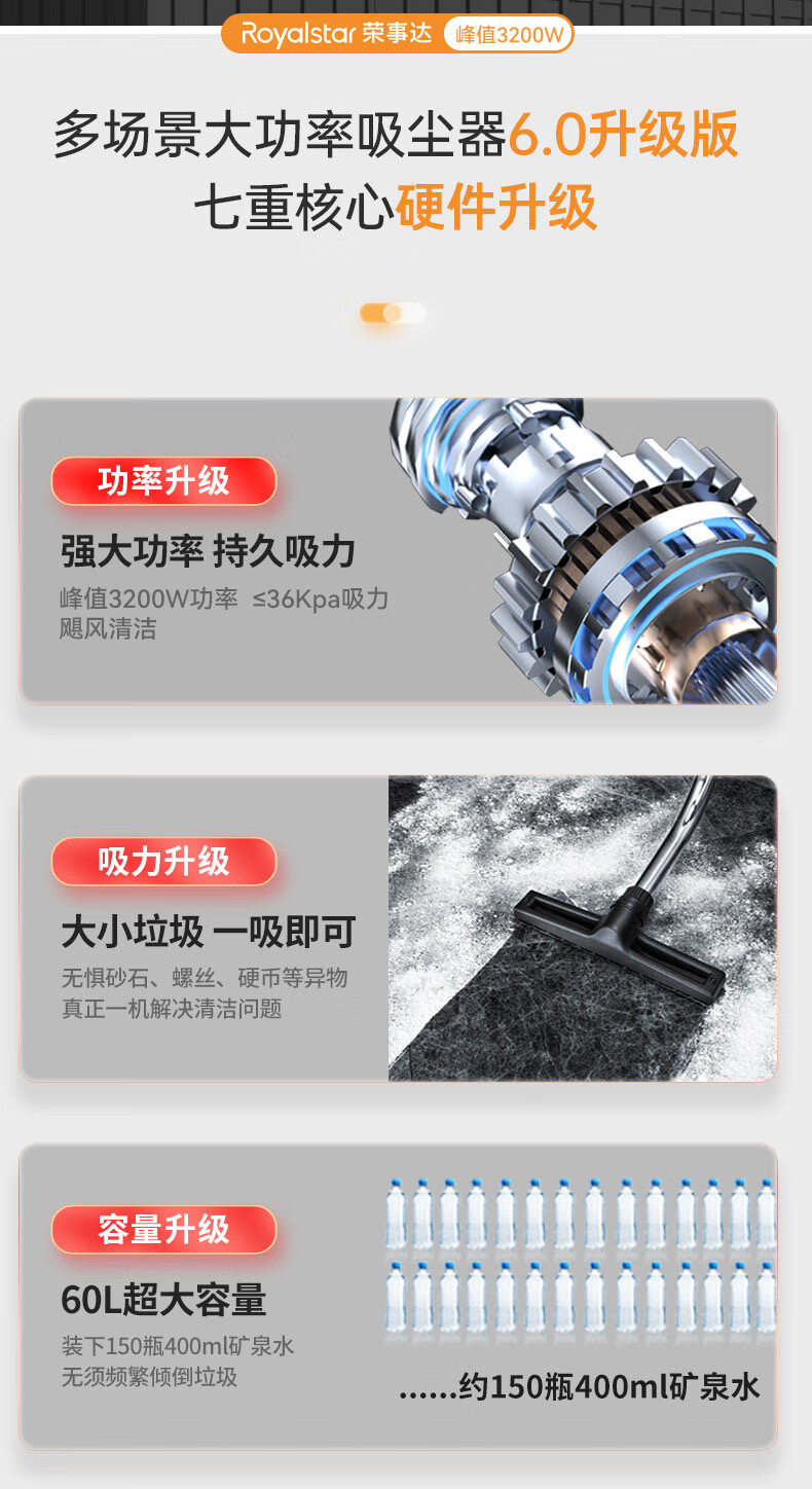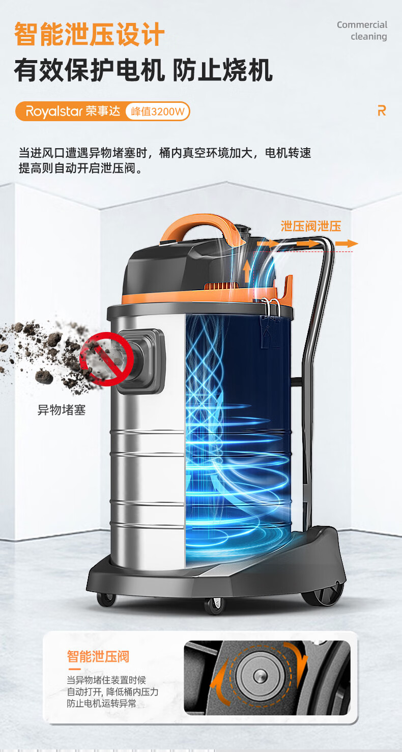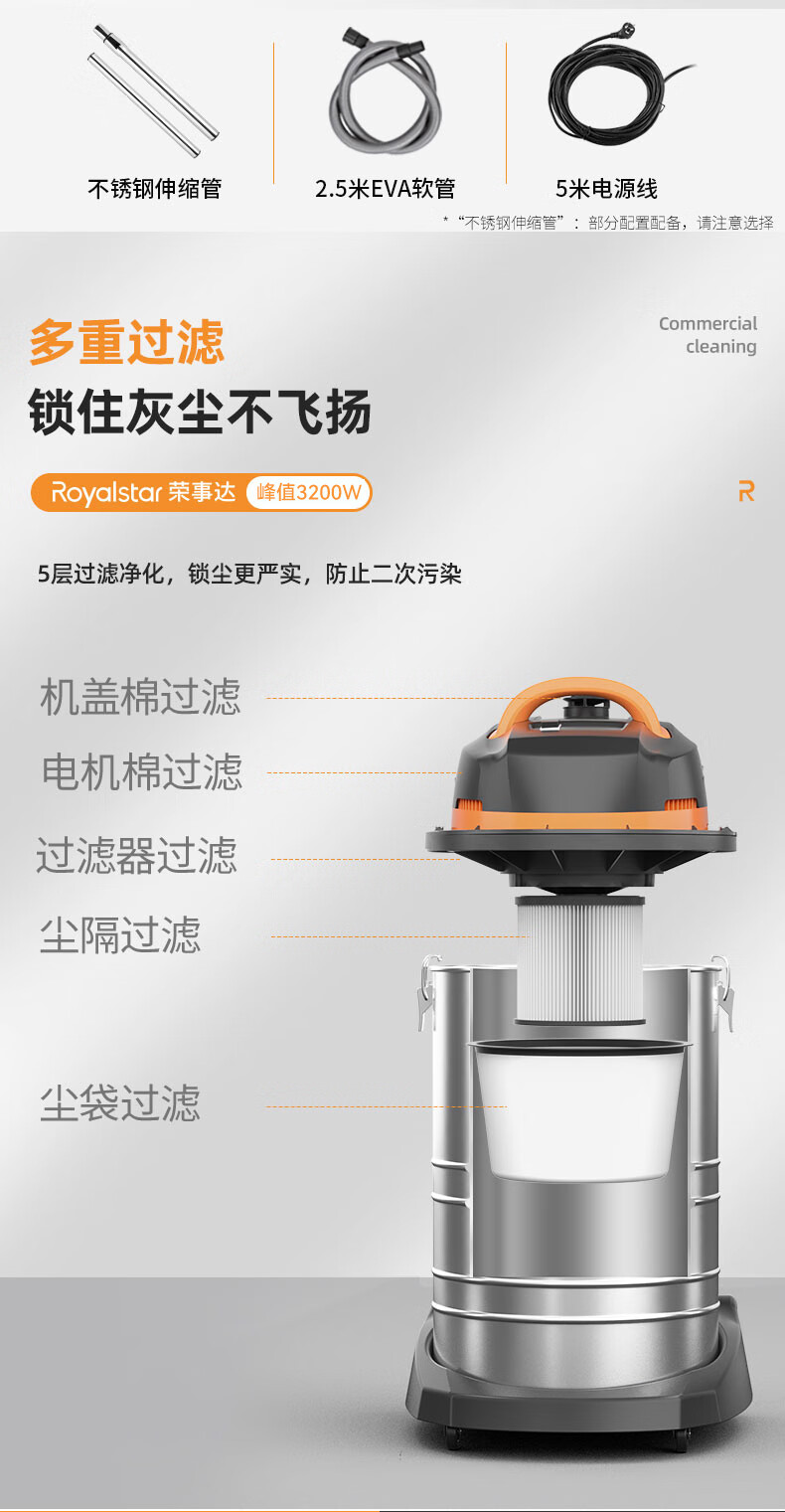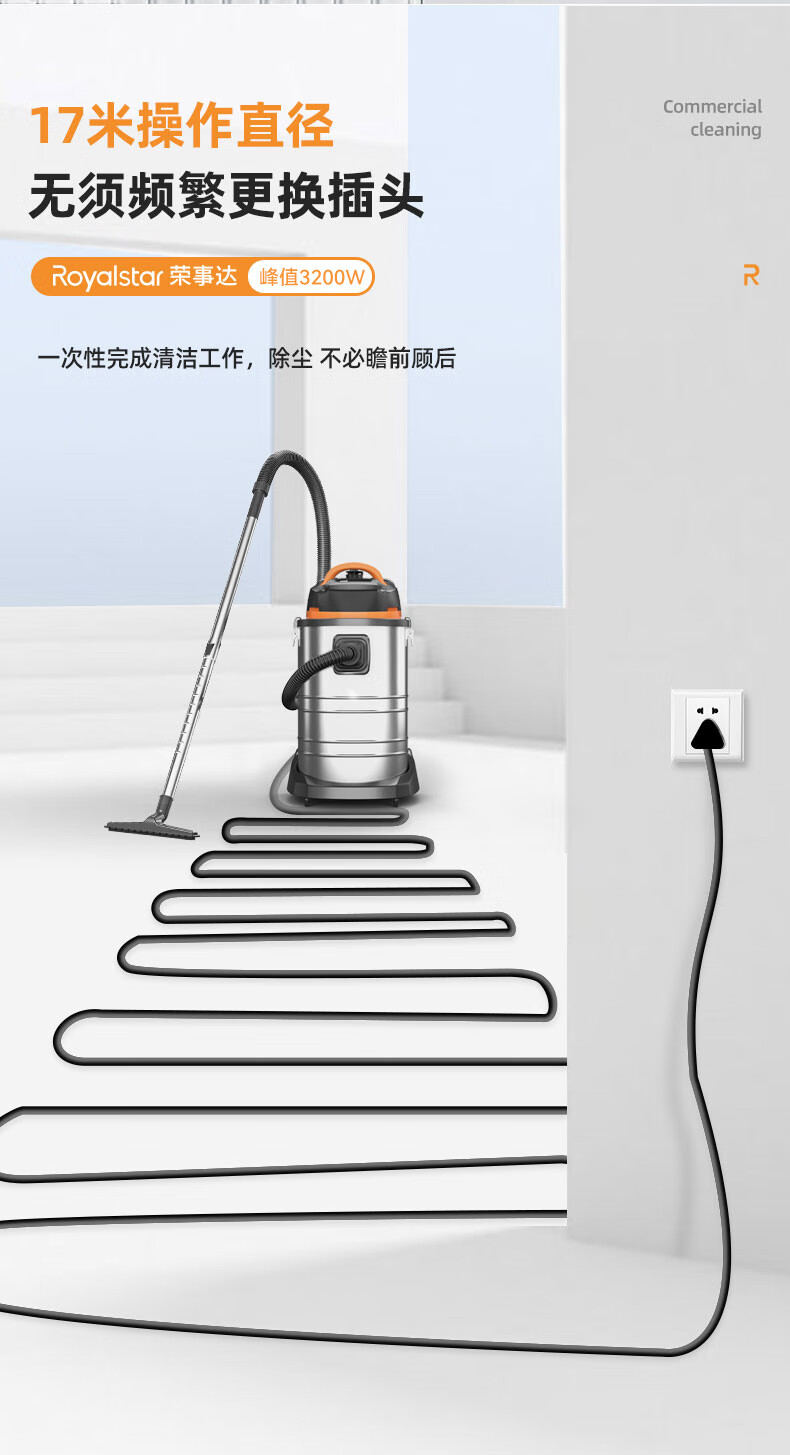 荣事达(Royalstar)工业吸尘器家用大吸力强力大功率洗车店商用装修美缝办公吸尘机 22L开荒装修【加厚不锈金属桶】峰值功率2800W
