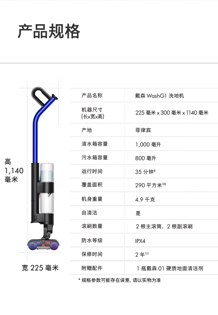 戴森(DYSON)【11.11抢购】WashG1洗地机高效清洁除菌 扫拖一体 自动固液分离 宠物 地板适用 家用礼物 黑色
