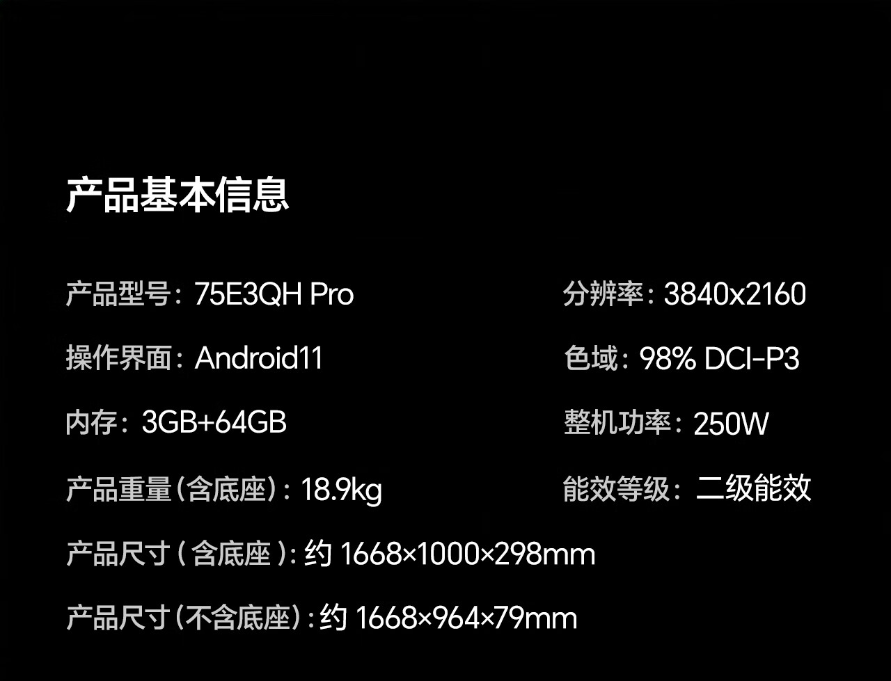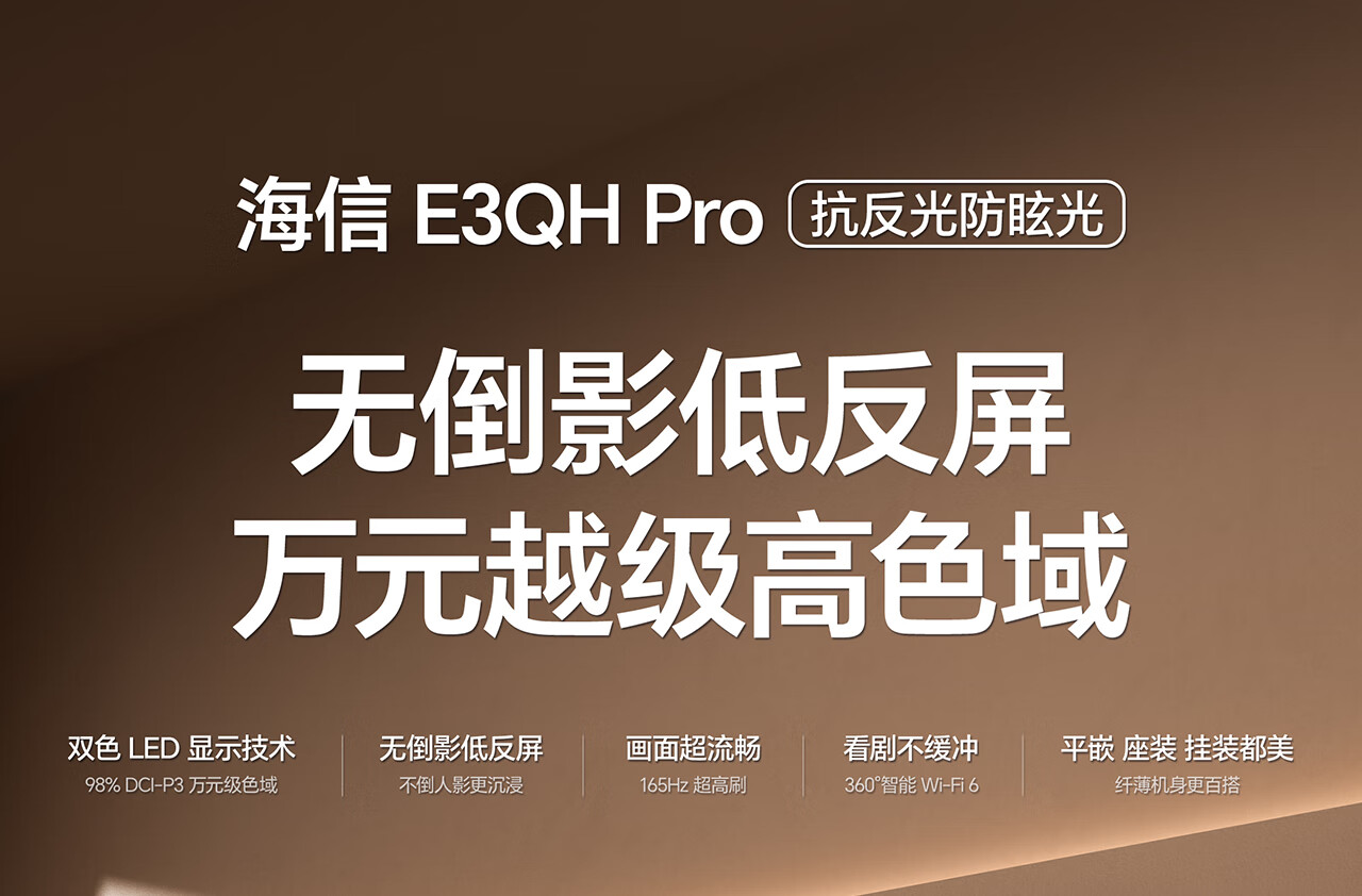 海信电视E3QH Pro 75英寸 万元级高色域 抗反光无倒影 165Hz高刷 智能Wi-Fi6 限时补贴电视 75E3QH-PRO