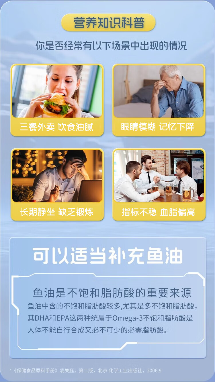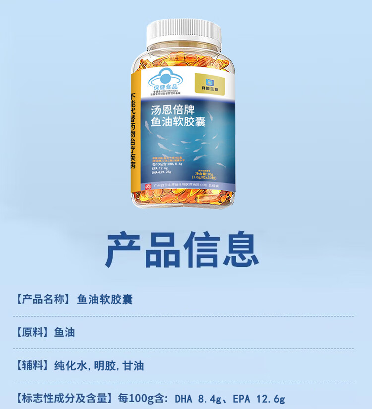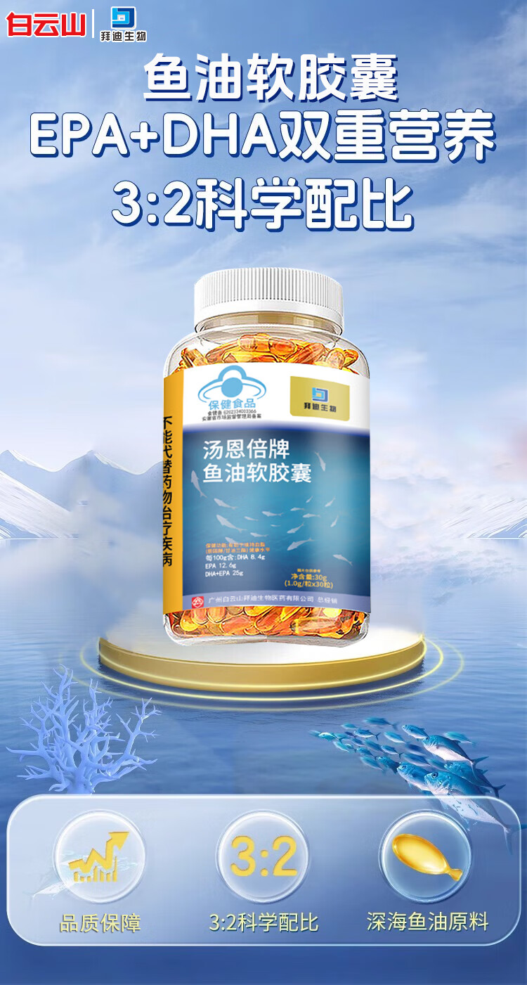 白云山鱼油 深海鱼油 中老年成人血管血脂Omega3无腥味鱼肝油 1瓶