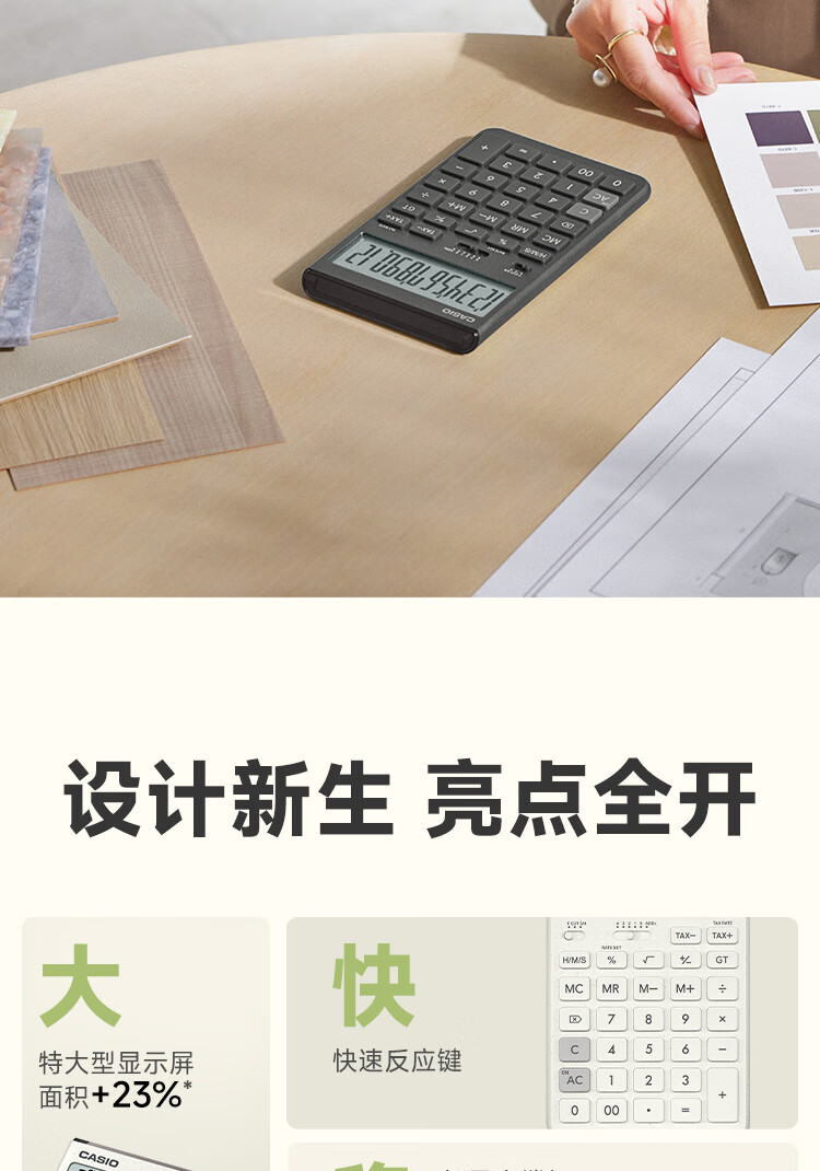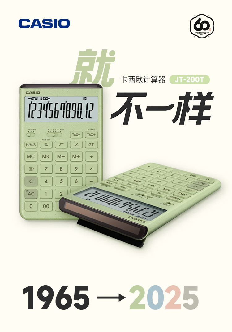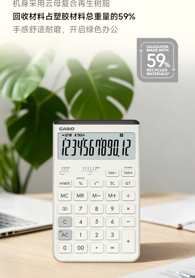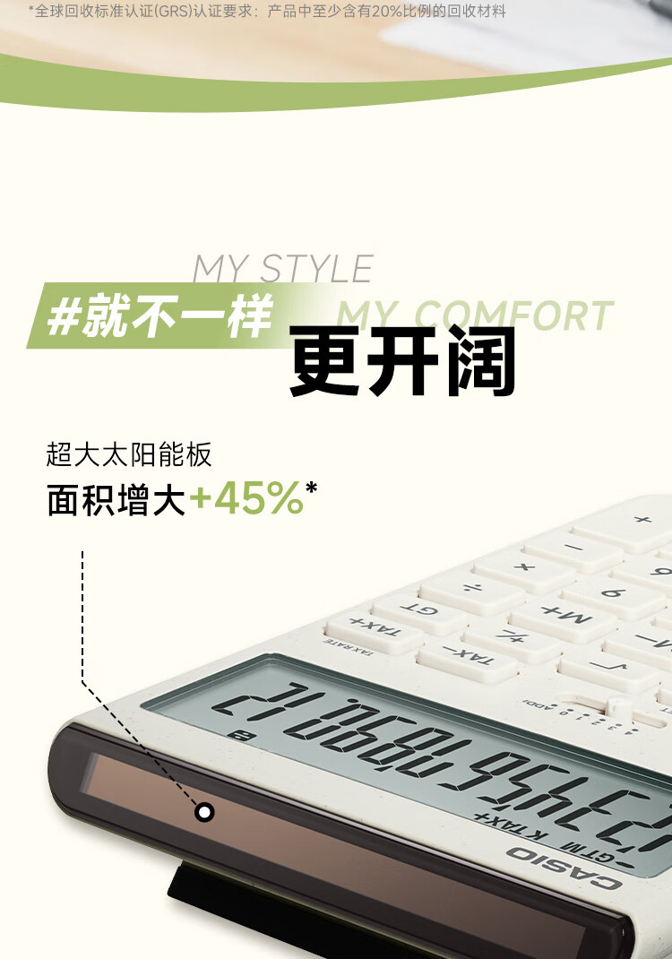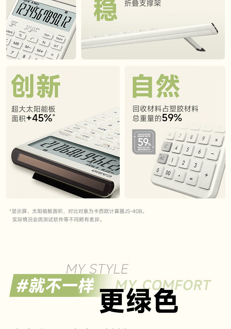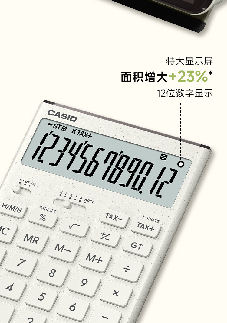 卡西欧(CASIO)就不一样计算器JT-200T创新超大显示屏太阳能面板环保材质桌面办公 瑞思白白色