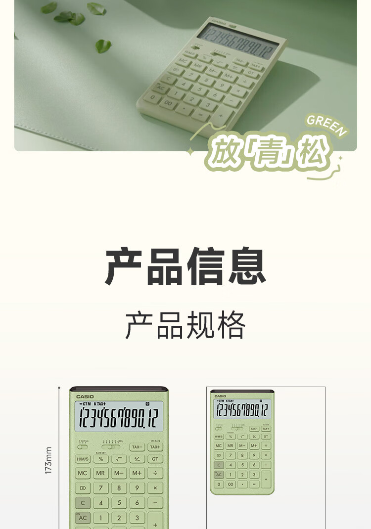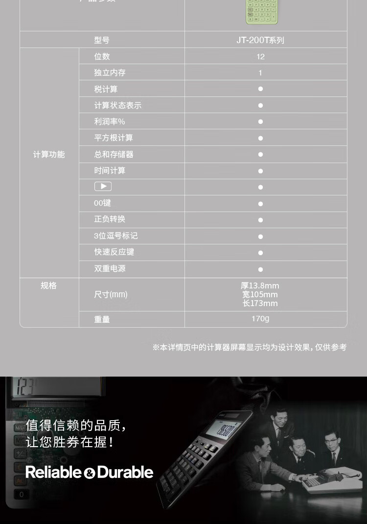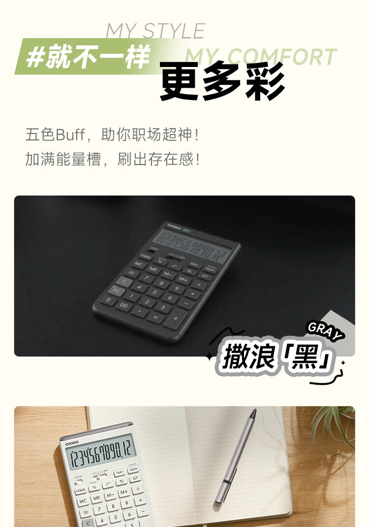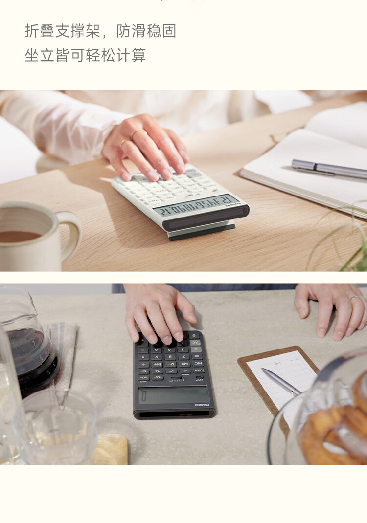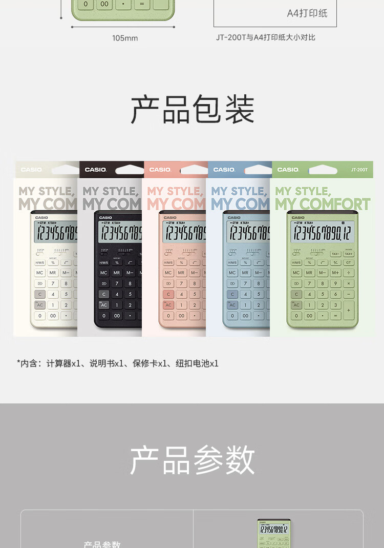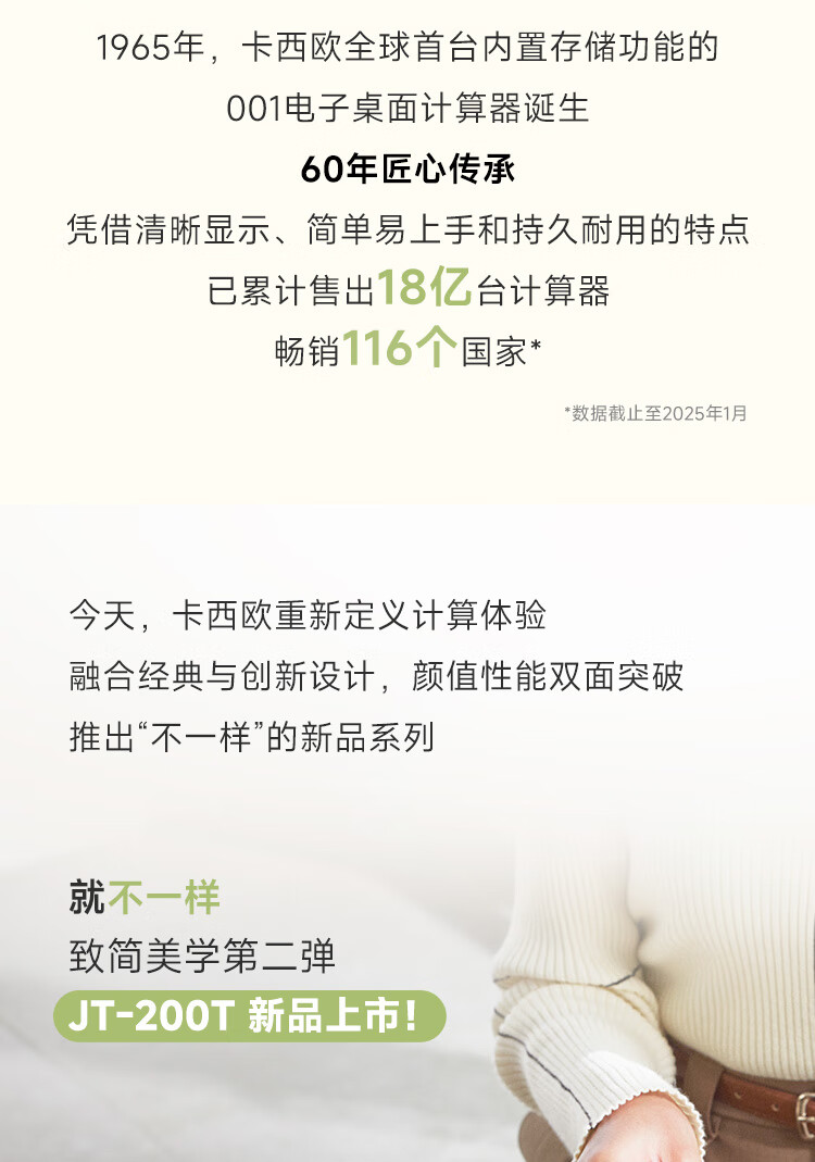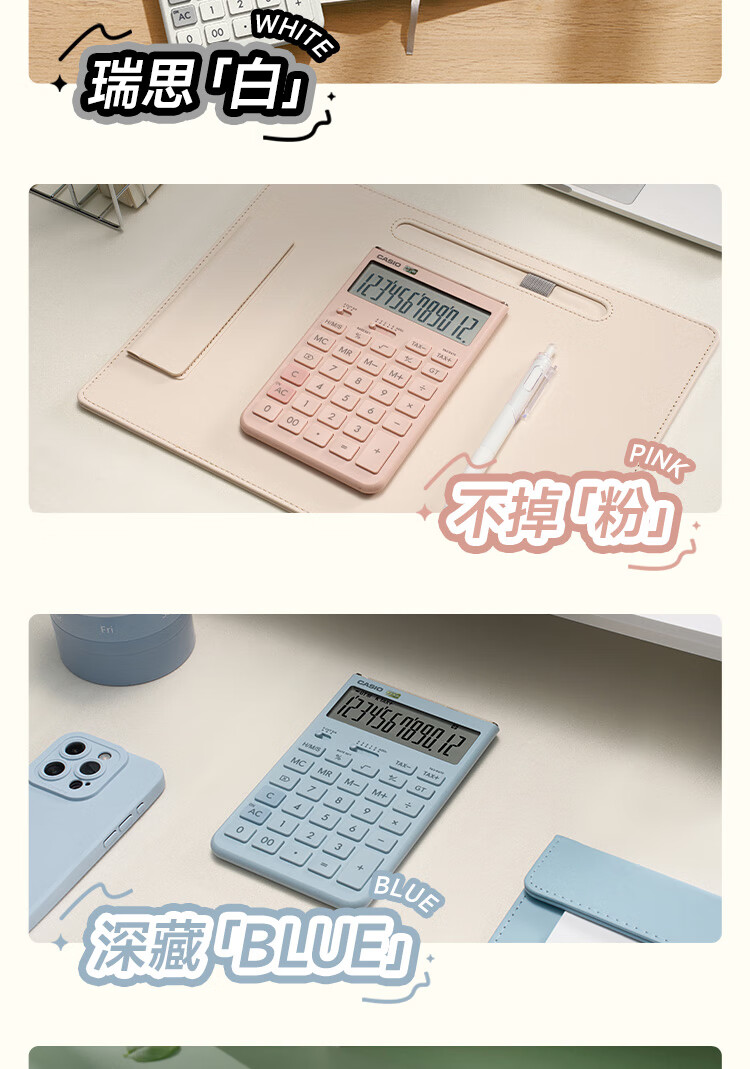 卡西欧(CASIO)就不一样计算器JT-200T创新超大显示屏太阳能面板环保材质桌面办公 瑞思白白色